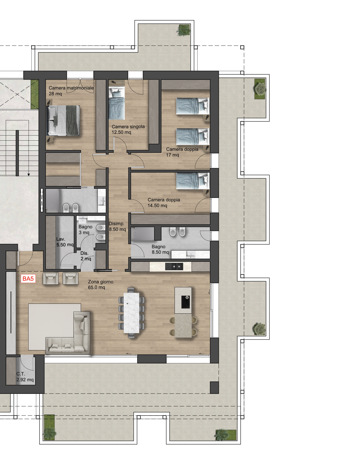 Nel cuore di Treviso, tra Via Monterumici e Viale Montegrappa, nasce MONTEGRAPPA 27, un progetto residenziale che reinventa il modo di vivere in città, unendo design contemporaneo, natura e comfort quotidiano. Gli edifici ospitano le residenze Amaranth e Belle, rispettivamente di 18 e 16 unità, progettate per offrire privacy, luce naturale e spazi funzionali. Linee eleganti, volumi armonici e dettagli raffinati creano ambienti in equilibrio tra estetica e praticità. Protagoniste del progetto sono le ampie terrazze, concepite come estensioni degli ambienti interni grazie alle grandi vetrate. Spazi da vivere ogni giorno, dove il verde diventa parte integrante di uno stile di vita autentico e sostenibile. Gli interni, luminosi e ben distribuiti, offrono un perfetto equilibrio tra estetica e funzionalità. L' attico in questione è composto da un luminoso soggiorno con angolo cottura, un bagno con lavanderia e un ulteriore bagno di servizio. La zona notte comprende una camera doppia, una camera singola e una camera matrimoniale con bagno privato. Sono presenti due terrazze, alle quali si può accedere sia dal soggiorno sia dalle camere, garantendo così luminosità e continuità tra gli spazi interni ed esterni. È presente inoltre un ampio box auto incluso nel prezzo di vendita. Ogni abitazione include finiture di pregio: serramenti in alluminio, riscaldamento e raffrescamento a pavimento, impianto di deumidificazione, ventilazione meccanica controllata, terrazze flottanti e palestra condominiale, il tutto in classe energetica A4.