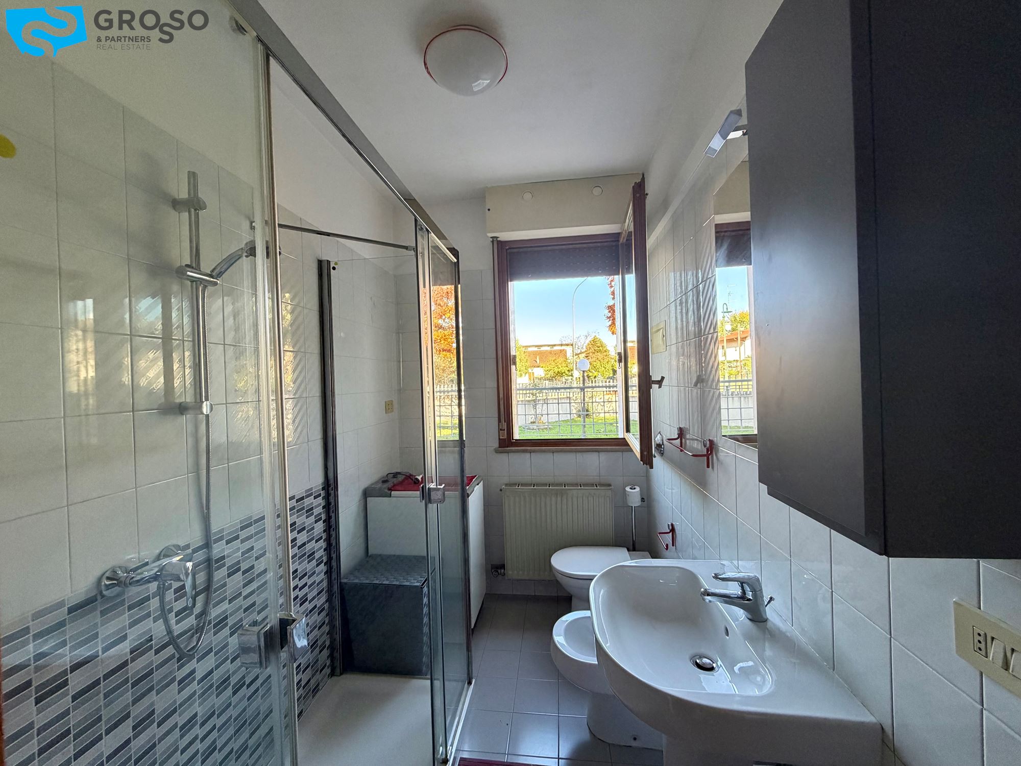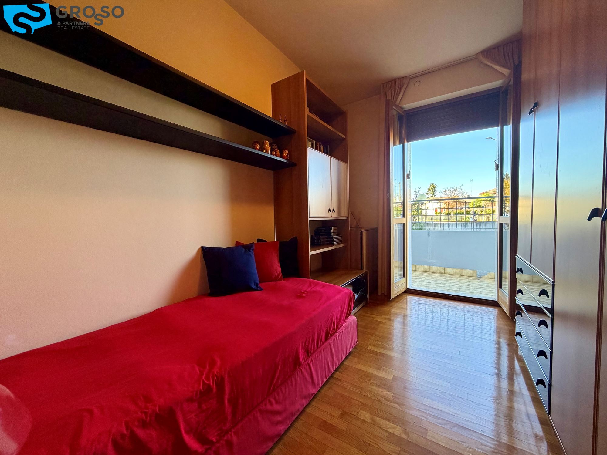 La zona notte ospita una camera matrimoniale, una camera singola e un bagno finestrato completo di box doccia. Gli spazi interni risultano ben distribuiti e funzionali.