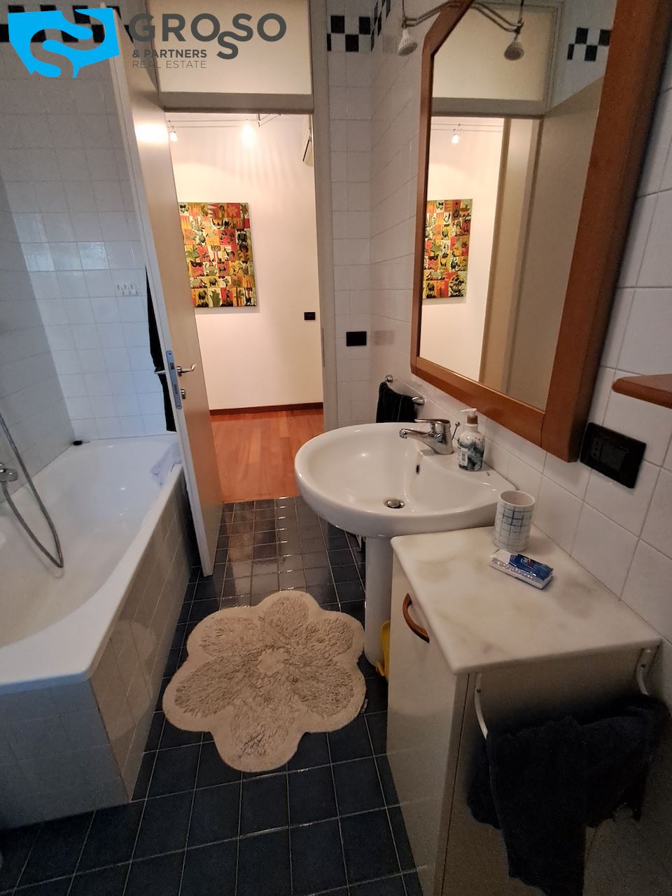 Proseguendo nella zona notte si trova un disimpegno ben organizzato, dotato di ripostiglio utile per ottimizzare gli spazi. Da qui si accede a due bagni, di cui uno finestrato, e a due camere da letto, tra cui una spaziosa matrimoniale. L'appartamento offre quindi una soluzione abitativa adatta sia a famiglie che a chi cerca comfort e funzionalità in un contesto riservato.