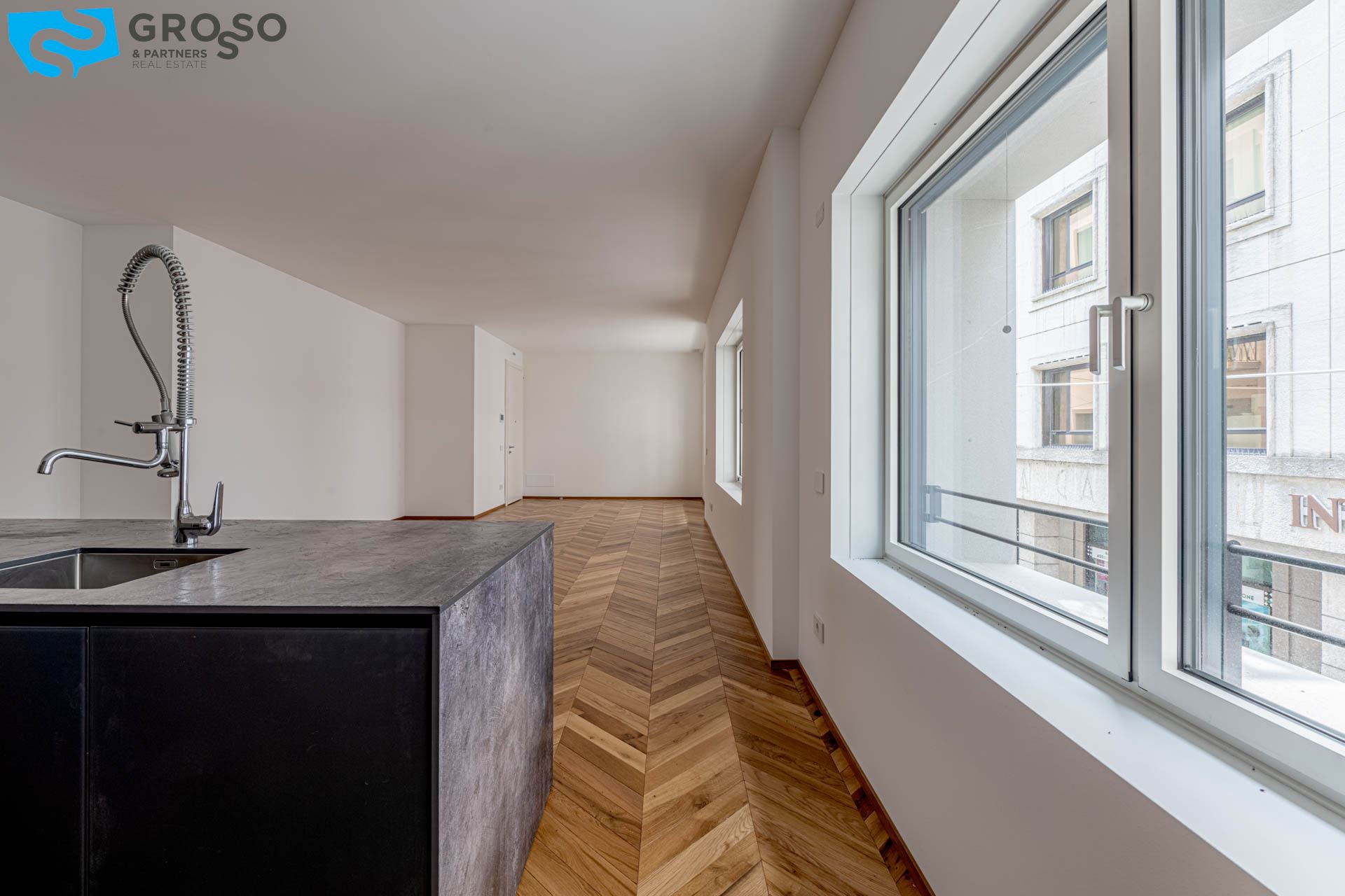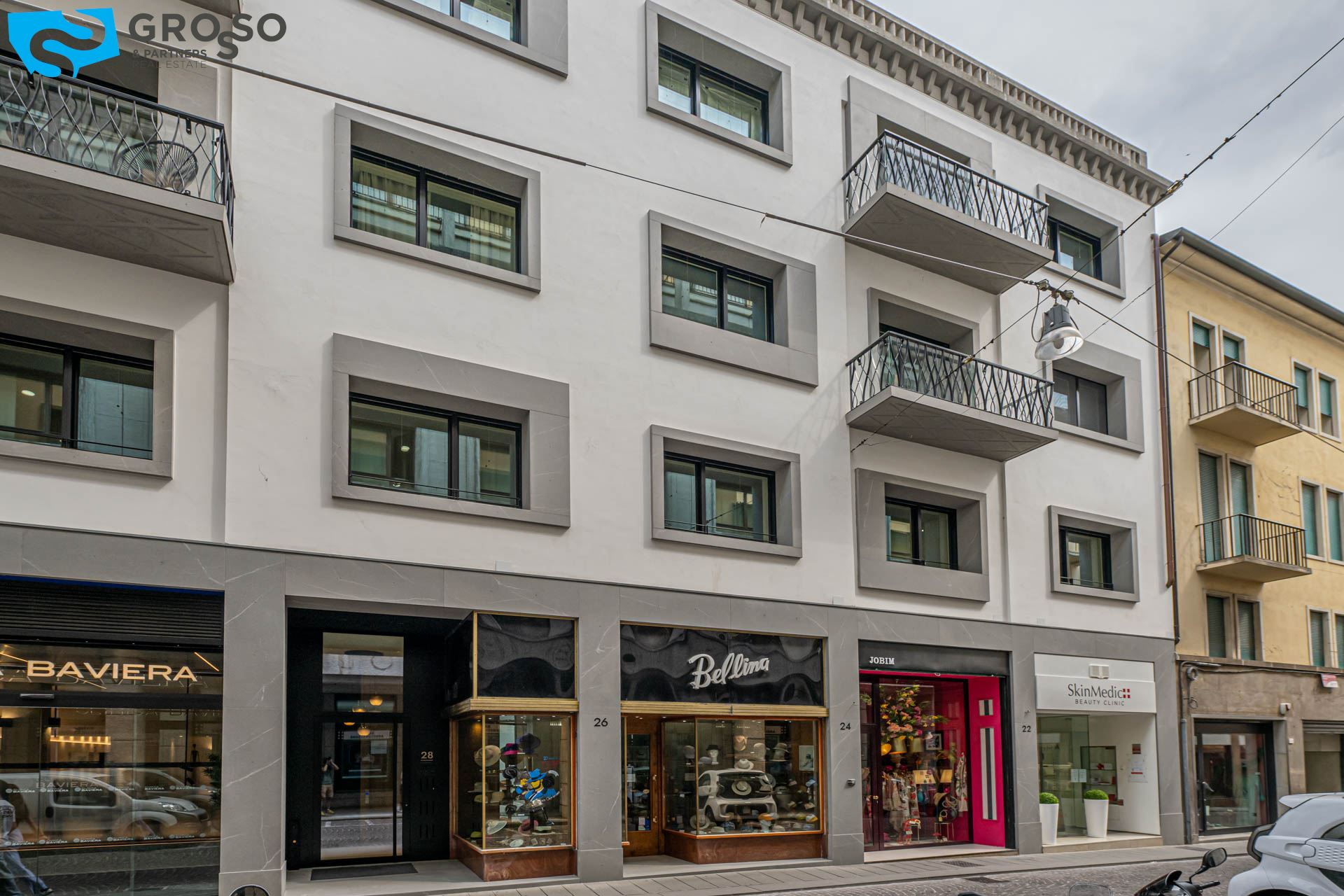 La "Loggia 28" vanta una posizione privilegiata nel centro storico, con una terrazza panoramica ad uso esclusivo degli inquilini, offrendo una vista mozzafiato. Il design innovativo, dalle linee minimaliste e geometriche, si fonde armoniosamente con il contesto storico, creando un connubio unico tra antico e moderno.