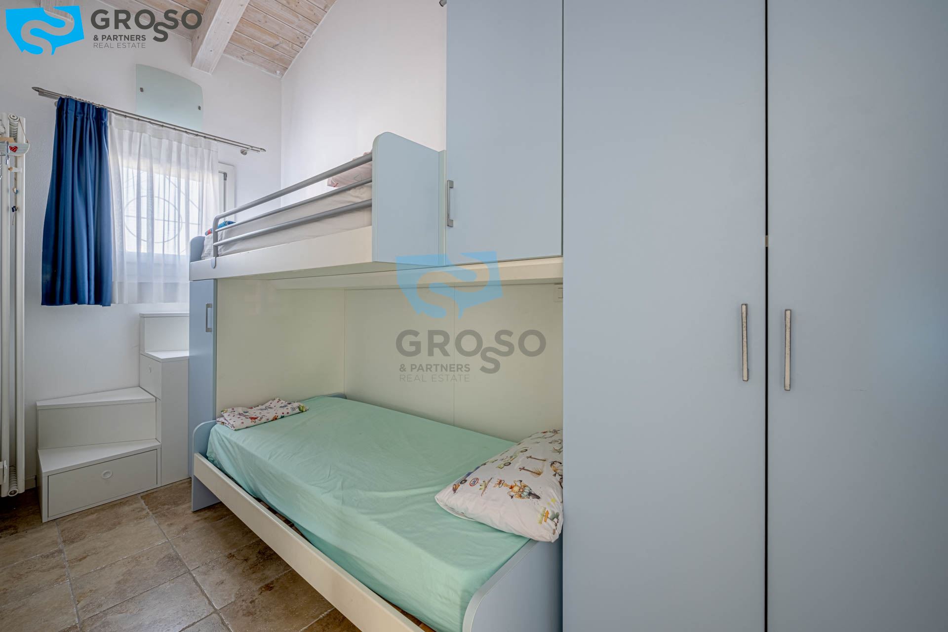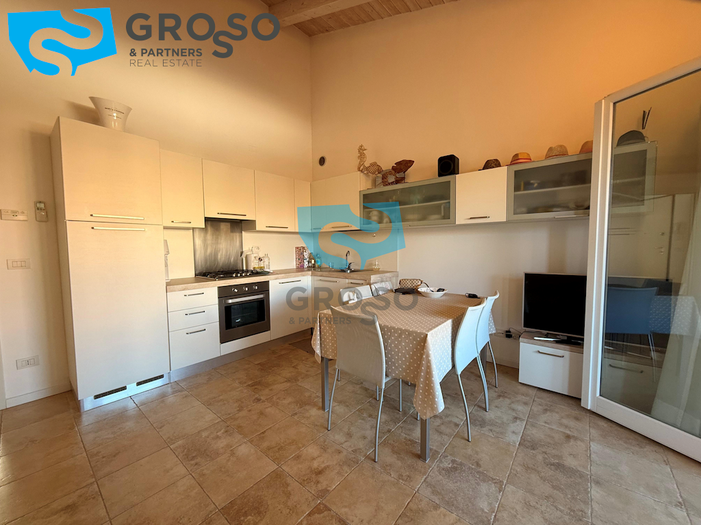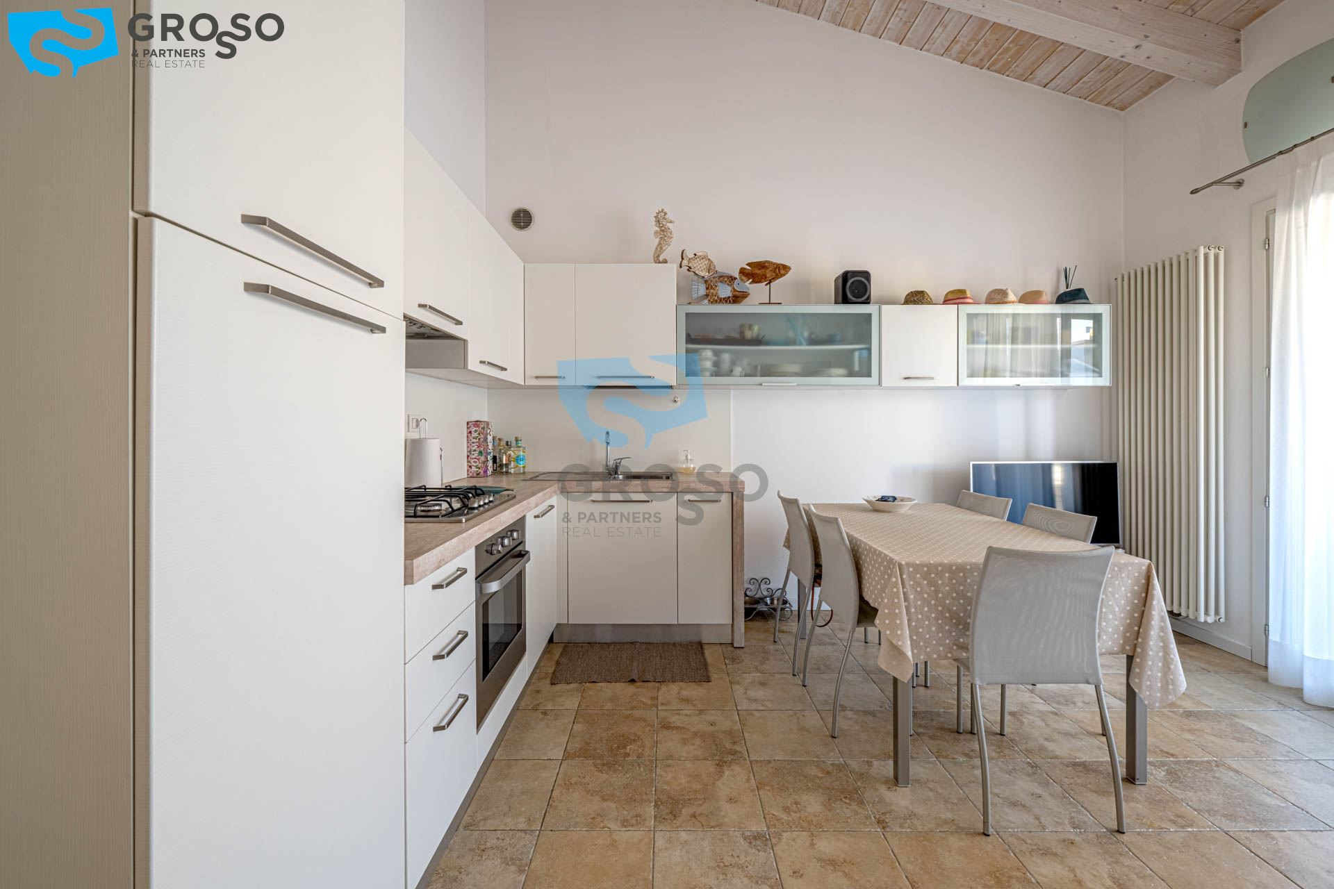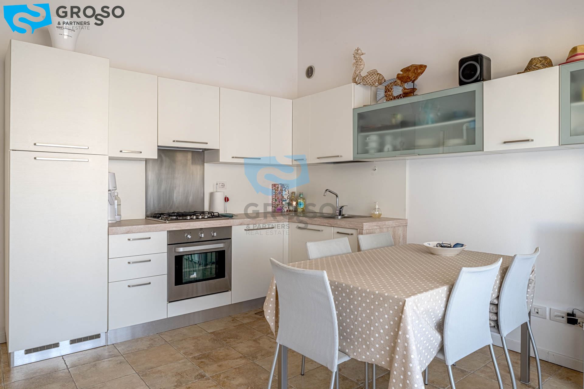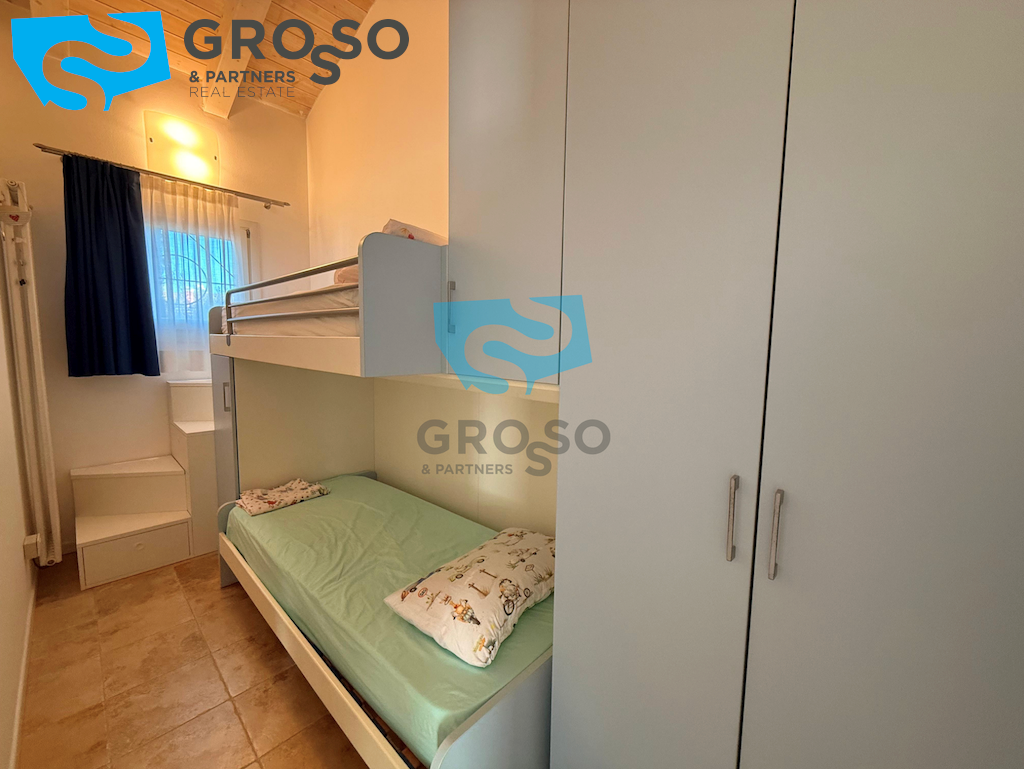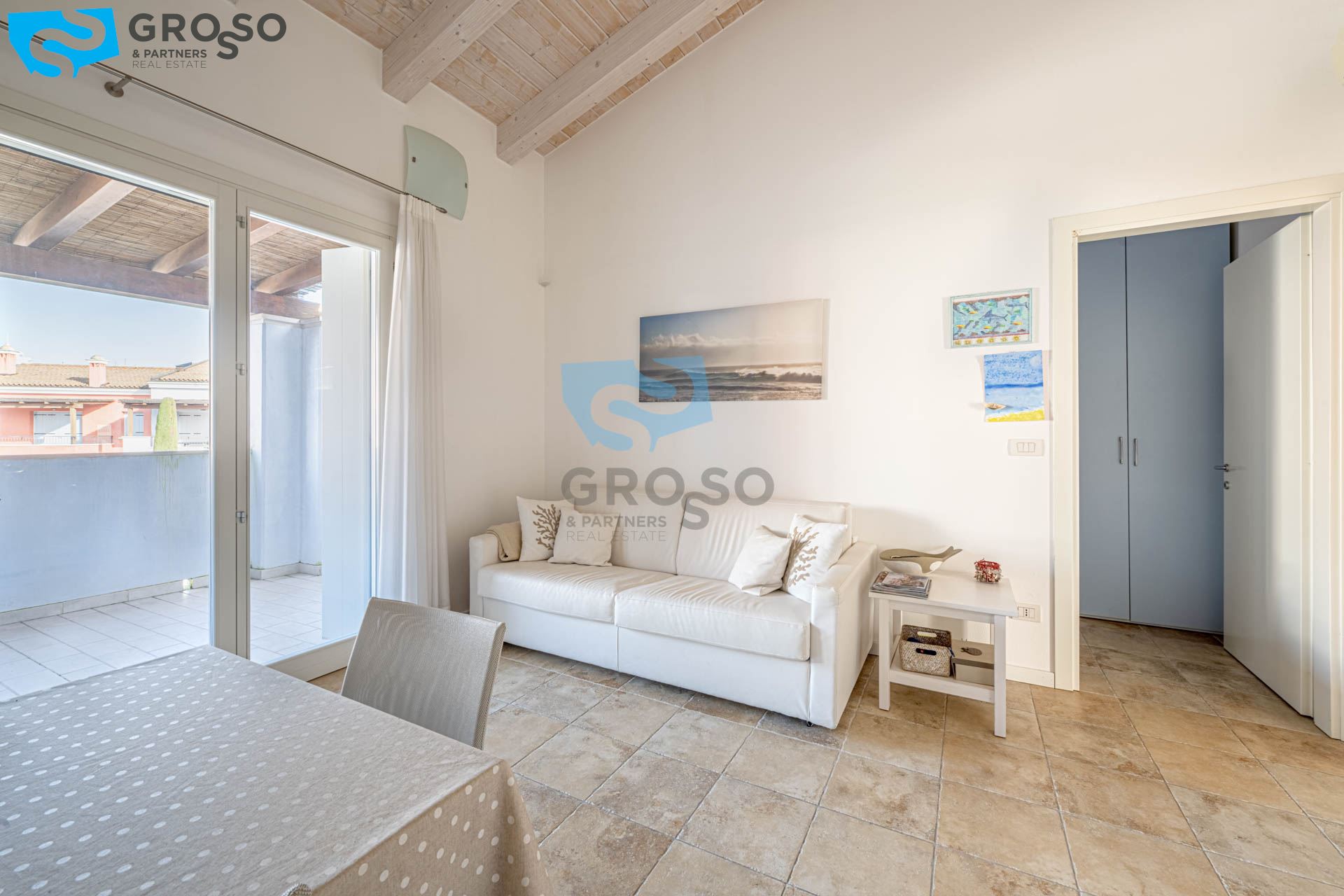 L' immobile è composto da un ampio soggiorno con angolo cottura, perfettamente integrato nella zona living e con accesso diretto alla terrazza coperta, spazio ideale per pranzi e cene all'aperto con affaccio sulla splendida piscina condominiale. La zona notte comprende una camera matrimoniale, una cameretta e un bagno finestrato dotato di tutti i comfort.