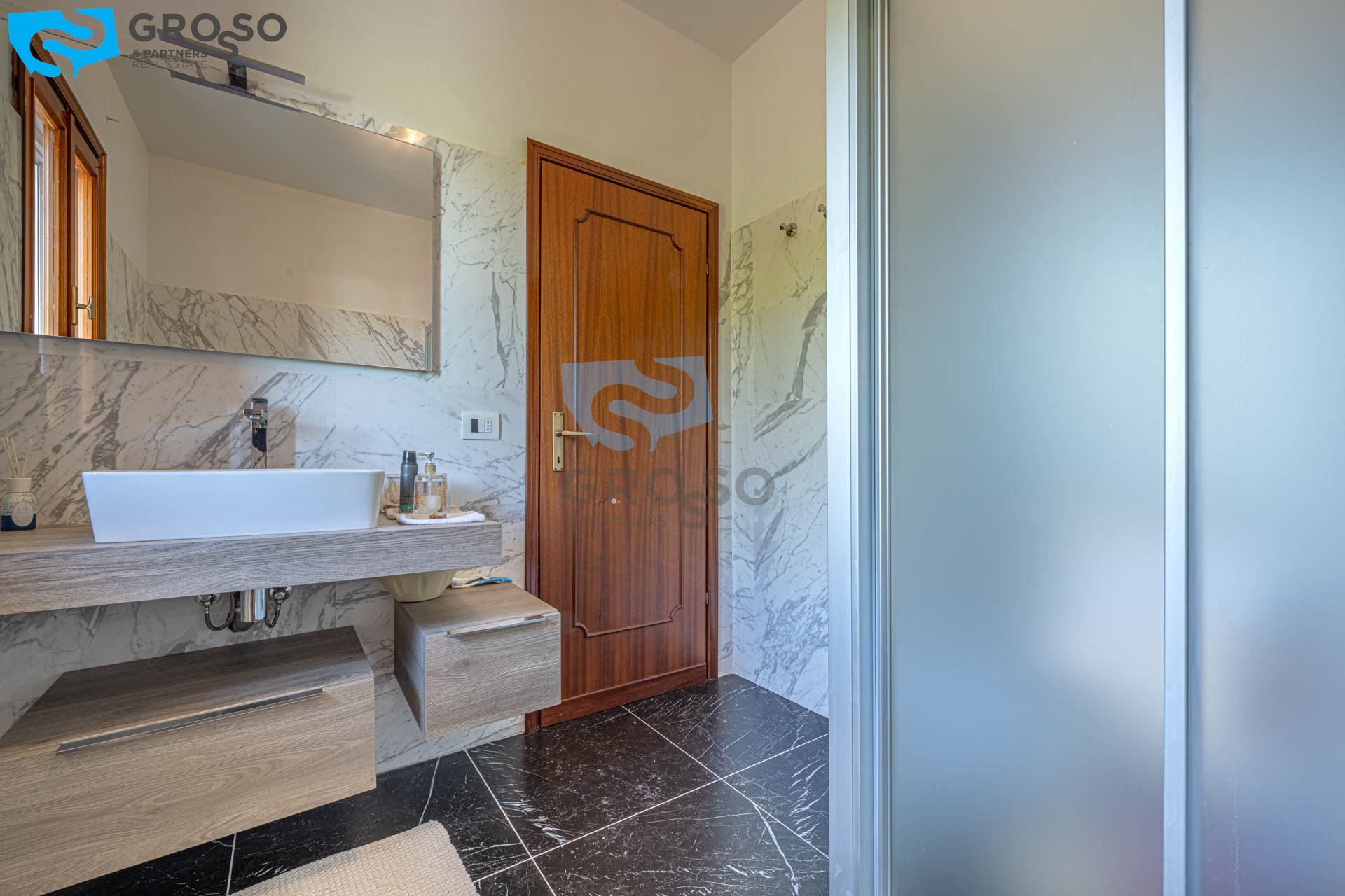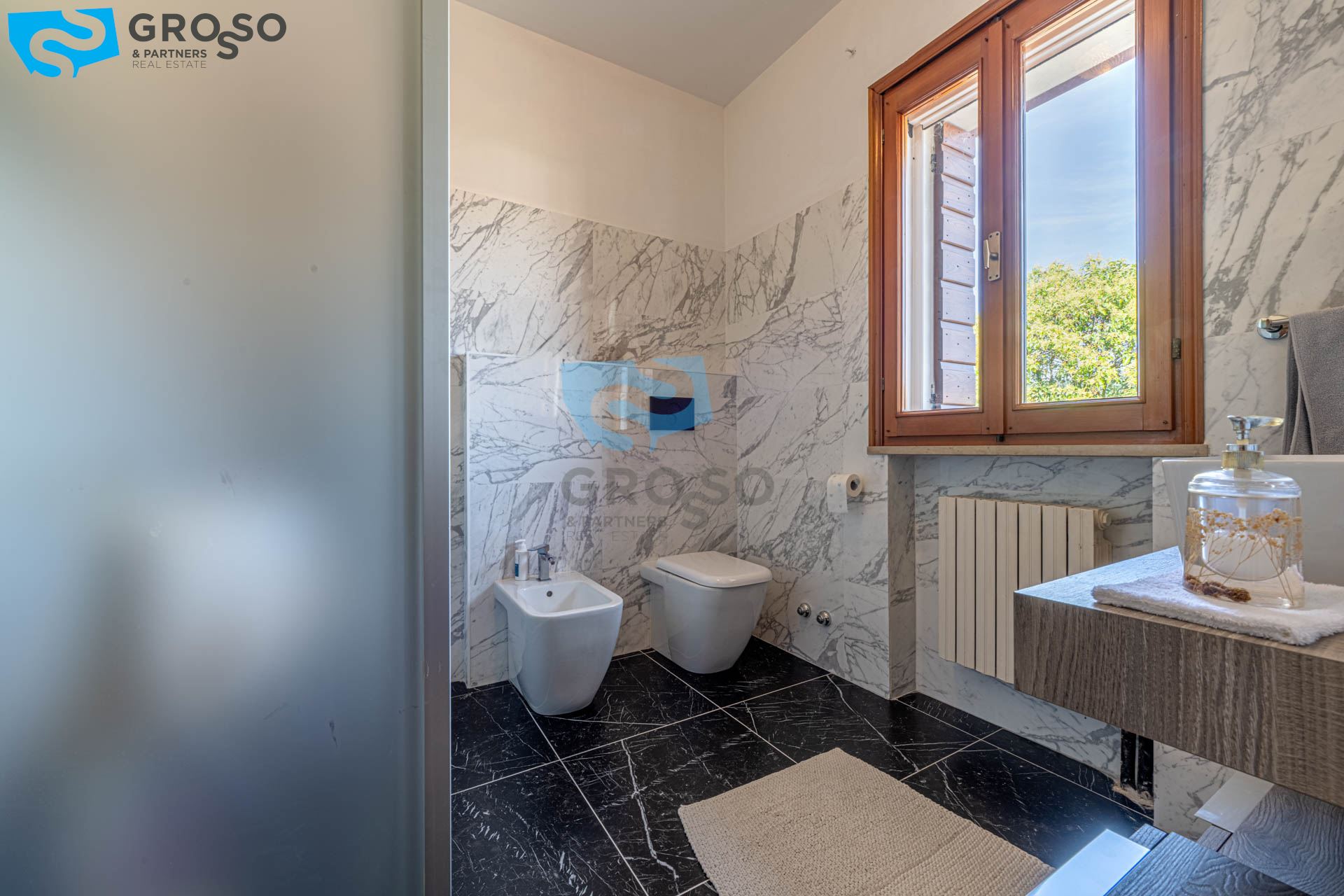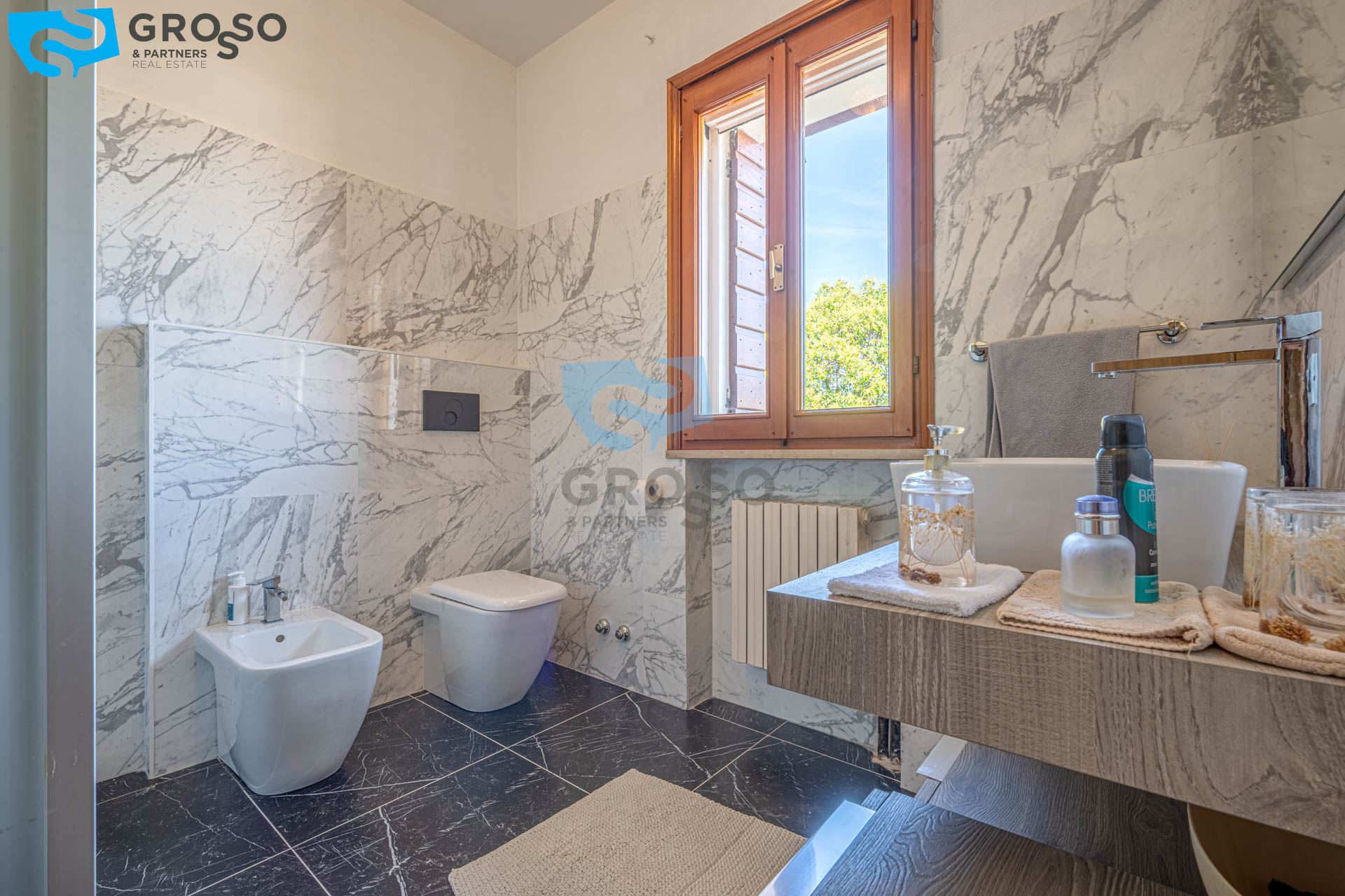 Al piano primo tre grandi camere, di cui una con bagno padronale, una terrazza con vista sul verde e il bagno principale rifatto completamente.