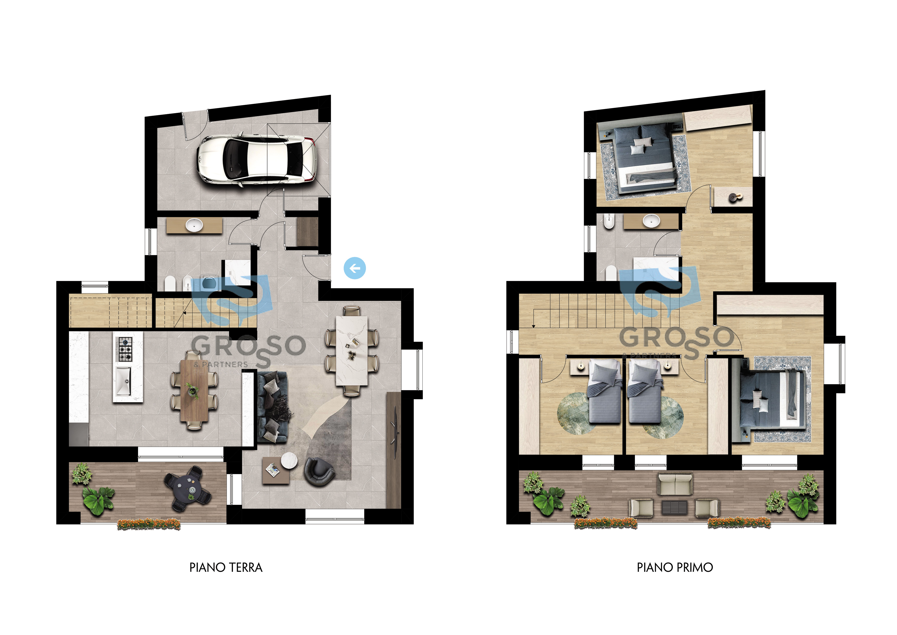 A Ponzano Veneto, in una tranquilla zona residenziale immersa nel verde, proponiamo in vendita una casa indipendente edificata nel 2016, caratterizzata da spazi moderni, ottime finiture e un ampio scoperto privato di 813 mq. L'abitazione si sviluppa su due livelli fuori terra e offre ambienti luminosi e ben distribuiti, ideali per chi desidera comfort, privacy e qualità costruttiva. Al piano terra l'ingresso conduce a un accogliente soggiorno con zona pranzo, collegato alla cucina abitabile separata dalla quale si accede al portico esterno, perfetto per pranzi e cene all'aperto durante la bella stagione. Sullo stesso livello si trovano un bagno per gli ospiti con doccia, la centrale termica e il garage comunicante, oltre a due posti auto esterni che completano la praticità degli spazi. La zona notte, situata al piano primo, comprende una camera matrimoniale e tre camere singole, tutte servite da una loggia che si sviluppa lungo l'intero perimetro, regalando continuità tra ambienti interni ed esterni e piacevoli affacci sul giardino. Il piano è completato da un bagno con doccia e da un comodo magazzino utilizzabile anche come stanza armadio. L'immobile è dotato di riscaldamento autonomo a pavimento, aria condizionata e impianto fotovoltaico da 2,9 kW, garanzie di efficienza energetica e contenimento dei consumi. Una soluzione recente, indipendente e subito abitabile, ideale per chi cerca una casa moderna circondata da un ampio spazio esterno in un contesto residenziale riservato e ben servito.