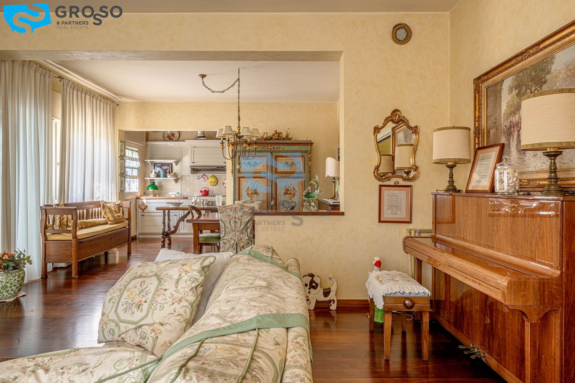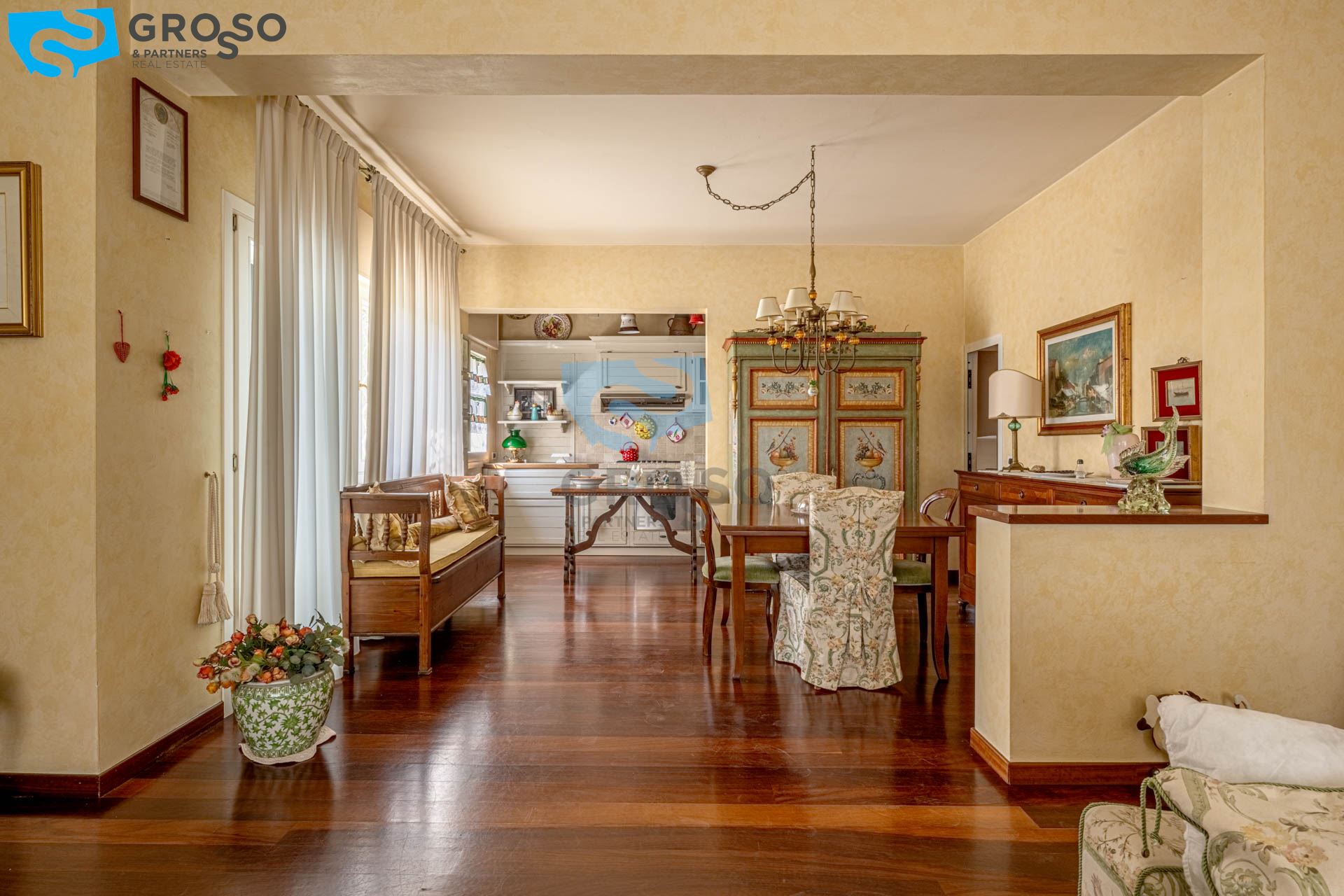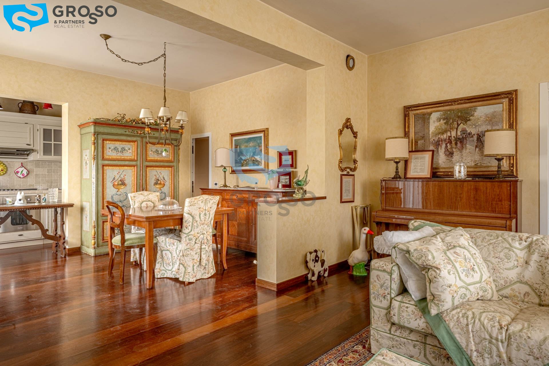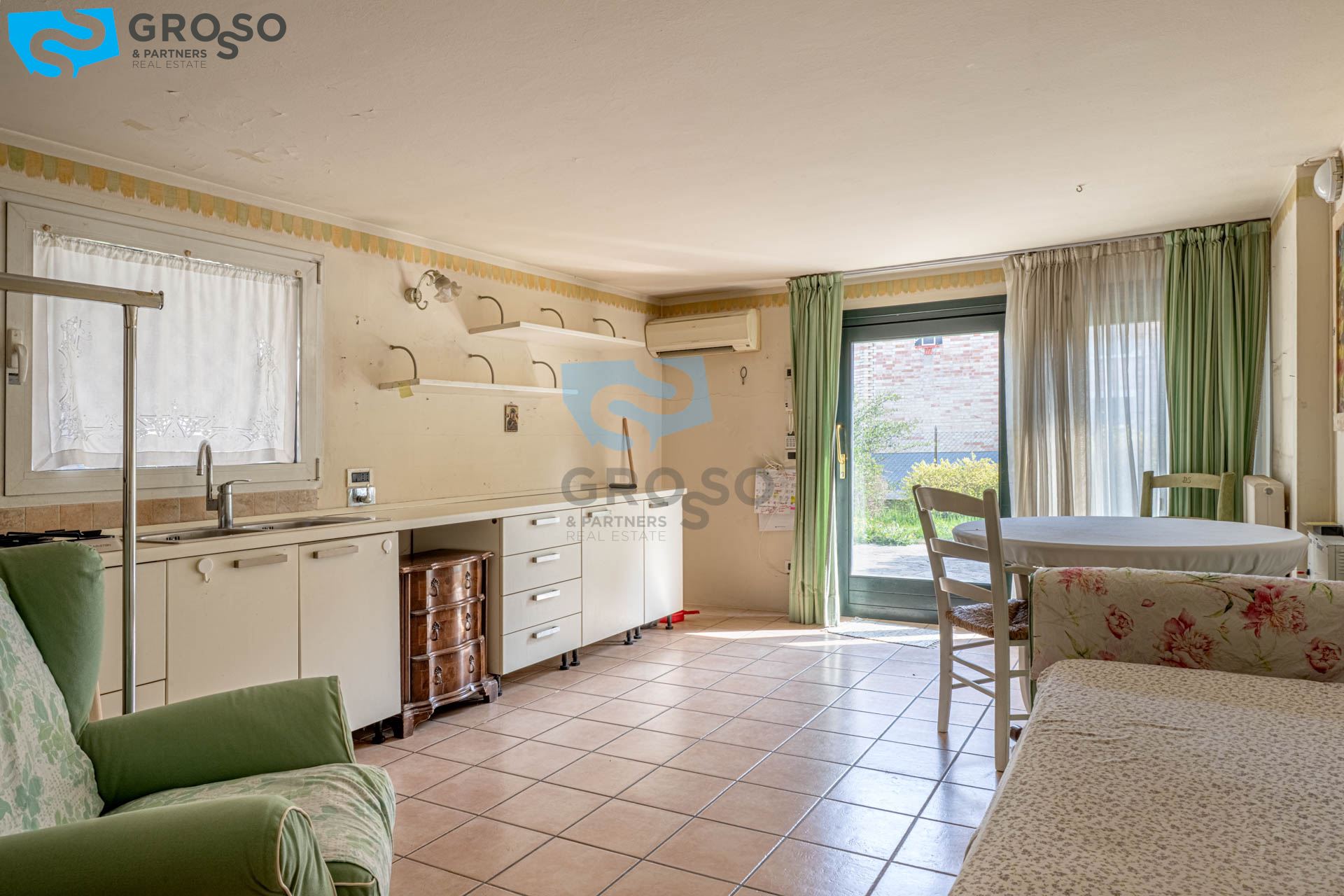 L' abitazione si distingue per gli spazi ampi e ben distribuiti. Al piano terra troviamo un luminoso soggiorno con zona pranzo, perfetto per momenti di convivialità e relax, affiancato da un pratico cucinotto separato, funzionale e ben organizzato.