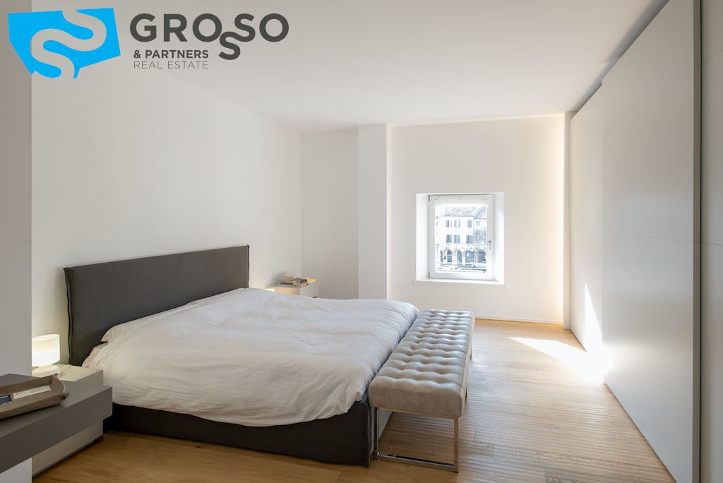 Treviso calato in un prestigioso edificio, affacciato sulla storica Piazza San Francesco, attico parzialmente arredato rifinito ottimamente e composto di ampia zona giorno, terrazza, 3 camere e 3 bagni. Completa la proprietà 3 posti auto coperti ed una cantina.