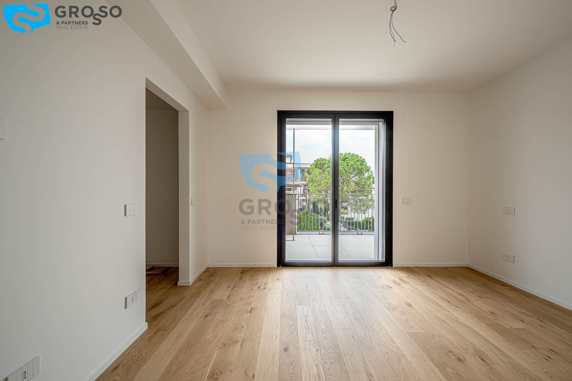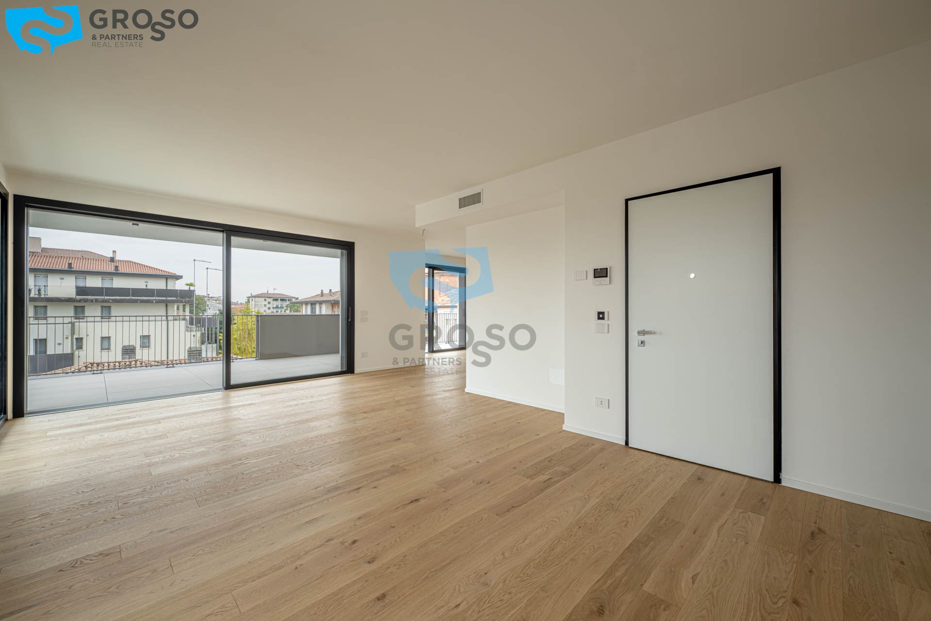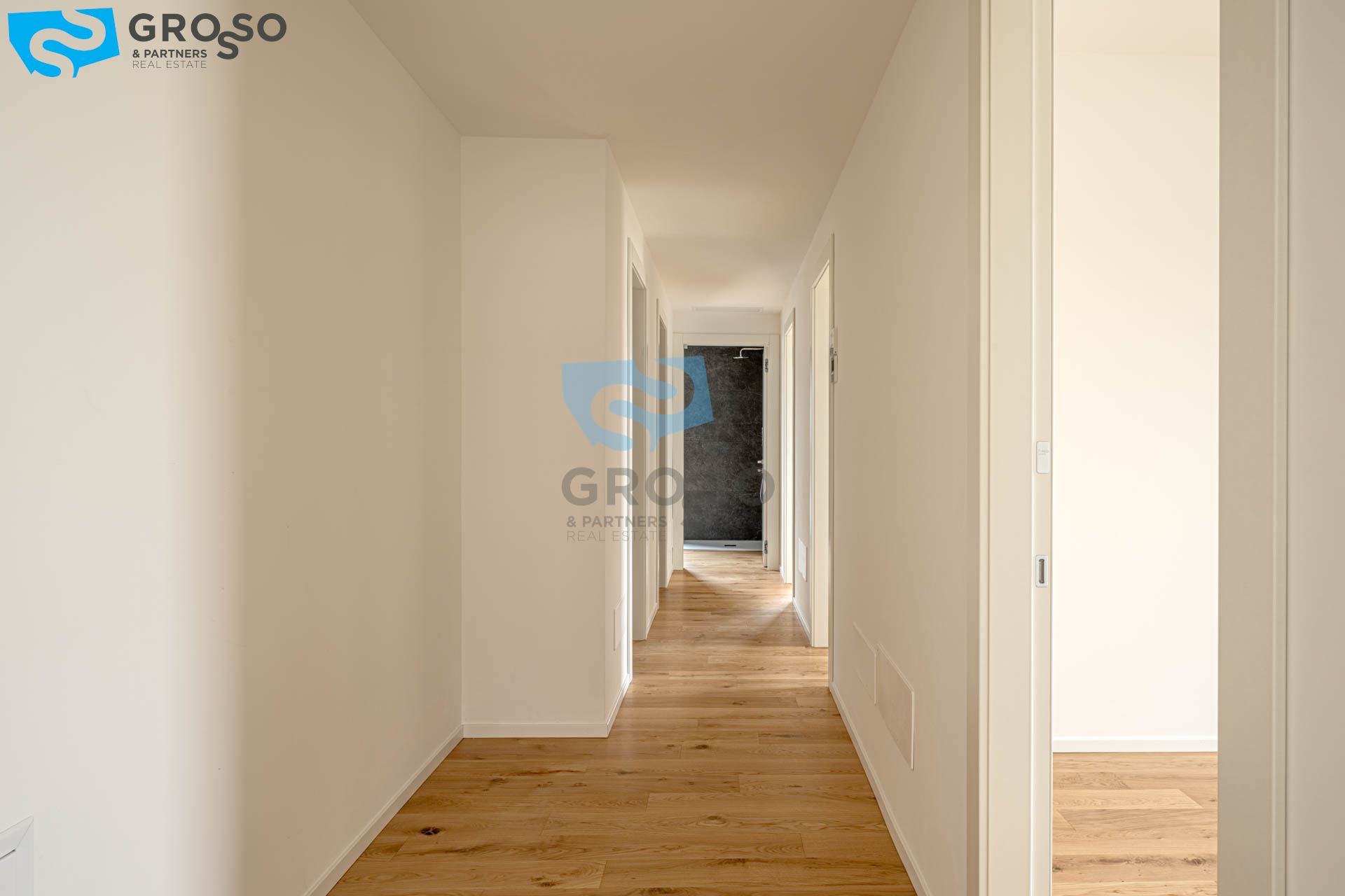 L'immobile sito al piano primo è composto da: ampia zona giorno che si caratterizza per la presenza di grandi vetrate esposte a sud, che garantiscono un'ottima luminosità e affaccio su loggia e terrazza generosa di mq. 20, accedendo alla zona notte trovano spazio 3 camere, 2 bagni, lavanderia e spazioso armadio a muro contenitivo nel corridoio notte.