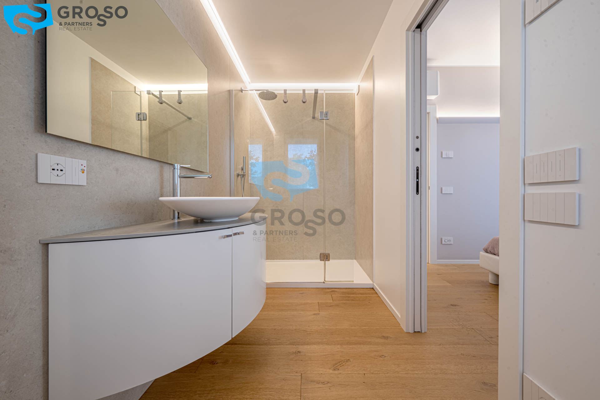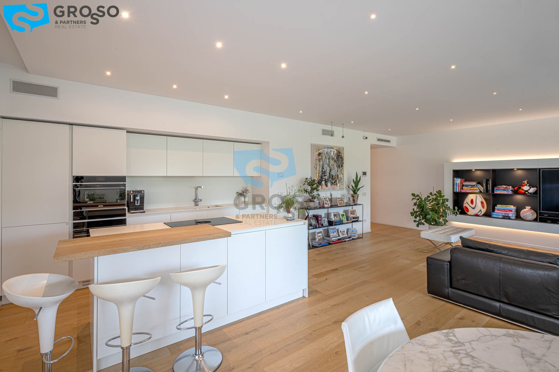 All'interno del prestigioso complesso Ca' Delle Alzaie firmato da Cazzaro Costruzioni in collaborazione con lo studio di architettura Boeri; questo appartamento al secondo piano incarna una rara armonia tra design, luce e paesaggio. L'ingresso, curato come un gesto d'accoglienza, introduce a un soggiorno con angolo cottura di quasi 60 mq: un ambiente aperto, avvolgente, pensato per accogliere la quotidianità con stile e semplicità.