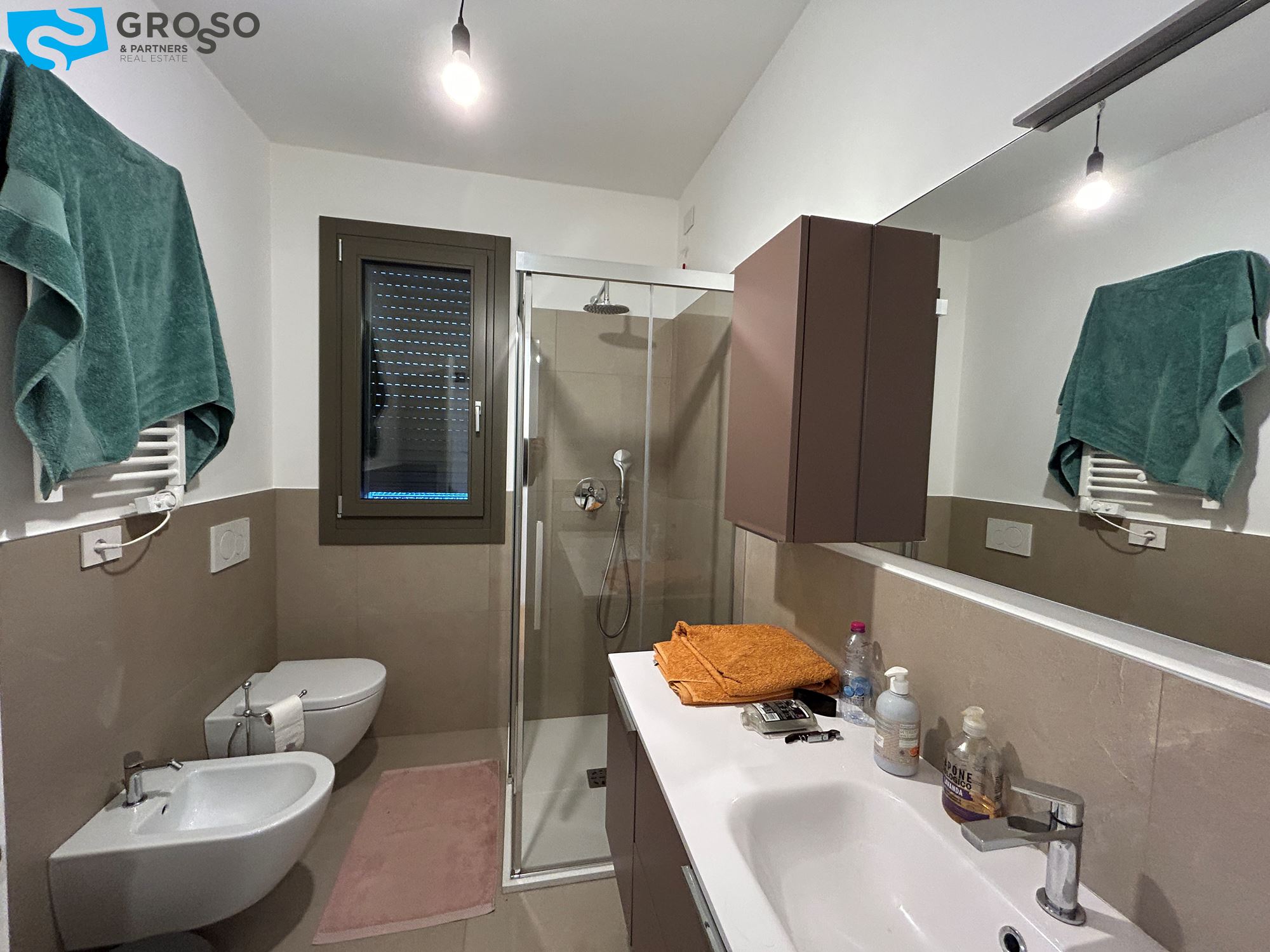 Completano la proprietà un garage singolo al piano terra e un posto auto assegnato.L'immobile viene venduto con la cucina di Lago completa di elettrodomestici, alcuni mobili su misura e l'arredo bagni completo.
