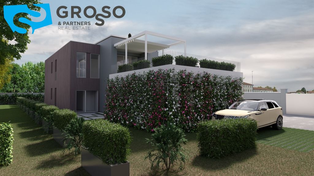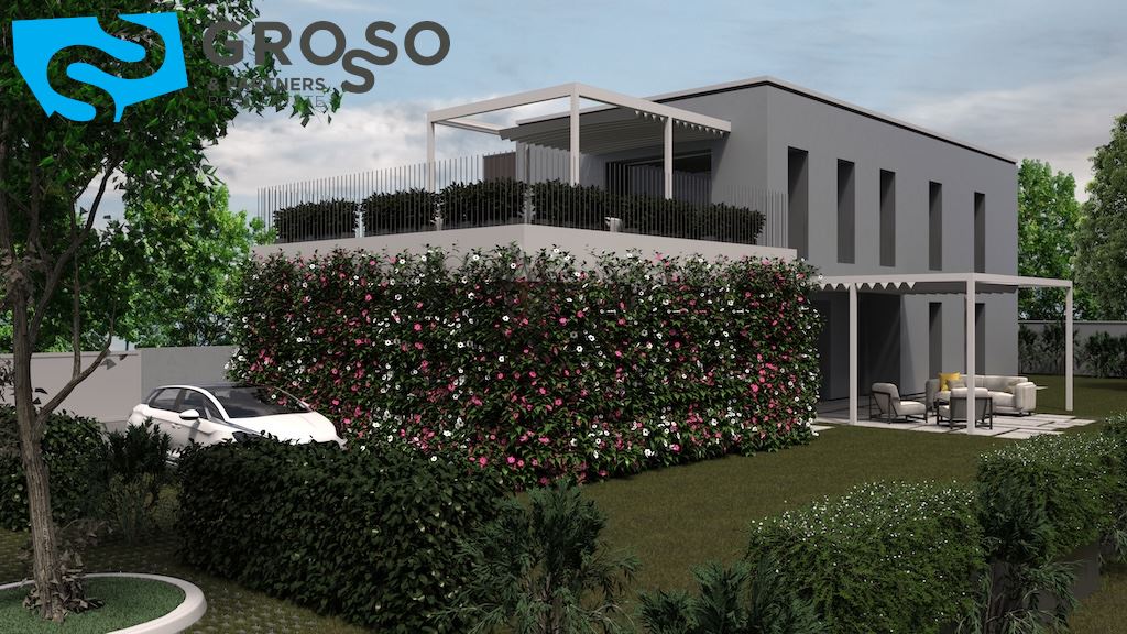A Treviso, nella tranquilla località Fiera, proponiamo una elegante bivilla disposta su due livelli fuori terra. Al piano terra l’ingresso si apre su un ampio soggiorno con zona pranzo di 61 mq, collegato a una cucina separata di ulteriori 13 mq con accesso diretto al pergolato esterno di 21 mq, ideale per le cene estive. Completano il livello il bagno per gli ospiti, un pratico ripostiglio e la lavanderia che conduce direttamente al garage di 25 mq. Al primo piano si sviluppa la zona notte composta da quattro camere: una camera padronale con bagno privato e tre comode camere singole, servite da un ulteriore bagno. All’esterno sono presenti due posti auto e un ampio giardino privato di 390 mq. La consegna è prevista per l’inizio della primavera 2027.