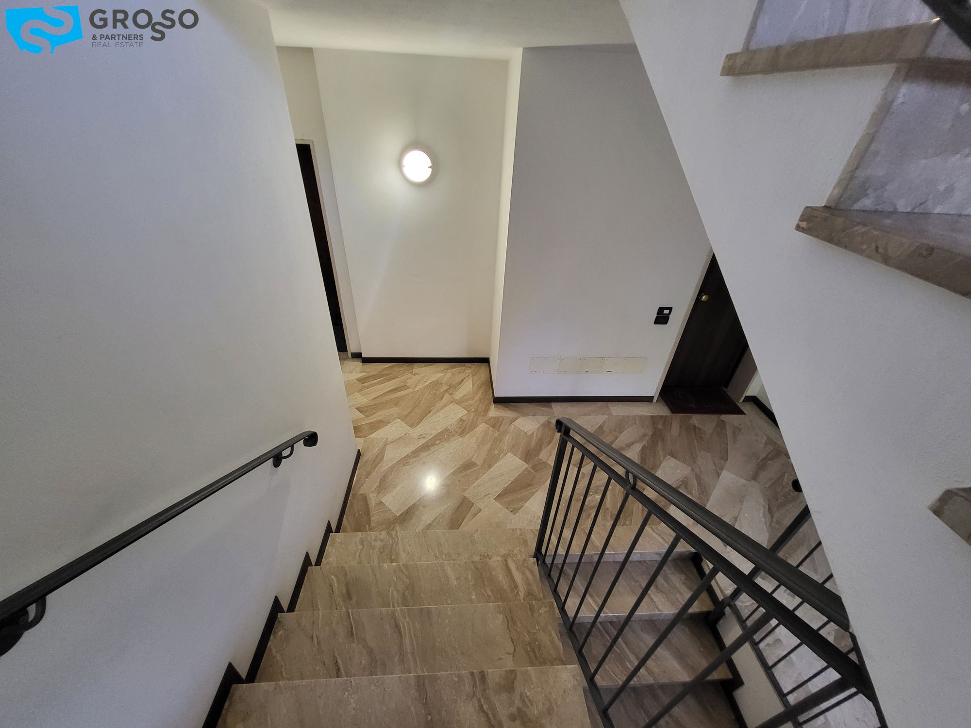 In un quartiere residenziale centrale e ben collegato, proponiamo un elegante appartamento su due livelli inserito in un condominio curato di sole otto unità.