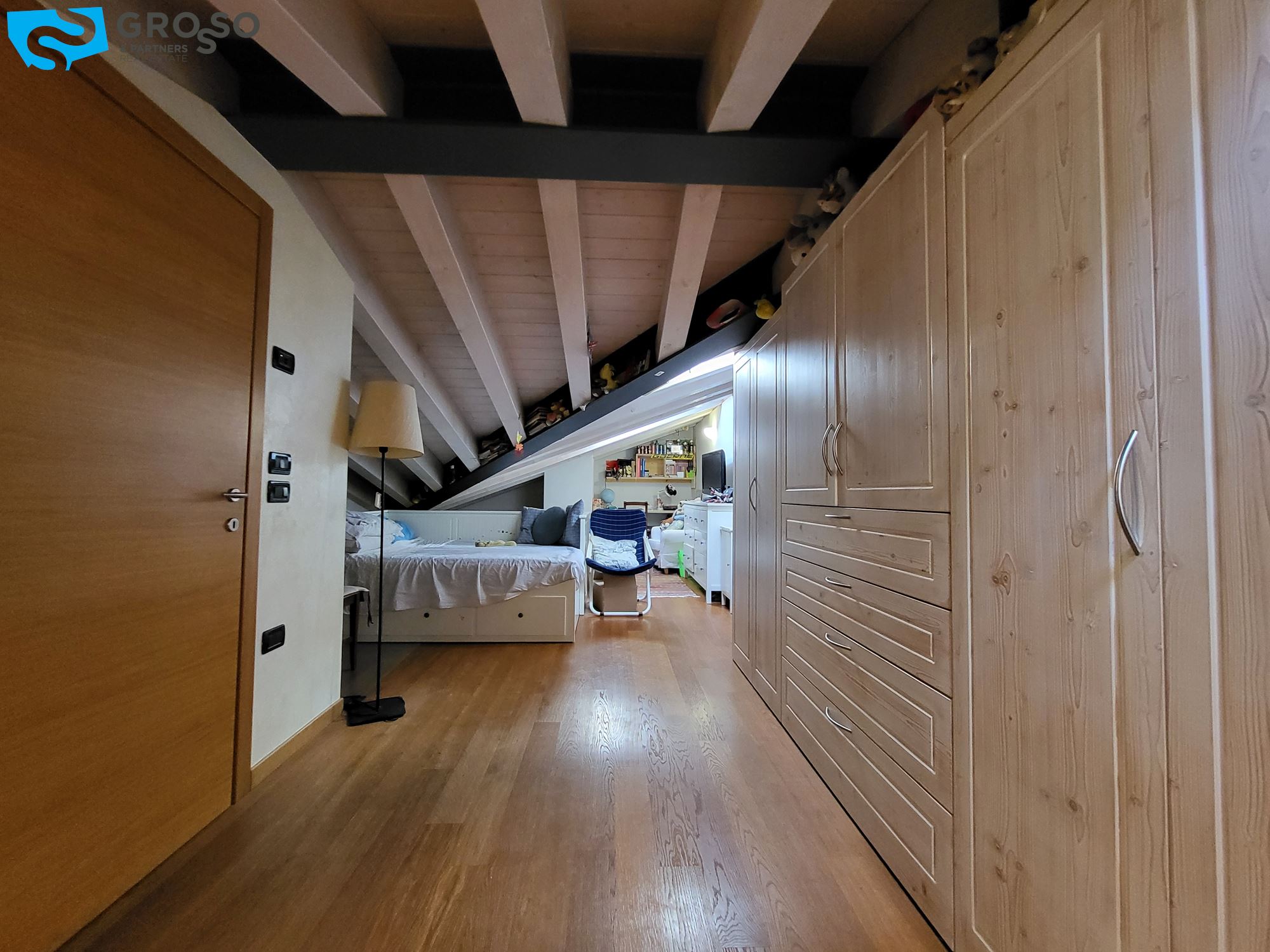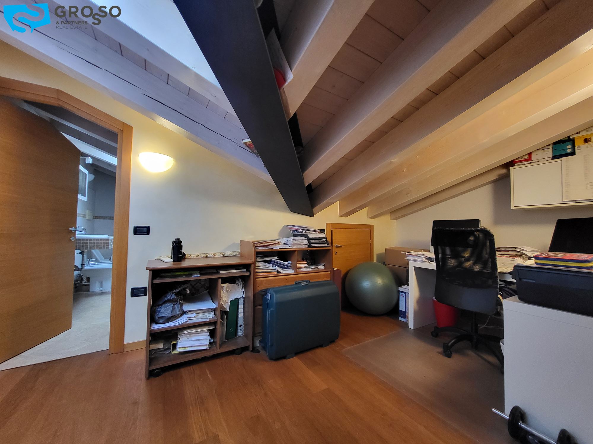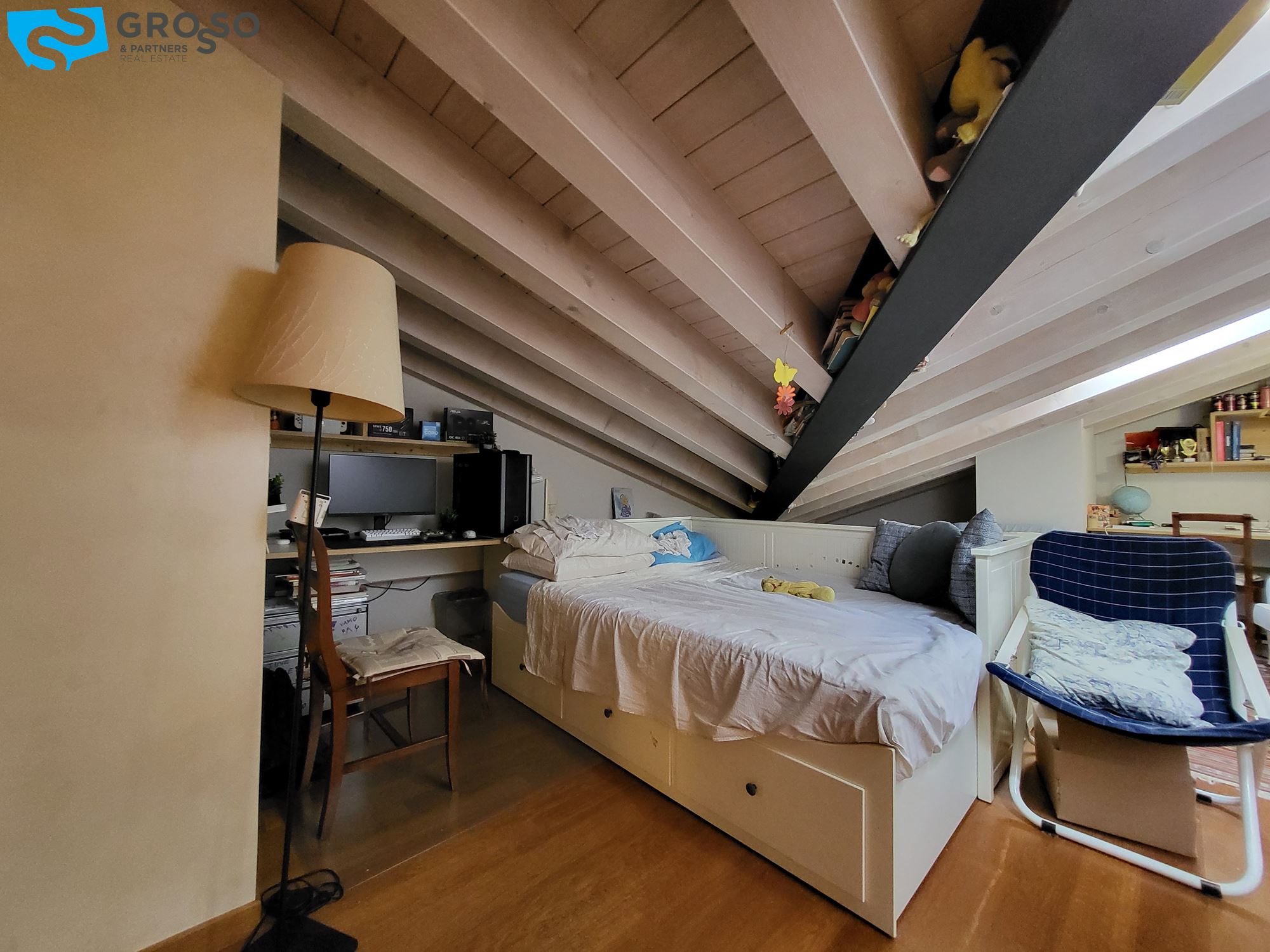 Una scala interna conduce al piano superiore attualmente open space in sottotetto non abitabile: uno spazio versatile da modellare secondo le esigenze, ideale come studio.