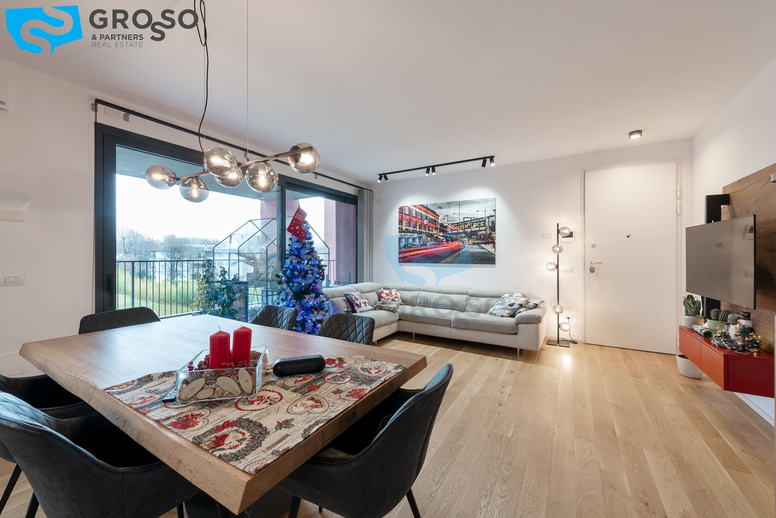 Grosso&Partners ha il piacere di proporre un appartamento elegante e contemporaneo a Dosson, alle porte di Treviso, inserito in un contesto residenziale recente del 2022, protetto e curato, dove il giardino condominiale crea una piacevole cornice di quiete. L'abitazione, situata al secondo piano, accoglie con un luminoso soggiorno con angolo cottura che si apre su un terrazzo vivibile, ideale per colazioni lente, cene d'estate o semplicemente per godersi un respiro d'aria fresca sopra il verde circostante. La zona notte si sviluppa in modo armonioso con una camera matrimoniale e una camera singola spaziosa, entrambe pensate per garantire comfort e funzionalità, affiancate da una lavanderia e due bagni moderni.