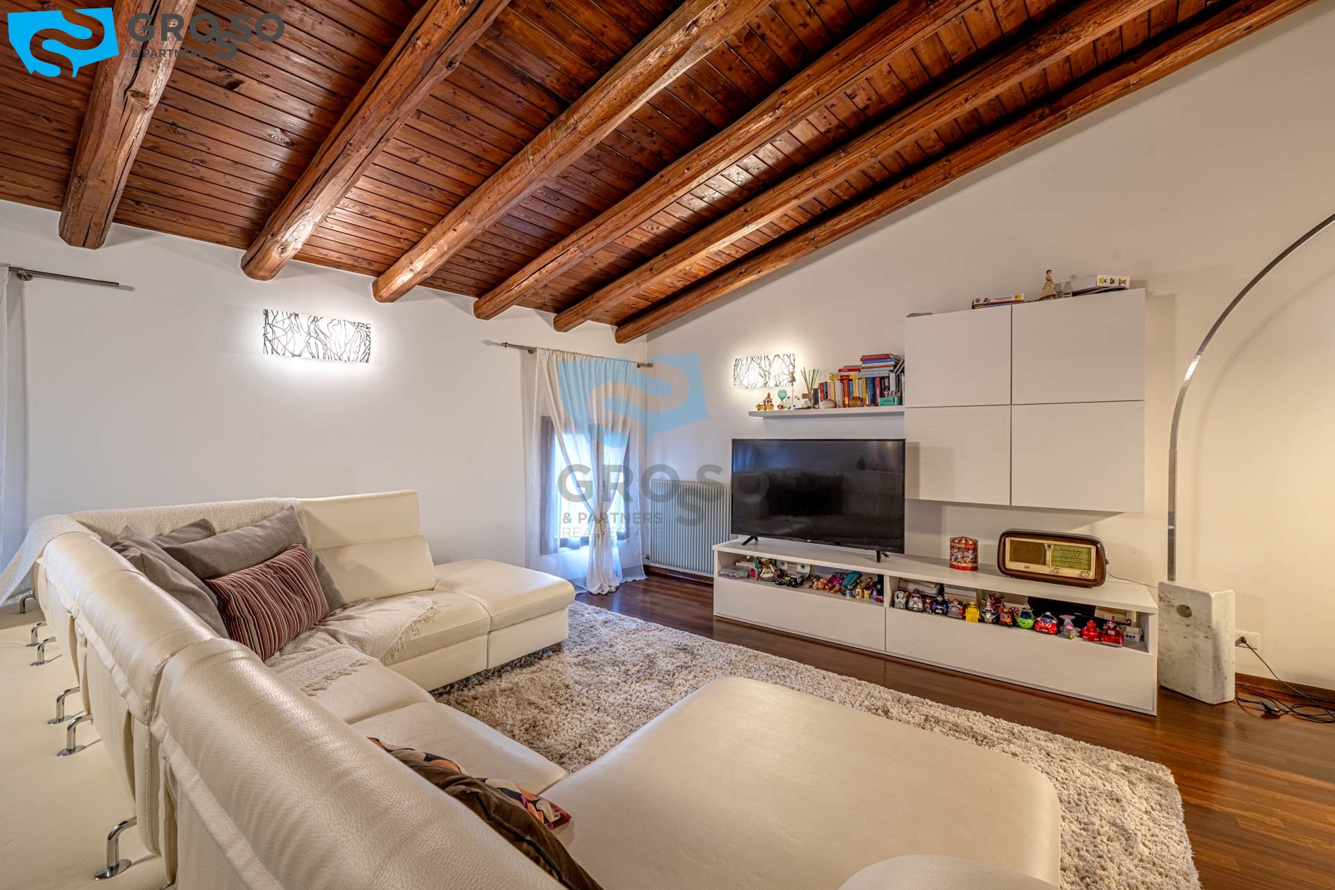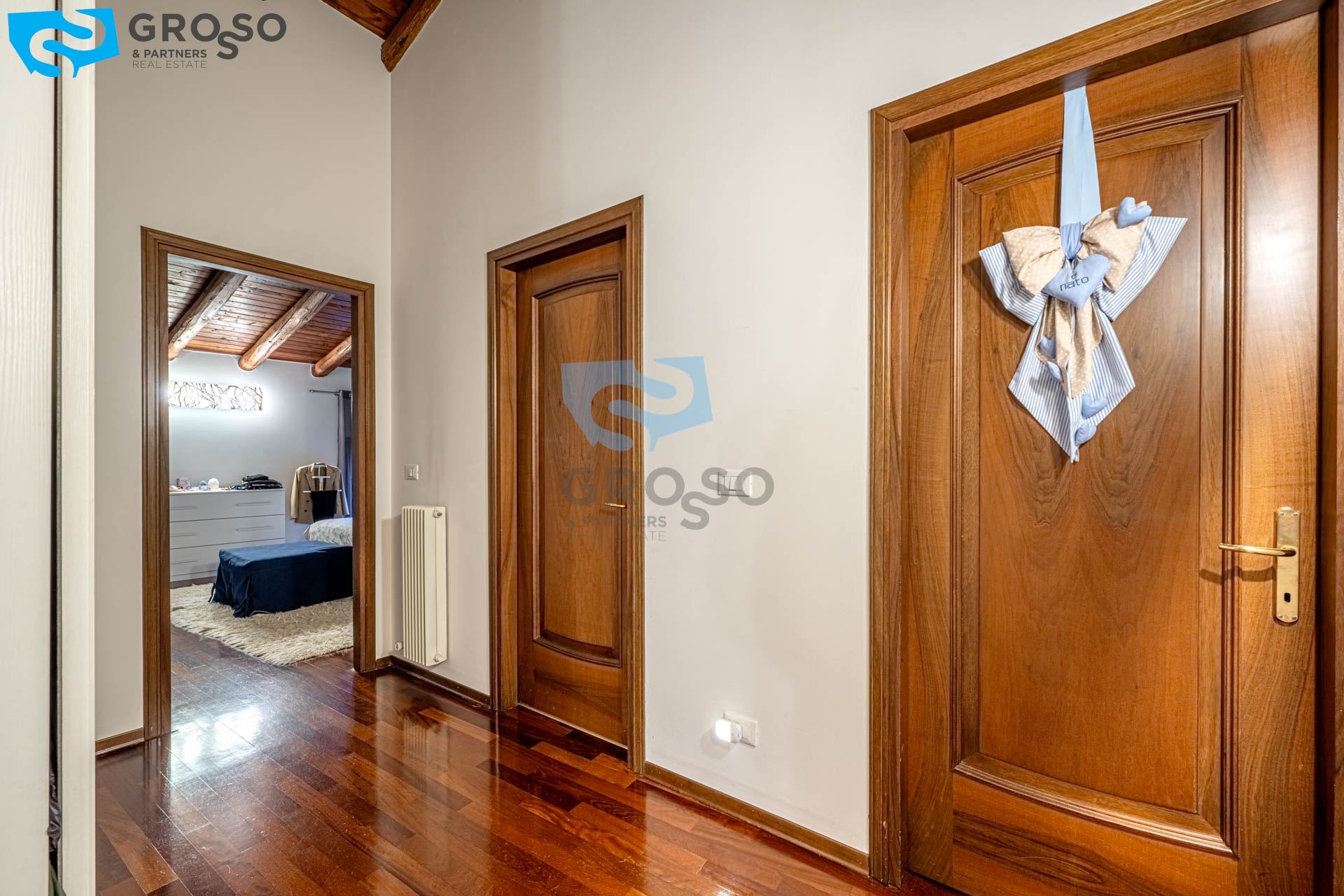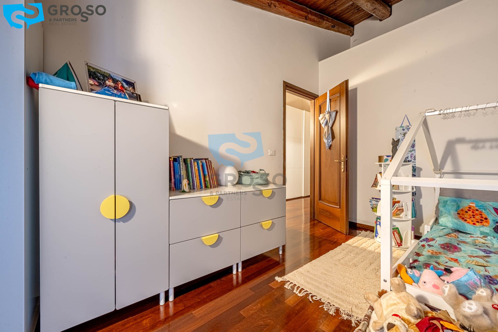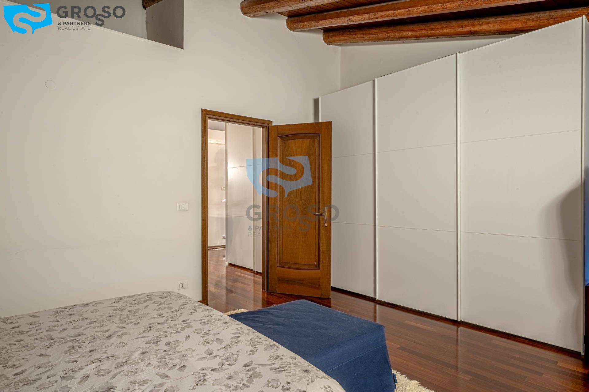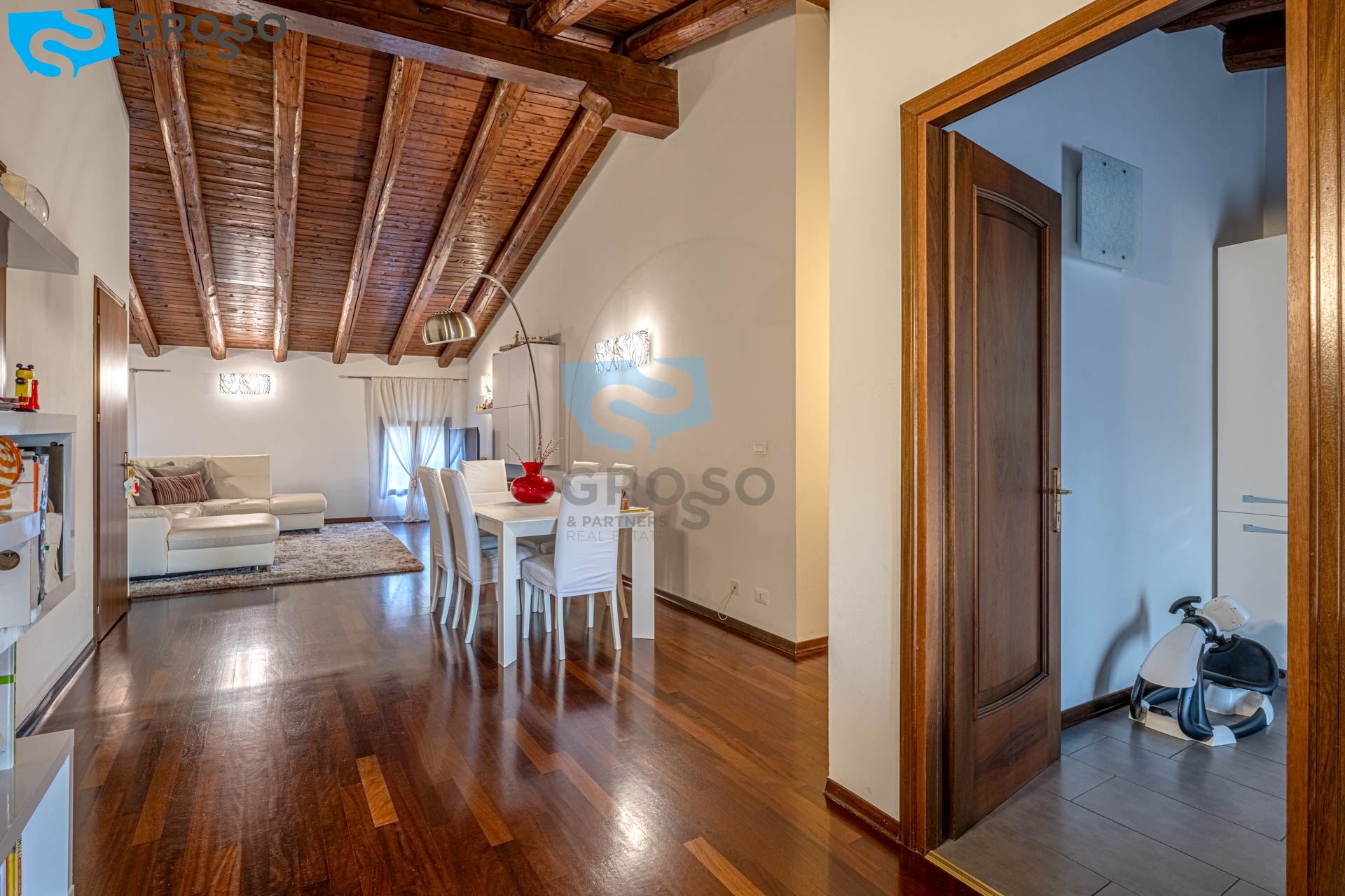 L'appartamento è caratterizzato da un forte fascino grazie alle travature in legno a vista, che donano calore e personalità agli ambienti, richiamando lo stile tipico delle abitazioni del centro storico. La pavimentazione è realizzata in legno in quasi tutta la casa, contribuendo a creare un'atmosfera elegante e accogliente, con l'eccezione dei bagni e della cucina, dove sono stati scelti materiali più pratici e funzionali.