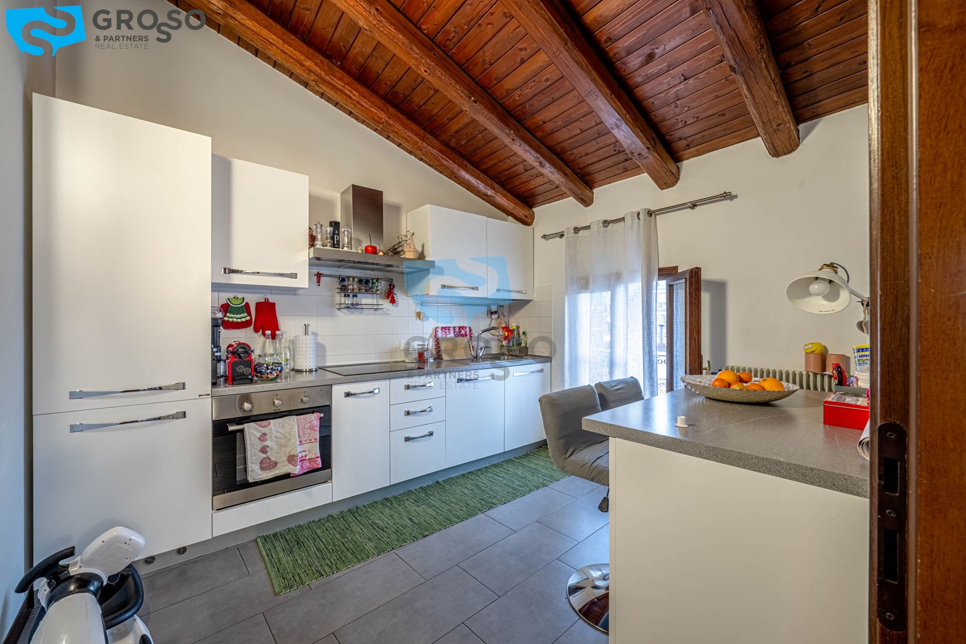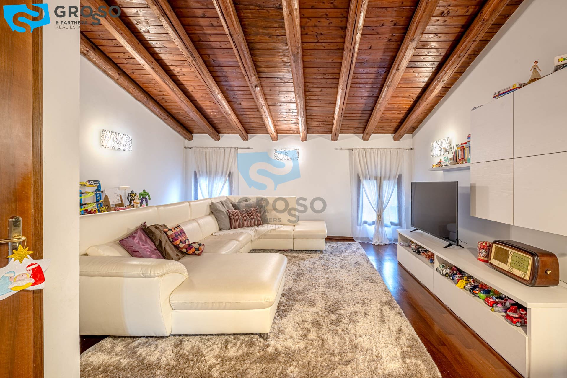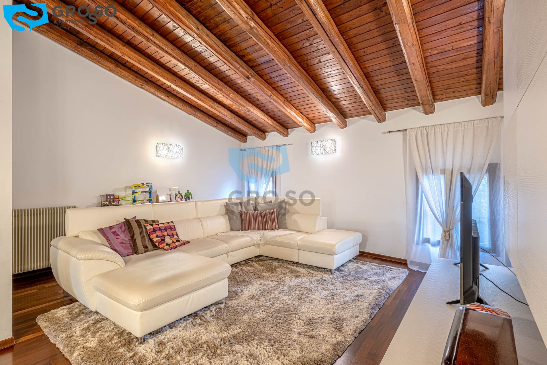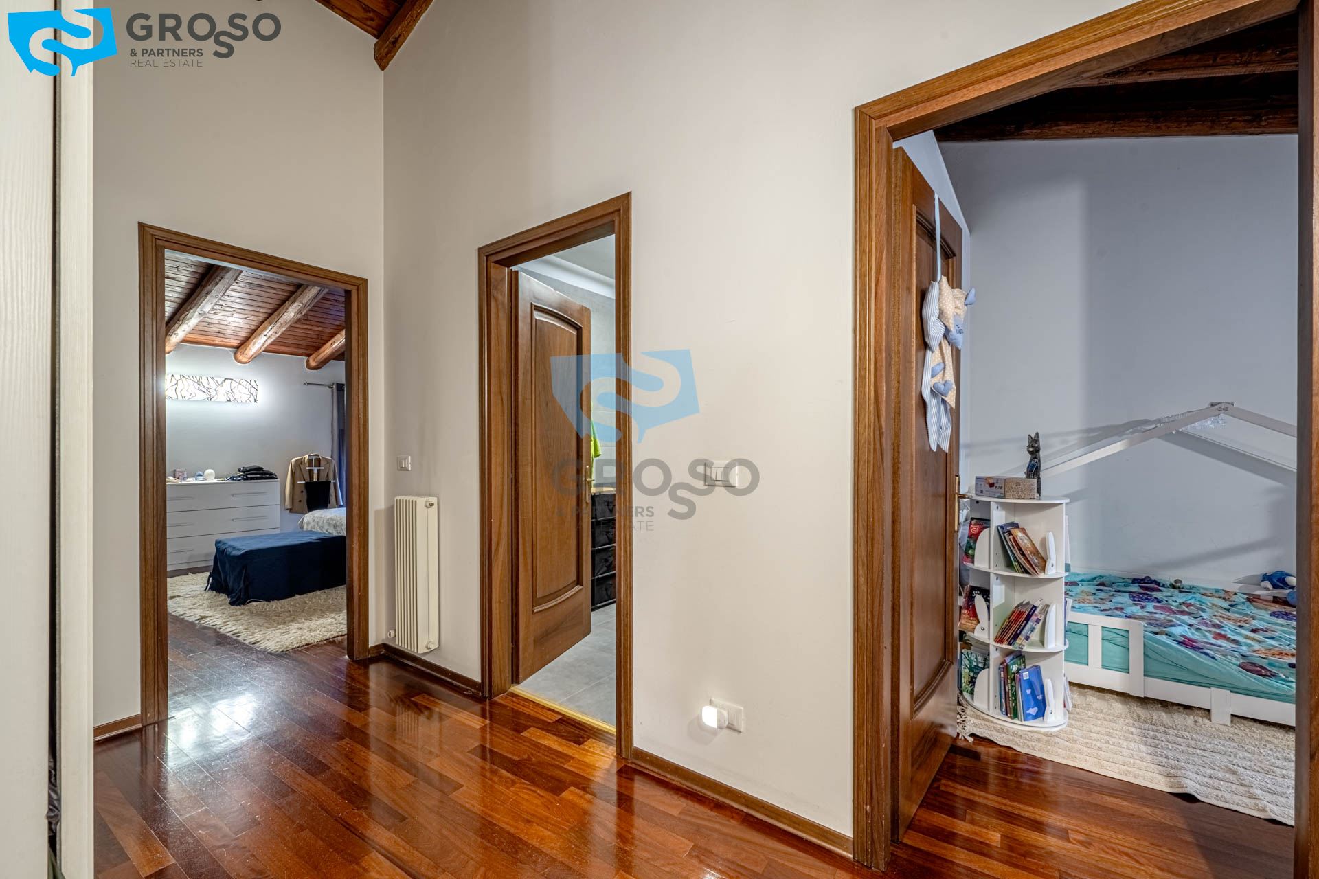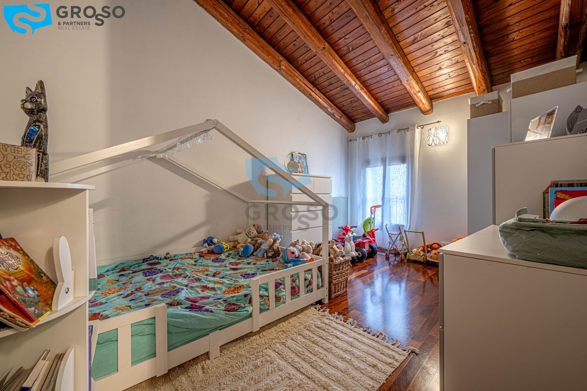L'appartamento è caratterizzato da un forte fascino grazie alle travature in legno a vista, che donano calore e personalità agli ambienti, richiamando lo stile tipico delle abitazioni del centro storico. La pavimentazione è realizzata in legno in quasi tutta la casa, contribuendo a creare un'atmosfera elegante e accogliente, con l'eccezione dei bagni e della cucina, dove sono stati scelti materiali più pratici e funzionali.