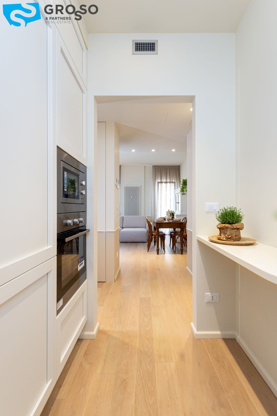 Treviso centro storico, Piazza Matteotti, appartamento finemente ristrutturato al terzo piano con ascensore, composto da ingresso armadiato con zona lavanderia, soggiorno con zona pranzo, cucina separata, 2 camere (matrimoniale e doppia) e due bagni con doccia.