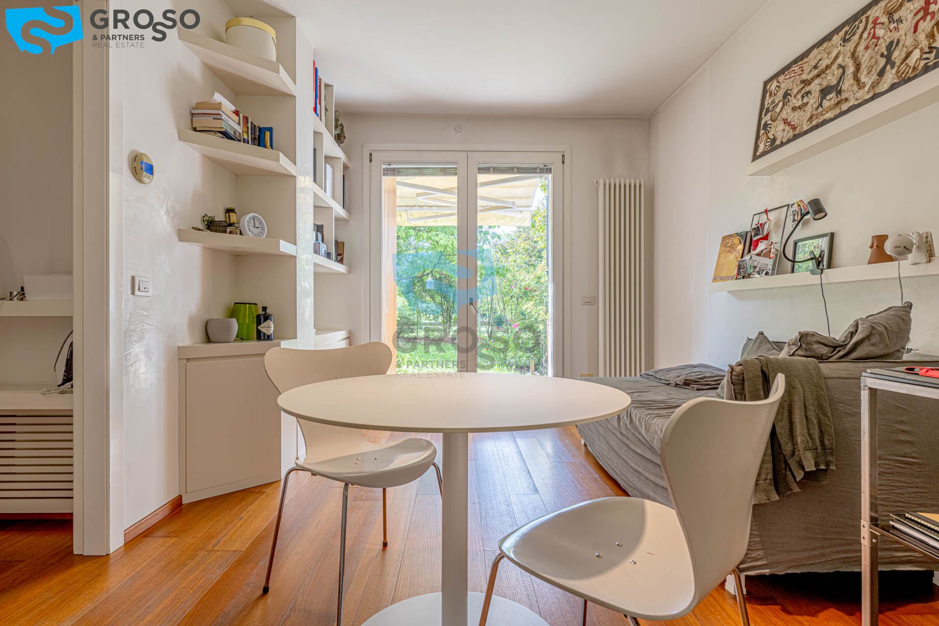 Fontane di Villorba, in zona residenziale tranquilla e silenziosa, disponiamo di elegante mini-appartamento al piano terra così composto: ingresso nel soggiorno con zona pranzo, cucinotto separato, camera matrimoniale, bagno con doccia, riscaldamento autonomo a radiatori, impianto di aria condizionata, giardino privato di oltre 100 mq.