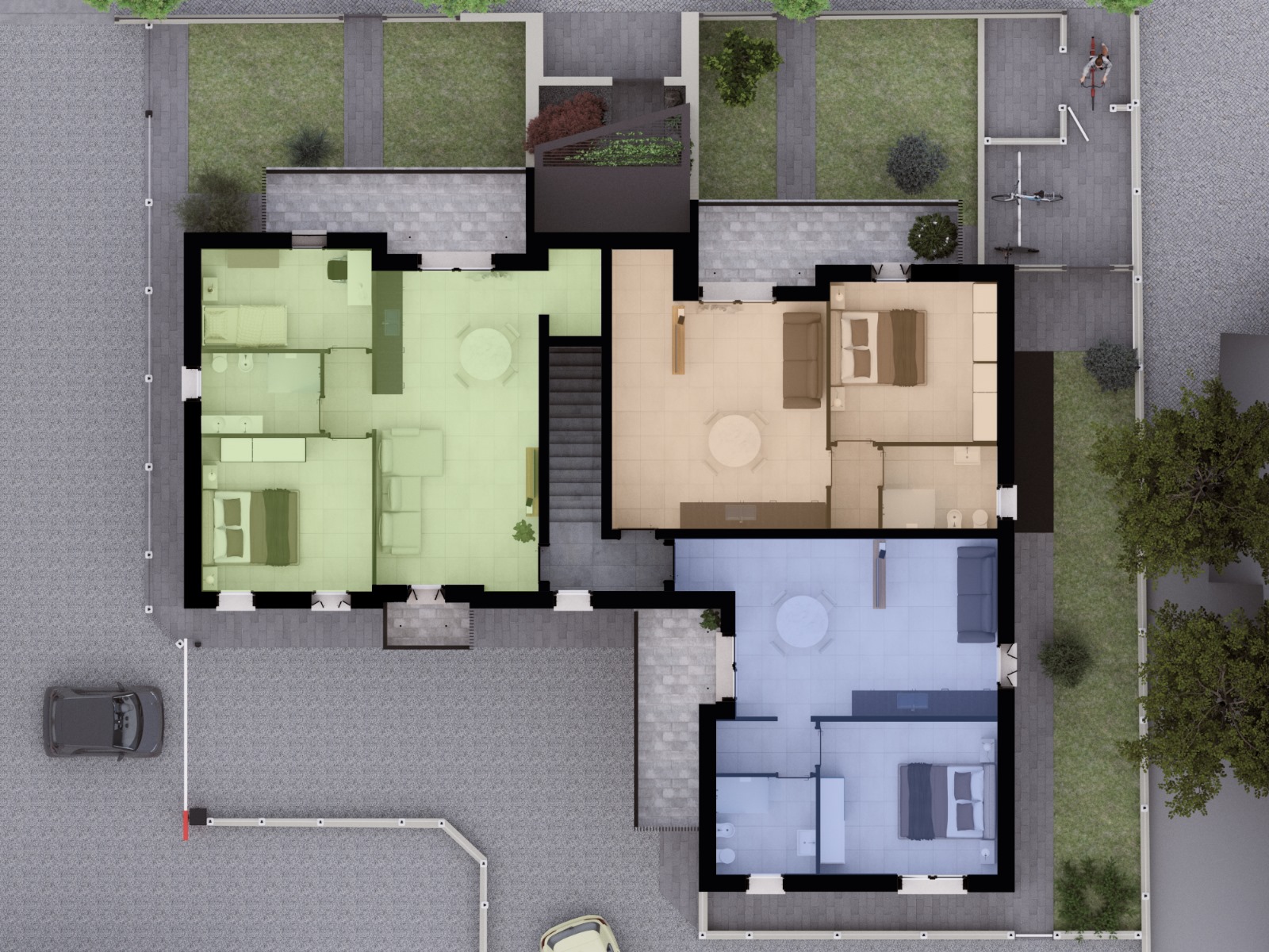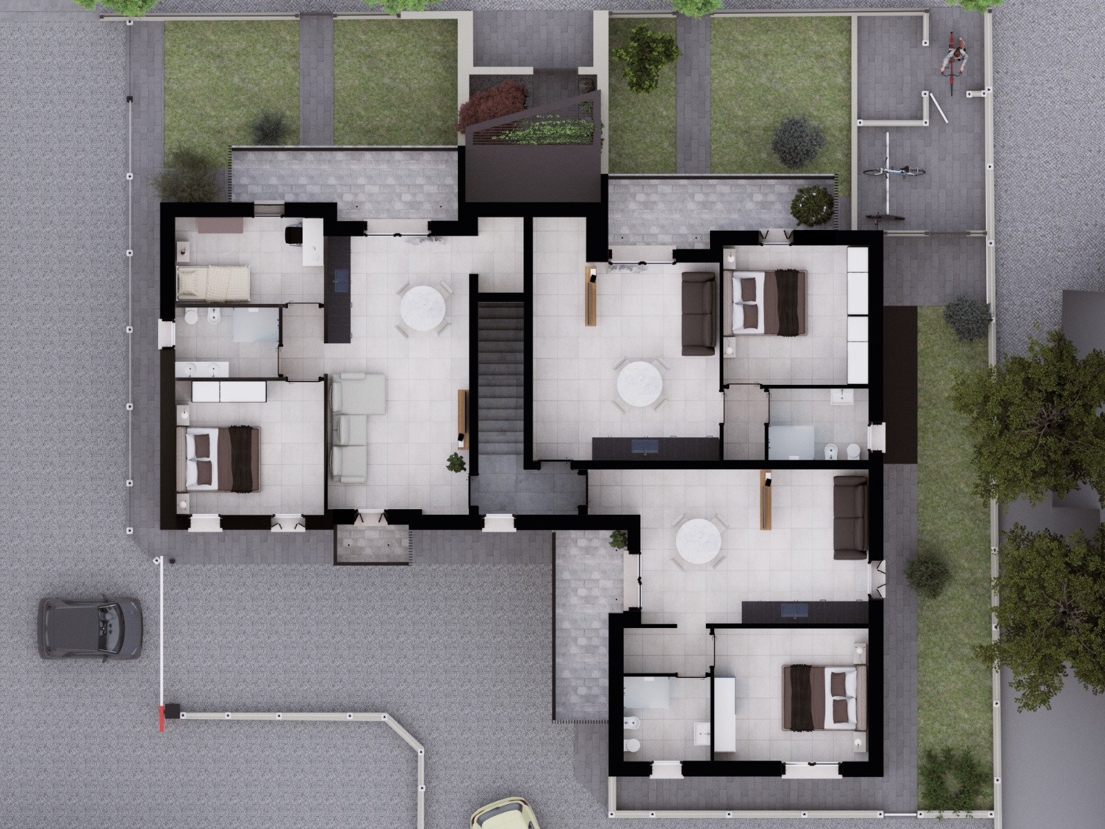 Le Residenze Cesare sono progettate per offrire il massimo comfort: area parcheggio esterna con chiusura automatica, isola ecologica e spazio dedicato alle biciclette ad uso esclusivo dei residenti.