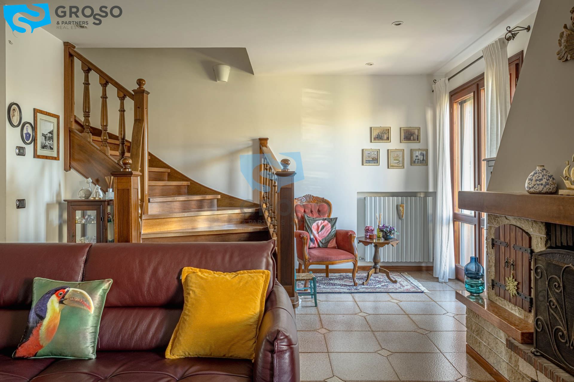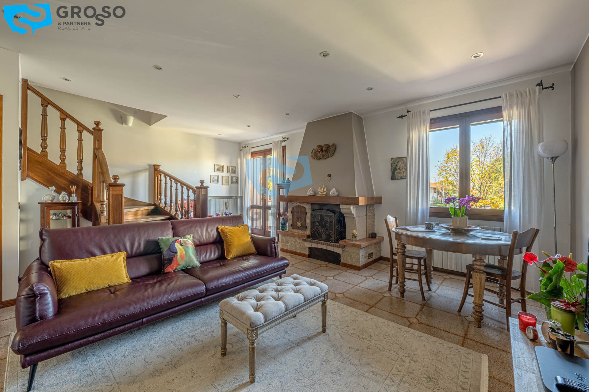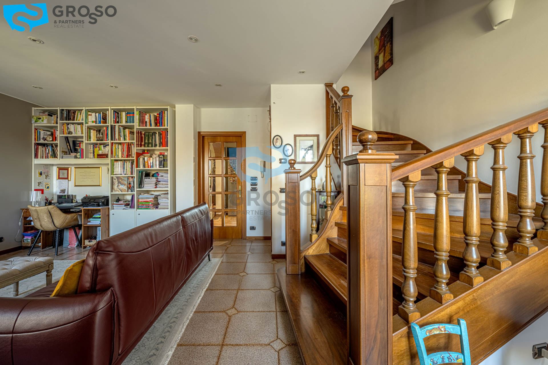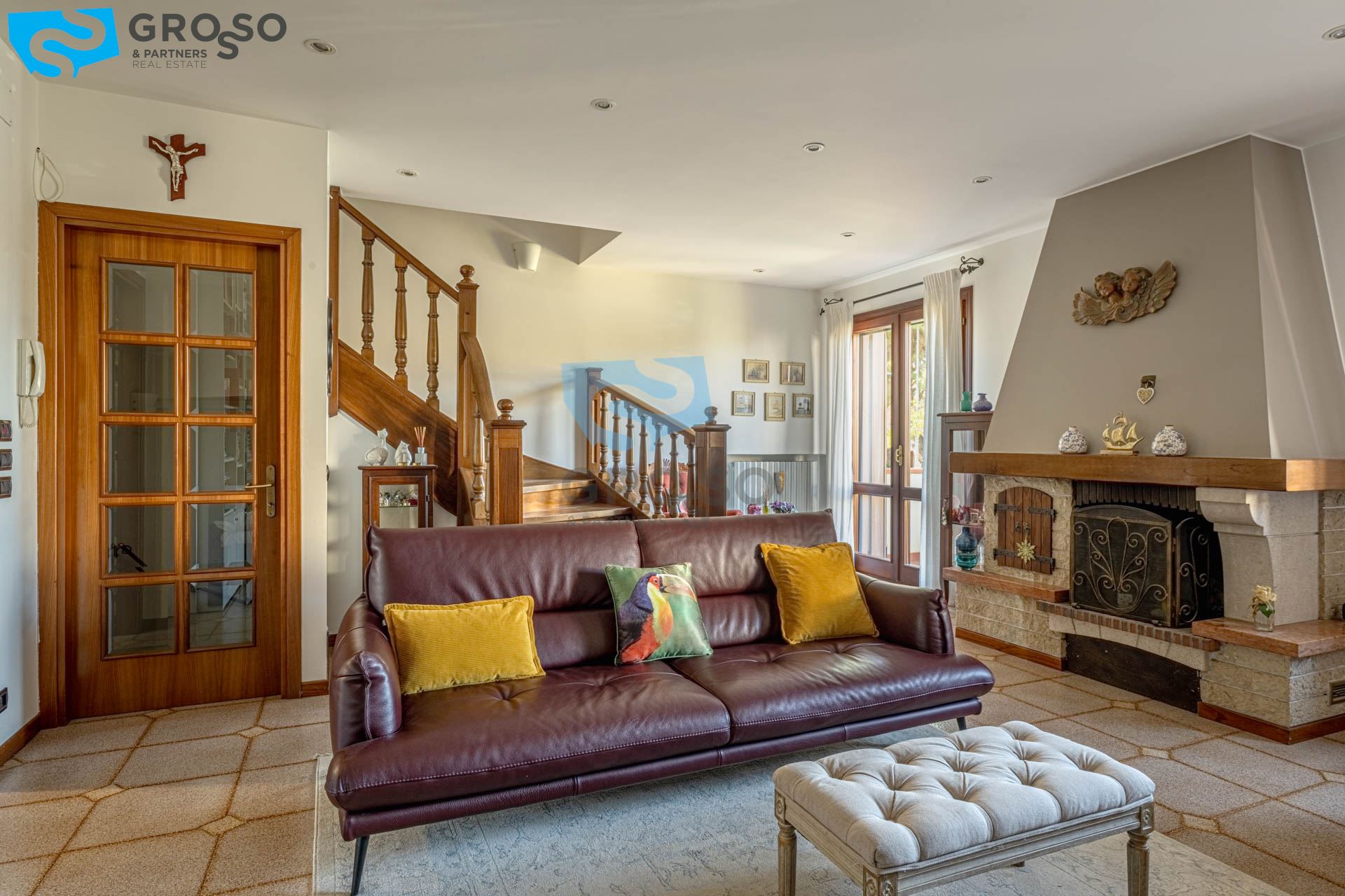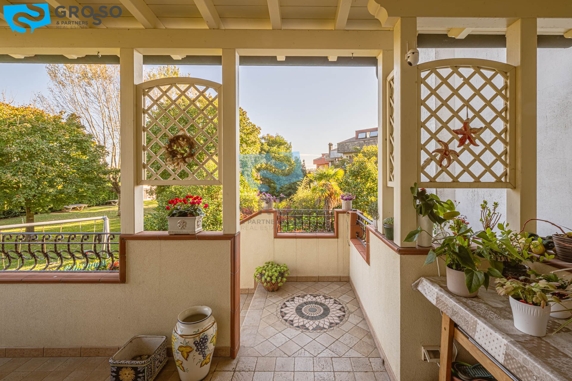 Al piano terra si trovano l' autorimessa, la cantina e la lavanderia, spazi funzionali e pratici che completano la zona di servizio dell'abitazione. Salendo al primo piano si accede alla zona giorno, caratterizzata da un elegante soggiorno con camino, che regala un'atmosfera calda e familiare, e da una cucina separata con zona pranzo, luminosa e ben organizzata. Da quest'ultima si apre una spaziosa terrazza, perfetta per pranzi all'aperto e momenti di relax. Il secondo piano ospita la zona notte, composta da una camera matrimoniale con cabina armadio, due camere singole entrambe dotate di terrazzo privato, e un bagno finestrato curato nei dettagli.