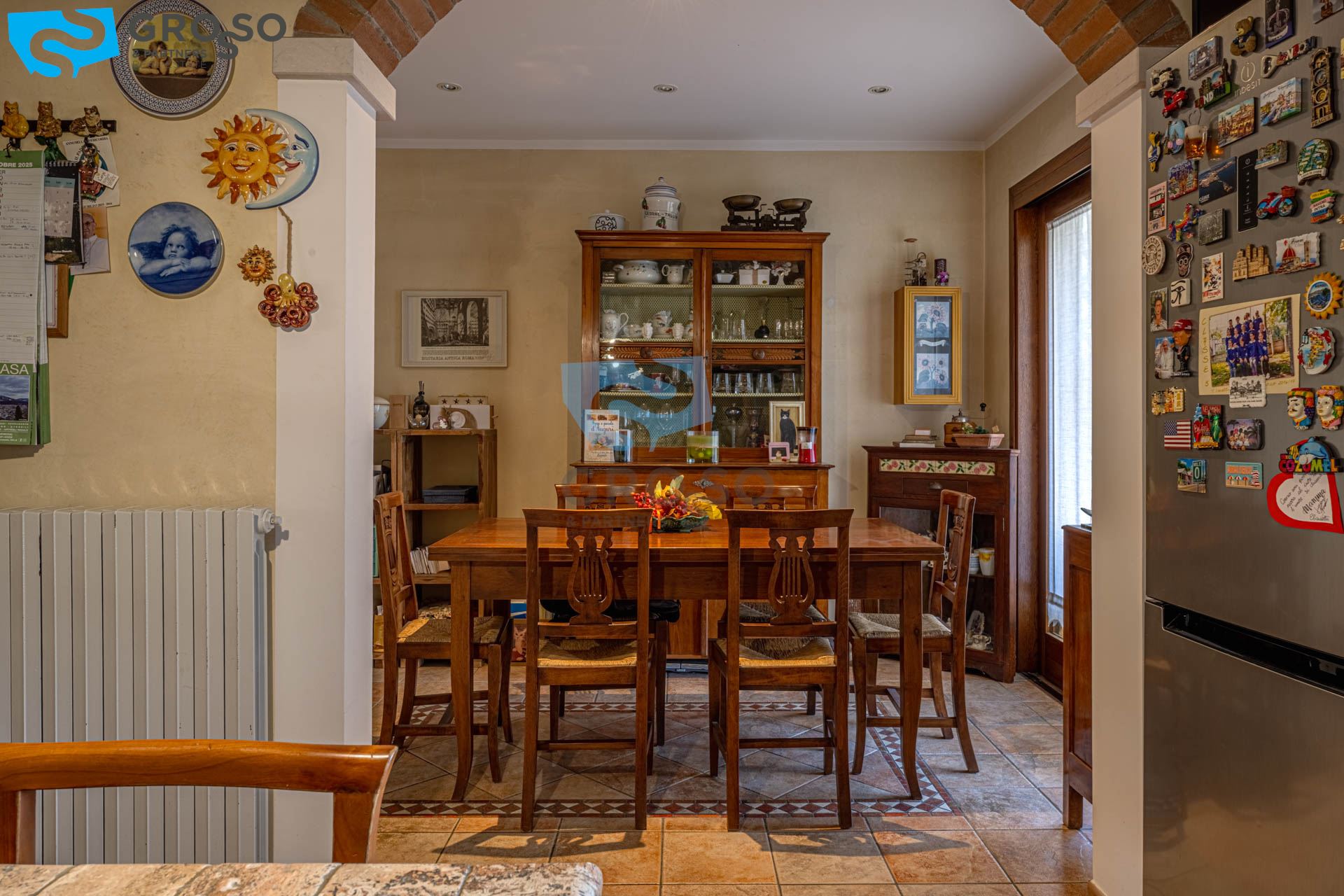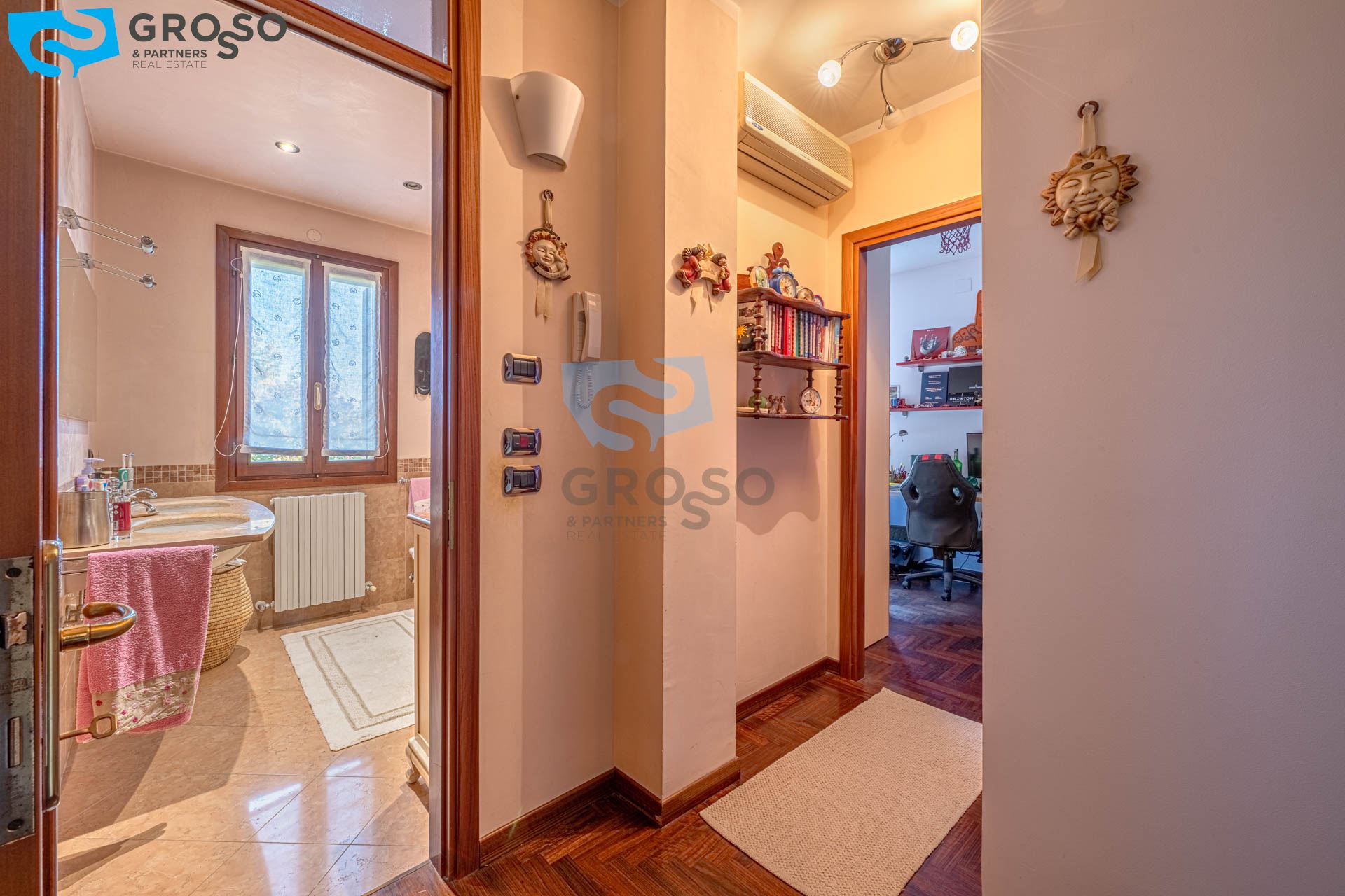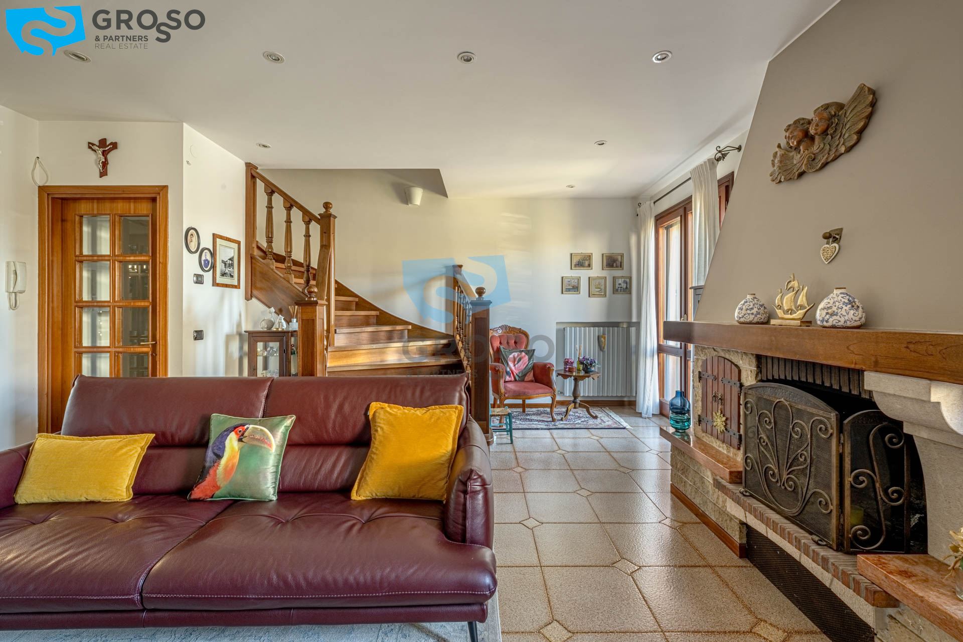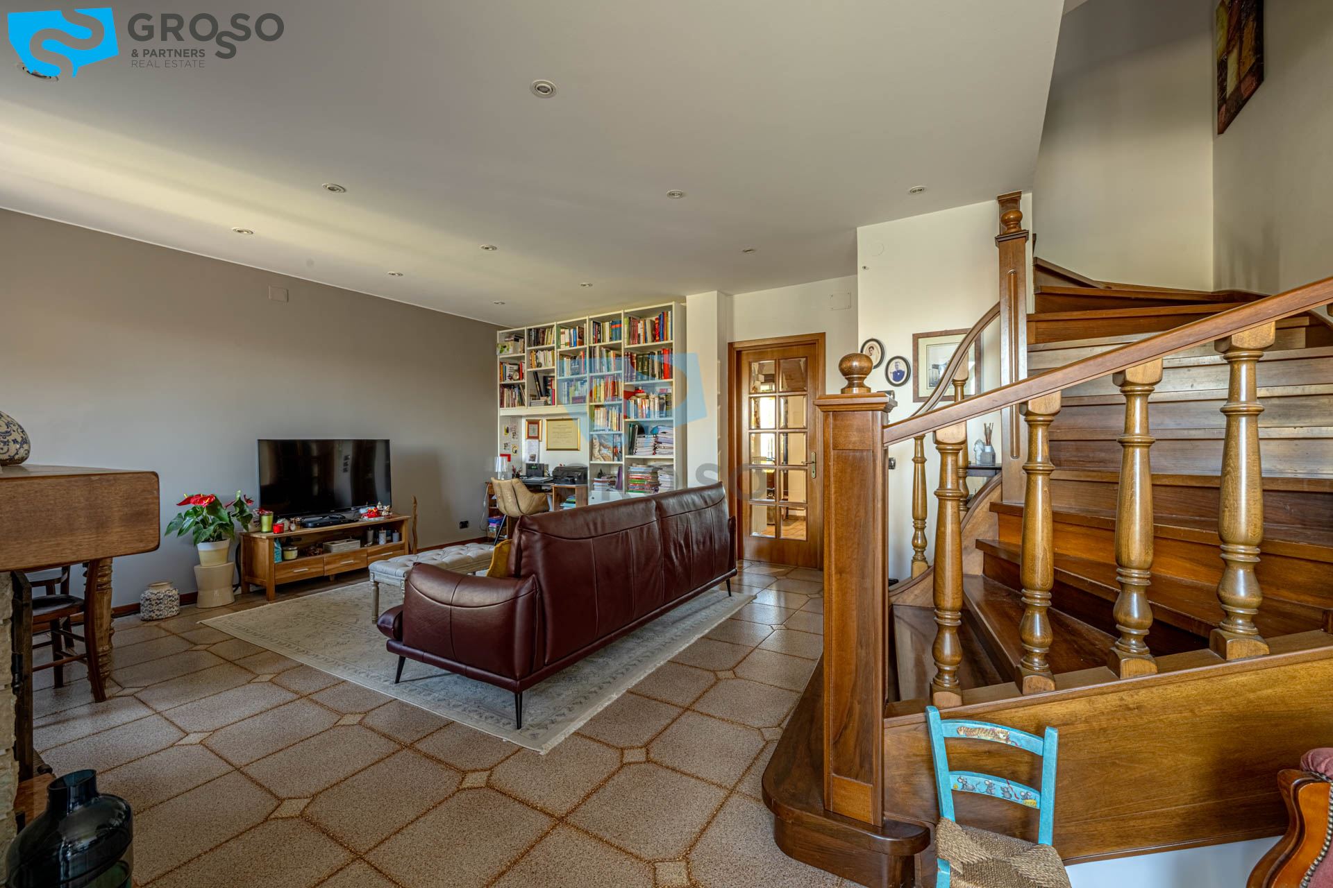 Al piano terra si trovano l' autorimessa, la cantina e la lavanderia, spazi funzionali e pratici che completano la zona di servizio dell'abitazione. Salendo al primo piano si accede alla zona giorno, caratterizzata da un elegante soggiorno con camino, che regala un'atmosfera calda e familiare, e da una cucina separata con zona pranzo, luminosa e ben organizzata. Da quest'ultima si apre una spaziosa terrazza, perfetta per pranzi all'aperto e momenti di relax. Il secondo piano ospita la zona notte, composta da una camera matrimoniale con cabina armadio, due camere singole entrambe dotate di terrazzo privato, e un bagno finestrato curato nei dettagli.