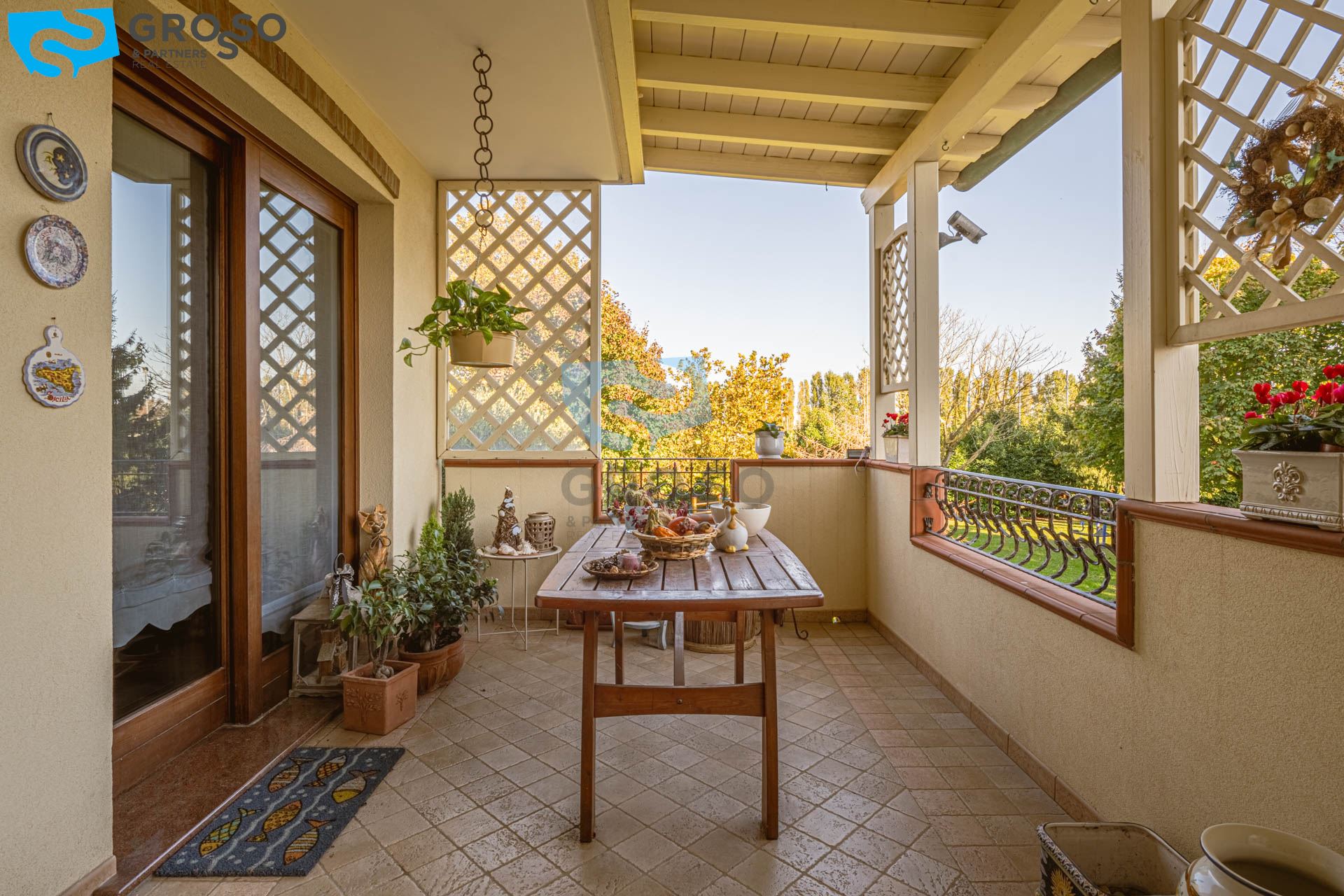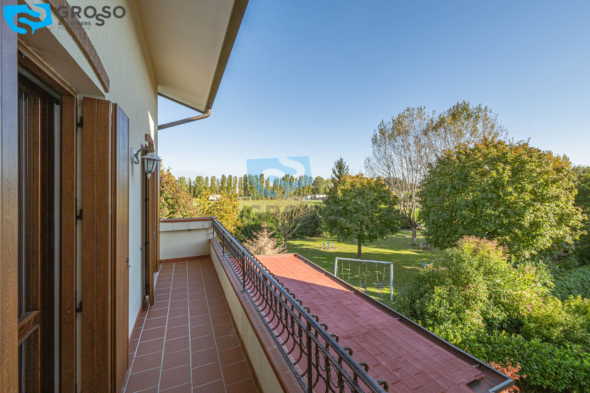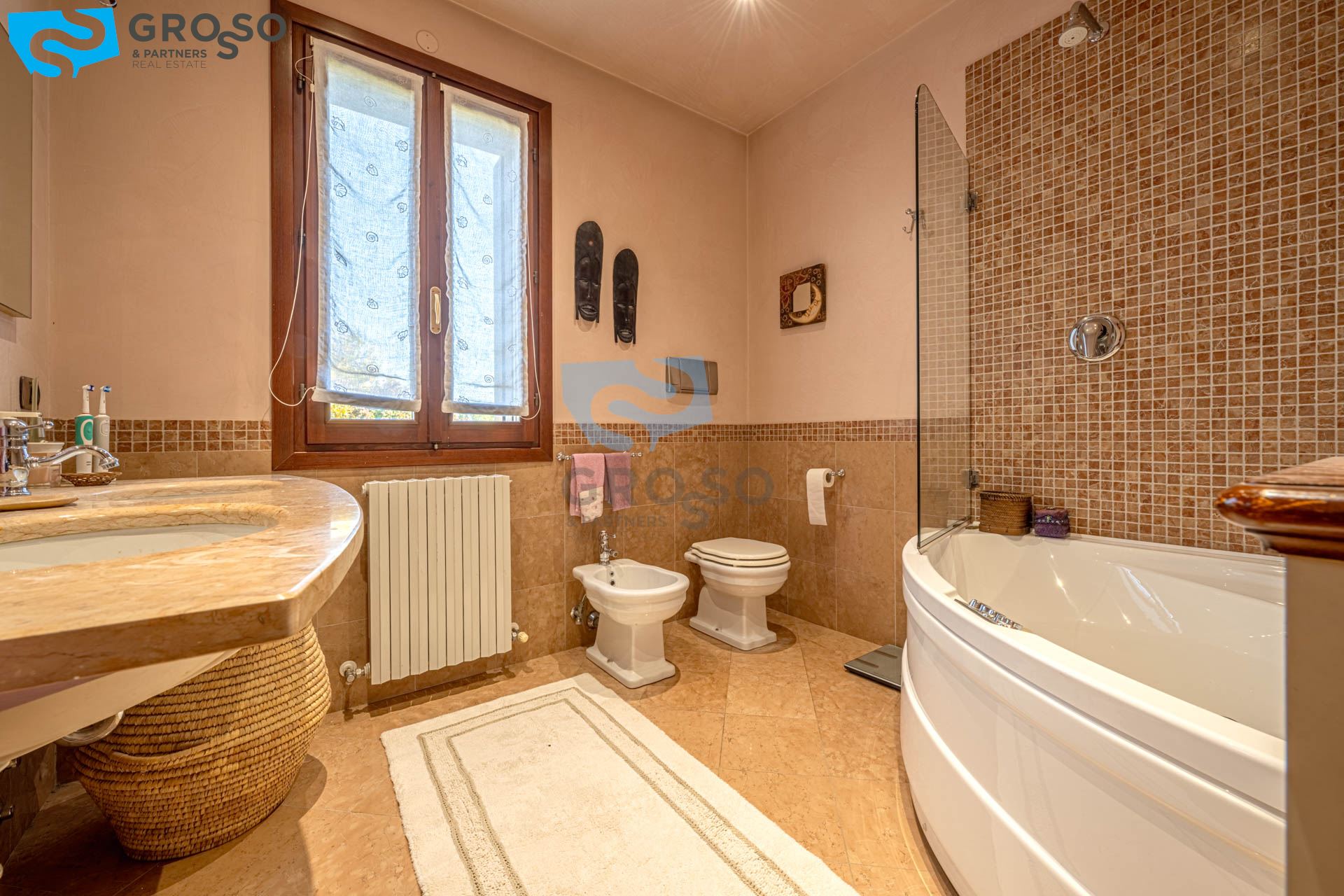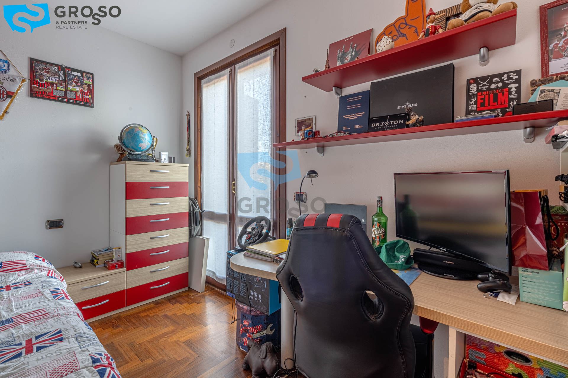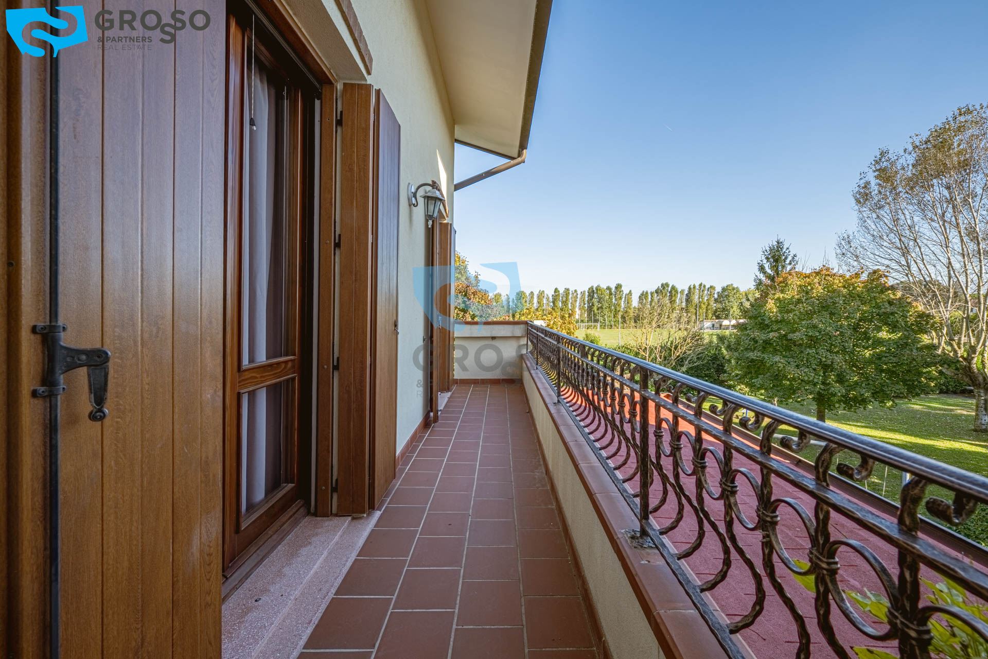 Al piano terra si trovano l' autorimessa, la cantina e la lavanderia, spazi funzionali e pratici che completano la zona di servizio dell'abitazione. Salendo al primo piano si accede alla zona giorno, caratterizzata da un elegante soggiorno con camino, che regala un'atmosfera calda e familiare, e da una cucina separata con zona pranzo, luminosa e ben organizzata. Da quest'ultima si apre una spaziosa terrazza, perfetta per pranzi all'aperto e momenti di relax. Il secondo piano ospita la zona notte, composta da una camera matrimoniale con cabina armadio, due camere singole entrambe dotate di terrazzo privato, e un bagno finestrato curato nei dettagli.