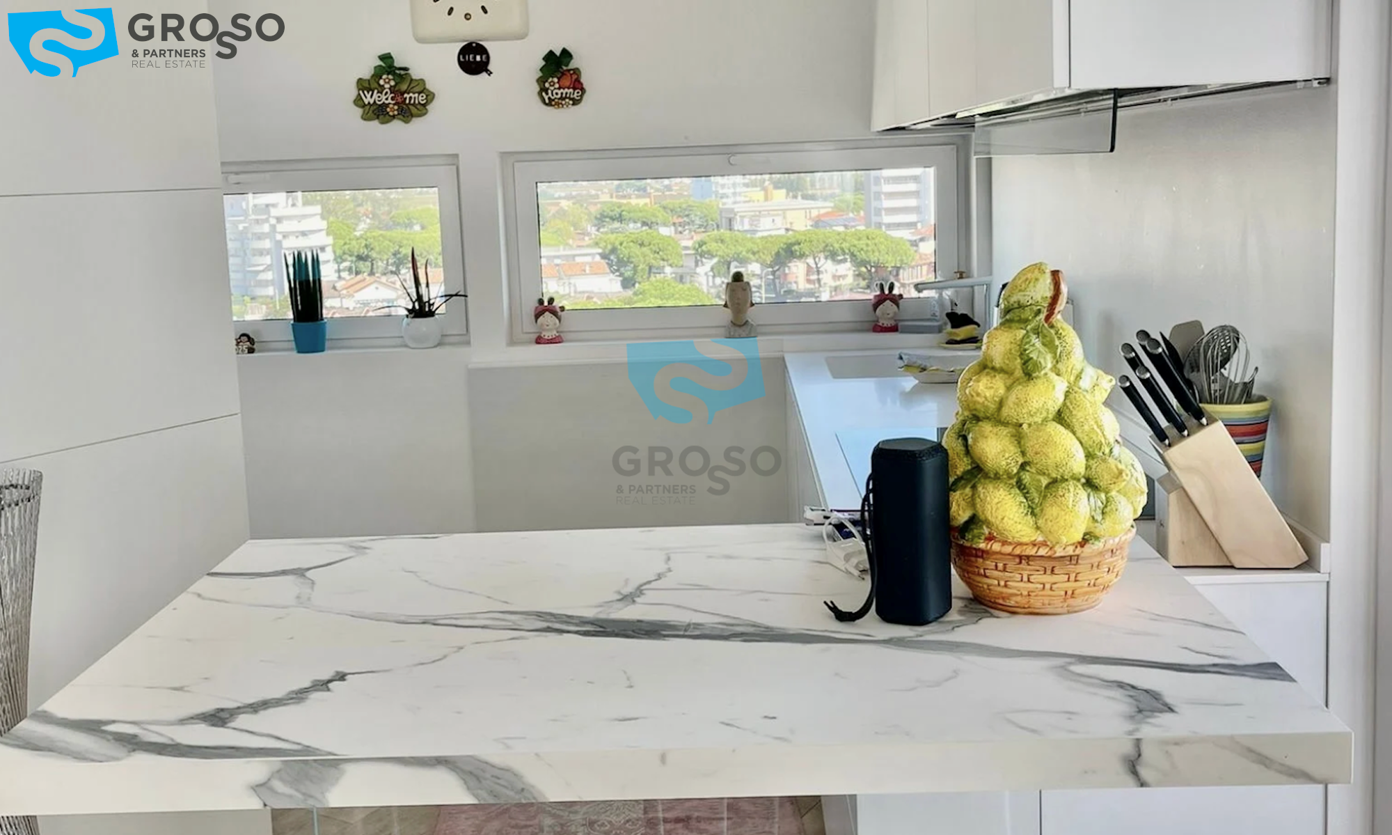 Al settimo piano del prestigioso complesso UP TOWN, a soli 300 m dalla spiaggia e a pochi passi da Piazza Drago, proponiamo moderno appartamento in palazzina di sole nove unità. L' edificio, sviluppato su dieci piani, rappresenta un nuovo riferimento nel cuore di Lido di Jesolo grazie al design contemporaneo e ai grandi terrazzi, vero tratto distintivo delle residenze. L' appartamento offre un luminoso soggiorno con angolo cottura e ampie vetrate che si affacciano sul terrazzo abitabile. La zona notte comprende due camere matrimoniali, di cui una con bagno privato dotato di box doccia, oltre a un secondo bagno finestrato, anch'esso con box doccia. Sono presenti inoltre due terrazze, entrambe ideali per ammirare una meravigliosa vista panoramica su Jesolo. Completano la proprietà un comodo posto auto coperto da pompeiana, riscaldamento autonomo a pavimento e raffrescamento canalizzato. Una soluzione esclusiva, moderna e confortevole, ideale per vivere Jesolo tutto l'anno o come elegante casa vacanze.