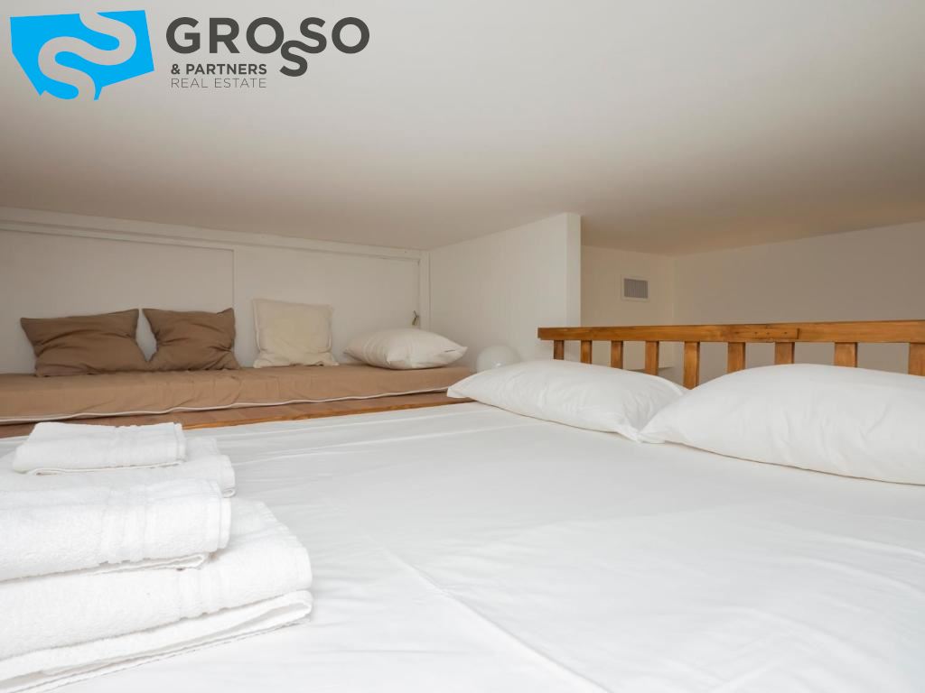 L'appartamento, dotato di connessione WiFi e aria condizionata, è composto da una luminosa zona living/notte e da un pratico angolo cottura completamente attrezzato con frigorifero, forno, microonde e macchina da caffè.