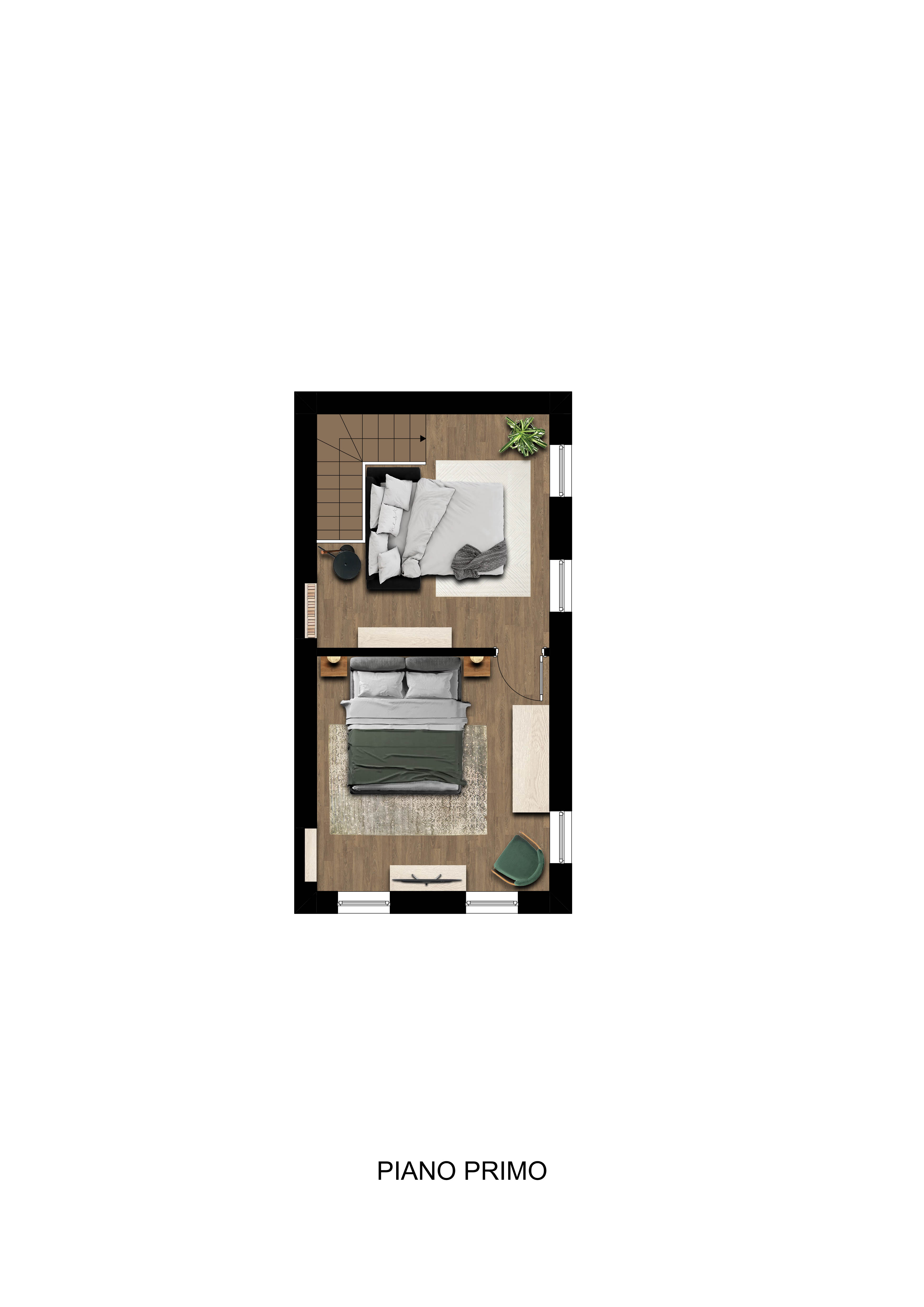 L'appartamento si sviluppa con ingresso al piano terra, dove troviamo un accogliente soggiorno con angolo cottura, un bagno e un comodo ripostiglio adibito a lavanderia. Salendo al livello superiore, l'atmosfera diventa ancora più intima: un disimpegno arredato con divano letto matrimoniale accompagna alla camera matrimoniale, uno spazio caldo e avvolgente, ideale per il riposo dopo una giornata trascorsa all'aria aperta. All'esterno, uno scoperto privato permette di vivere pranzi e cene estive immersi nella quiete, mentre un posto auto scoperto di proprietà e un'ampia cantina completano la soluzione, perfetta per stivare biciclette, sci e attrezzatura sportiva.