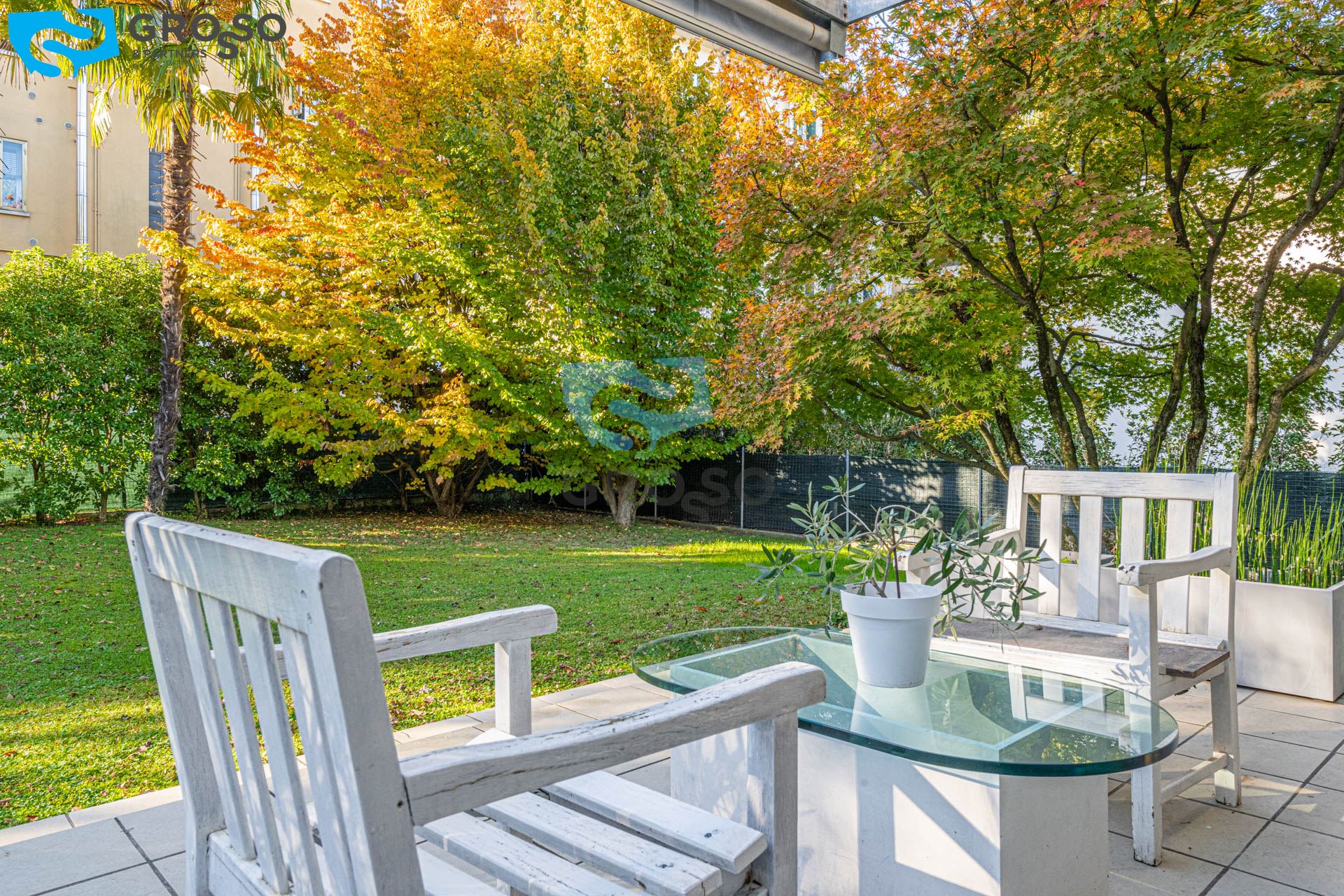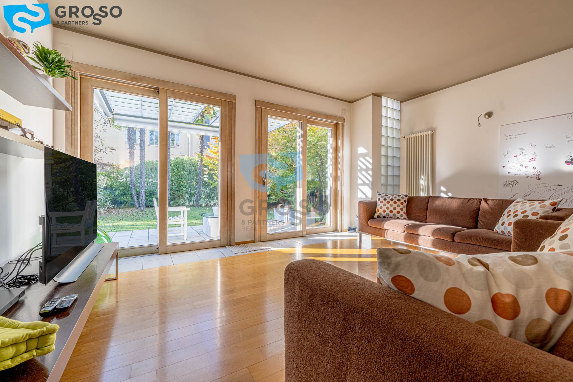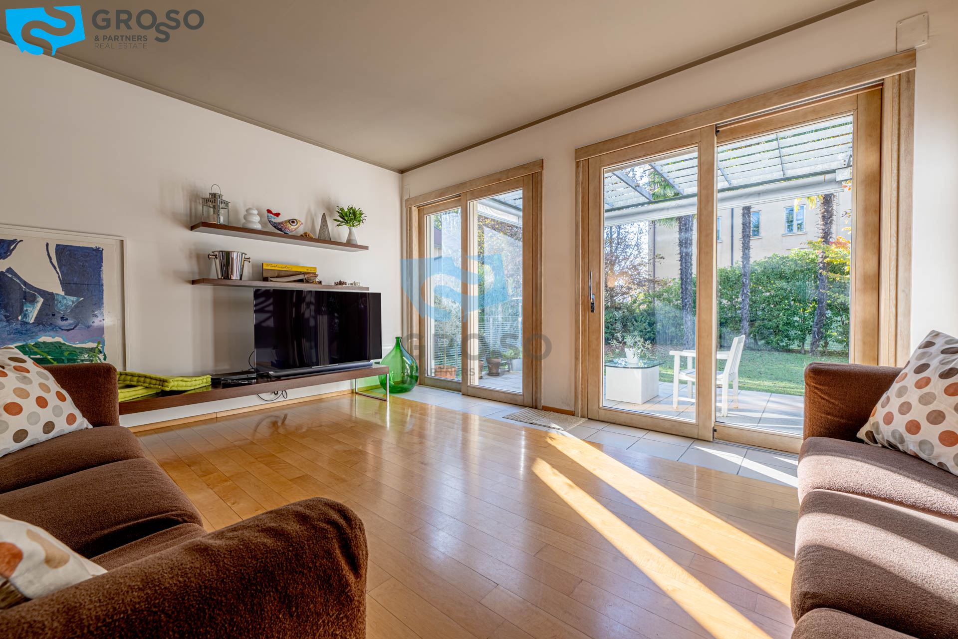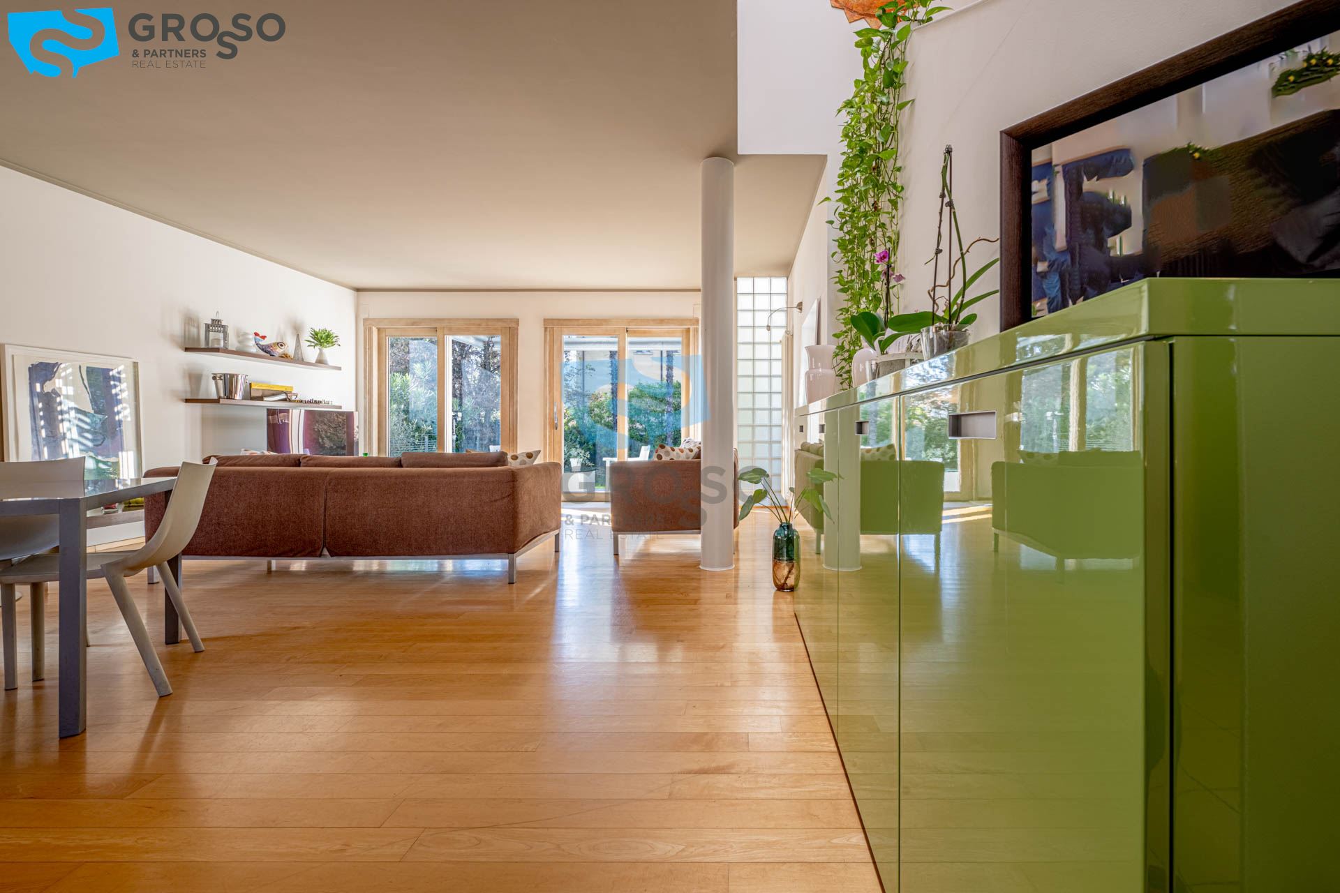 Il giardino privato di 410 mq, uno scrigno verde intorno alla villa, aggiunge un tocco di serenità e offre un'area all'aperto dedicata al relax.