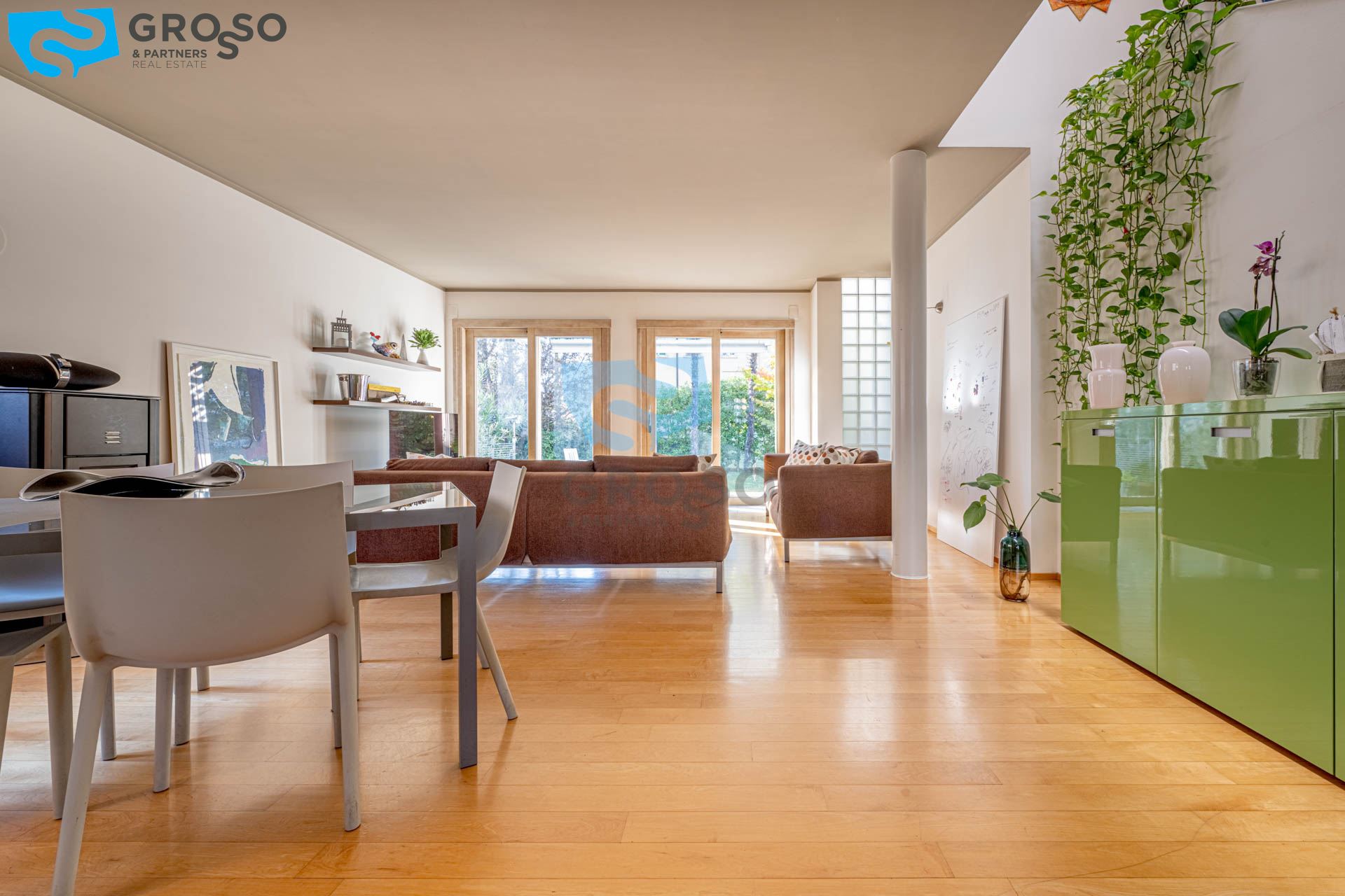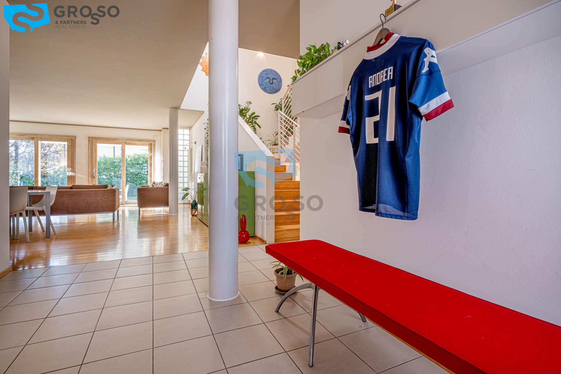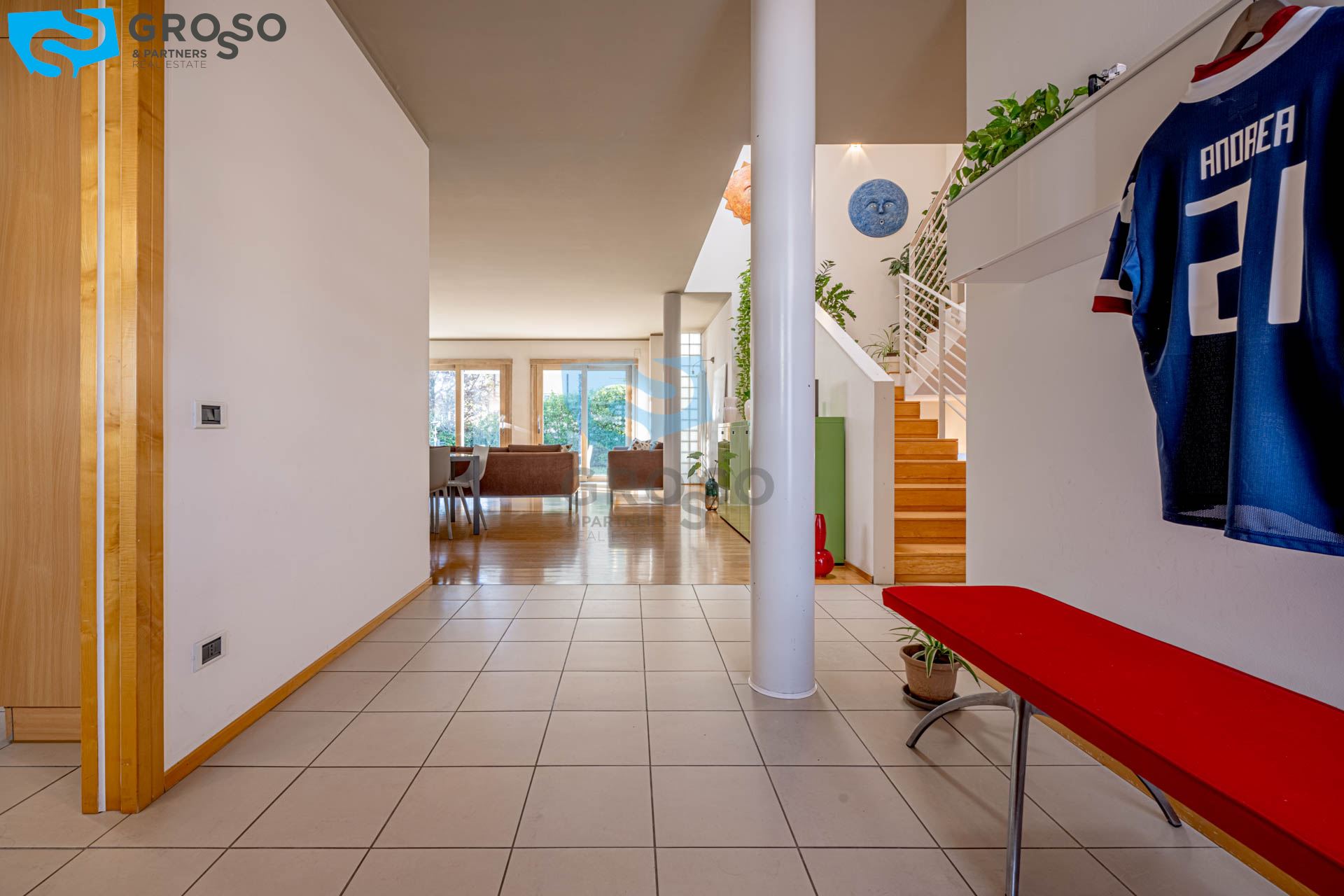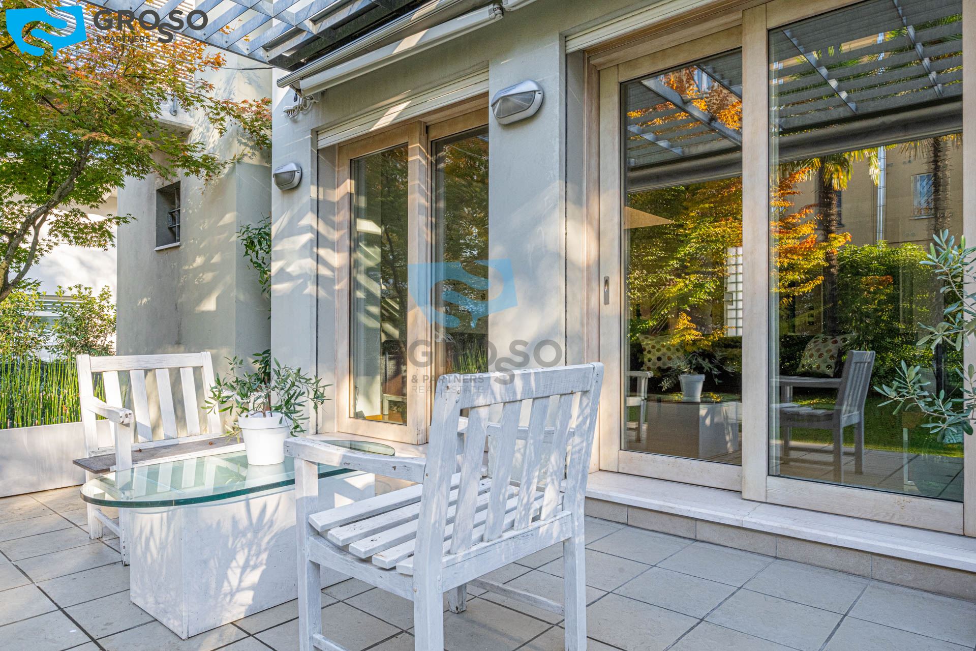 Il giardino privato di 410 mq, uno scrigno verde intorno alla villa, aggiunge un tocco di serenità e offre un'area all'aperto dedicata al relax.