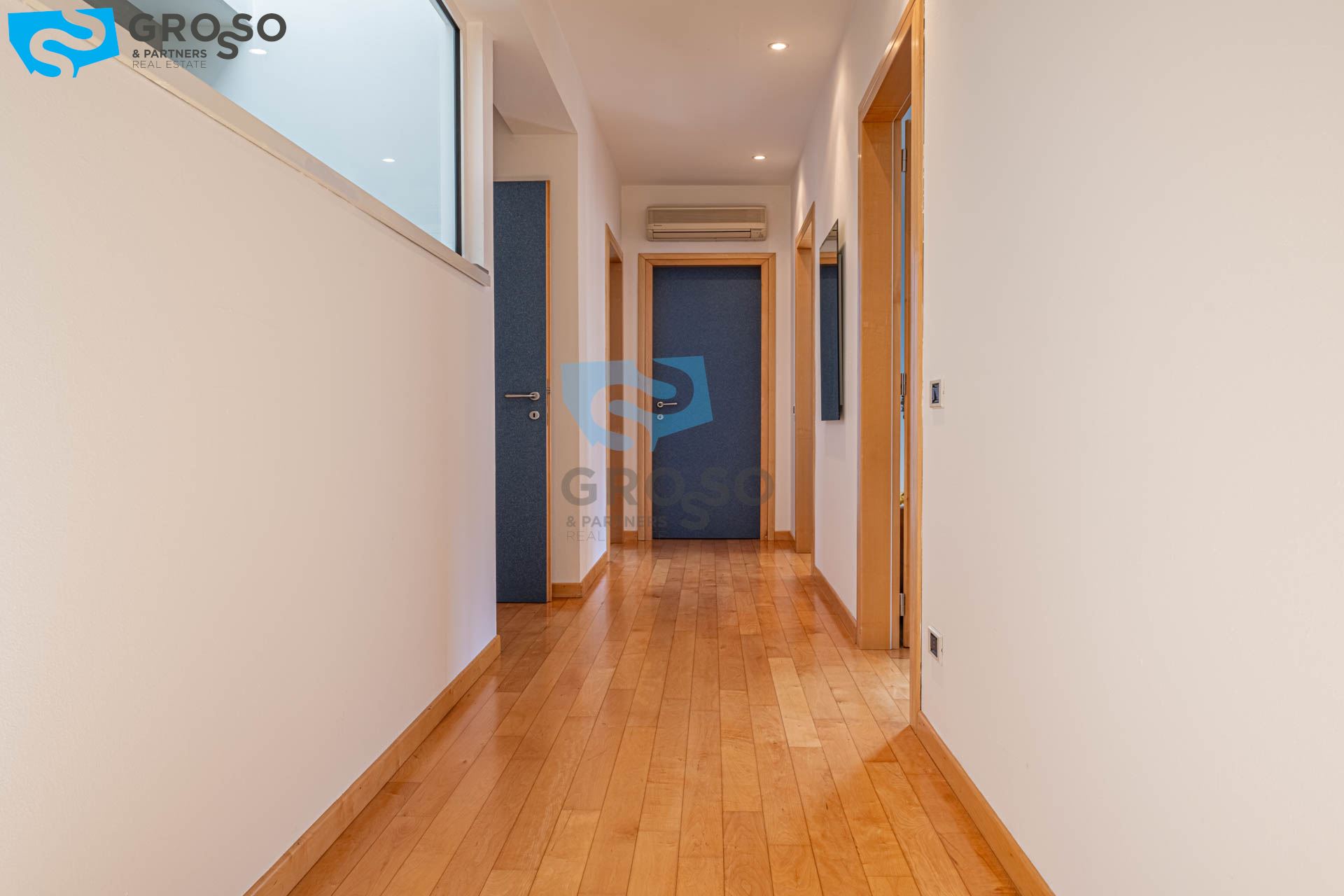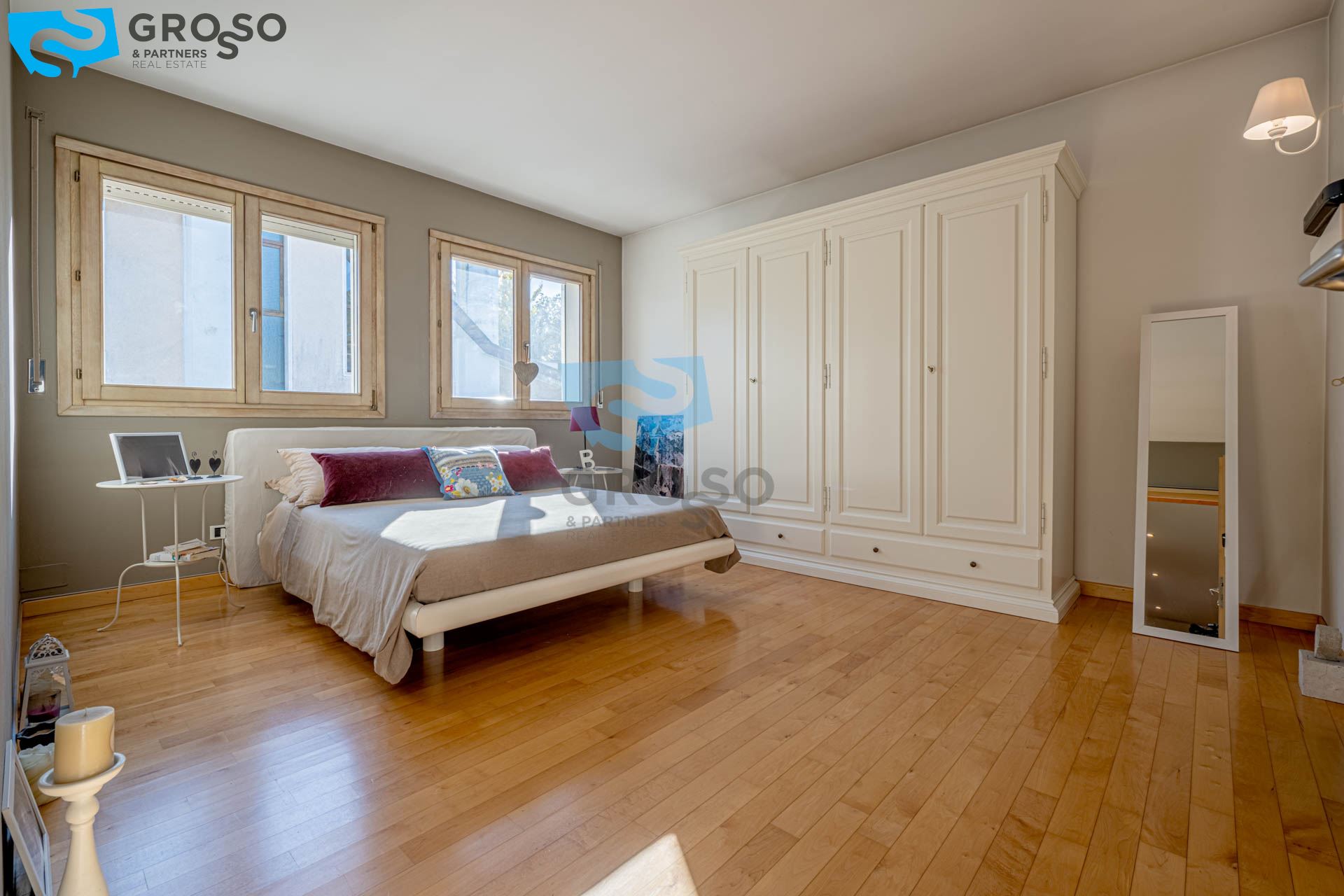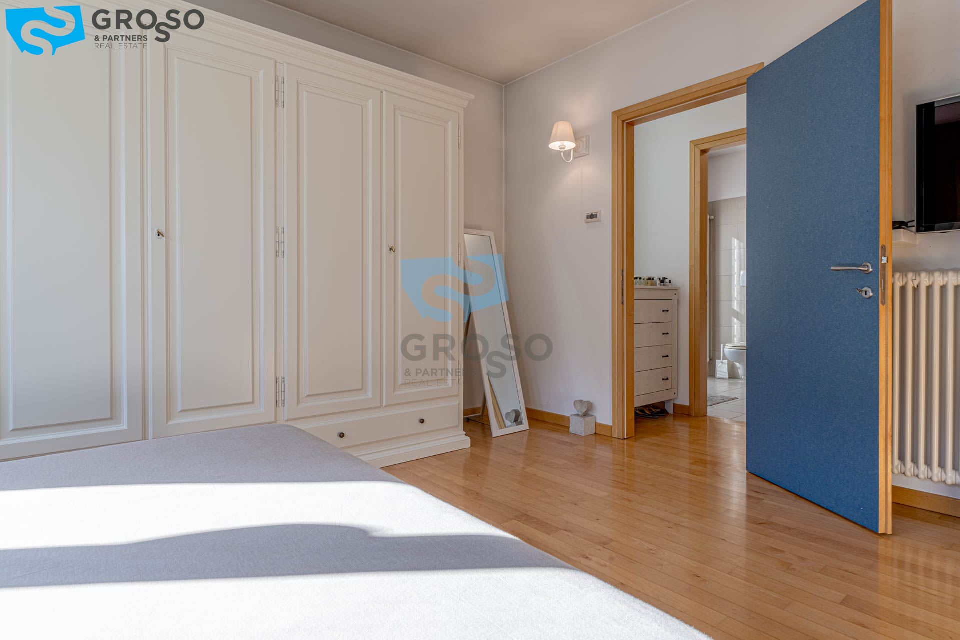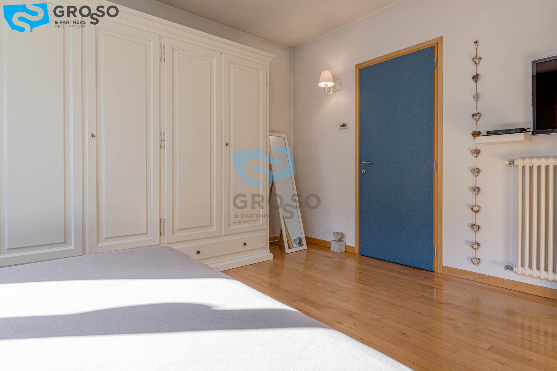 Il piano superiore ospita tre camere da letto, di cui una matrimoniale con bagno padronale, due camere doppie offrono spazio sufficiente per ospiti o membri della famiglia, mentre un ulteriore bagno e un ripostiglio completano questo livello con praticità e stile.