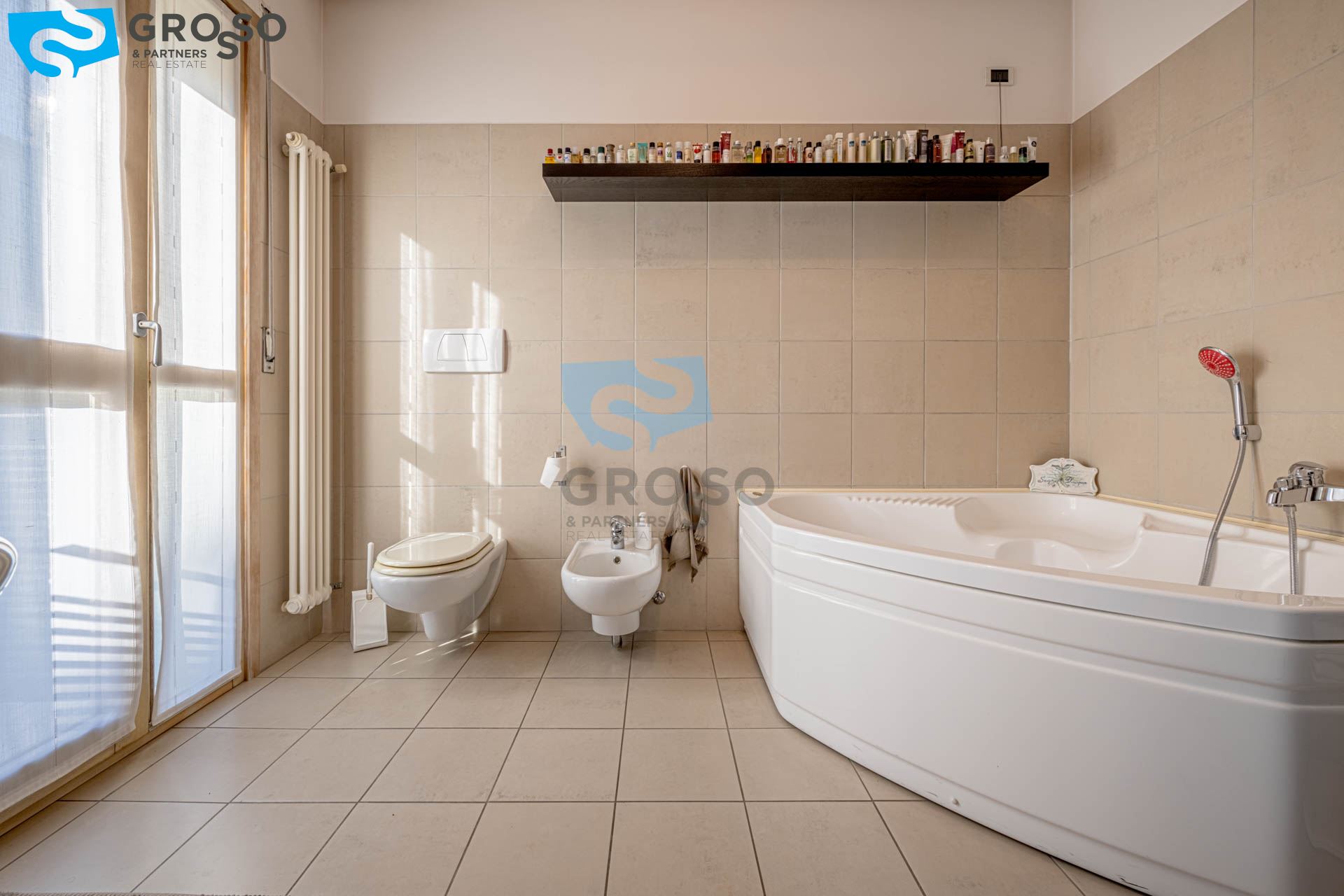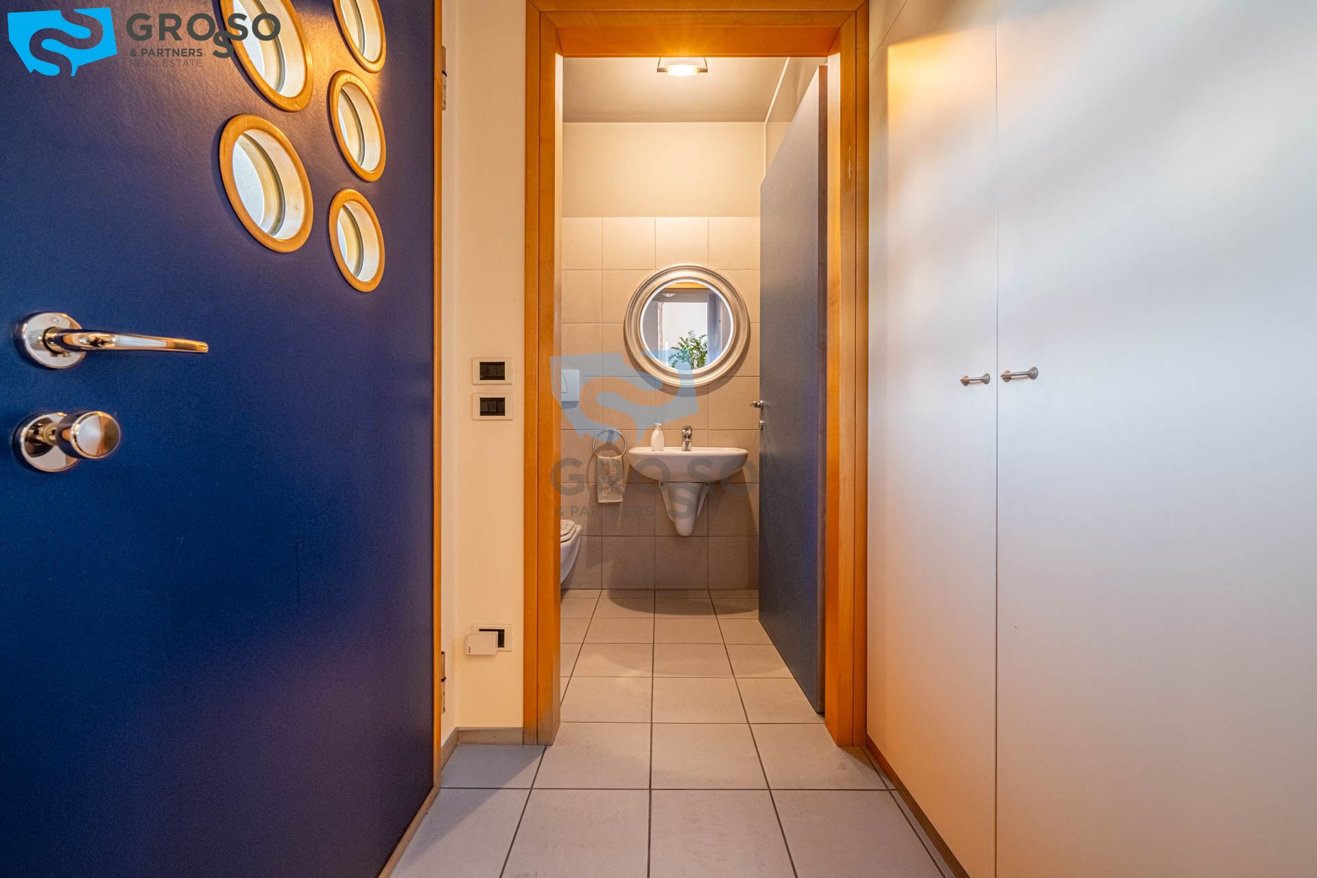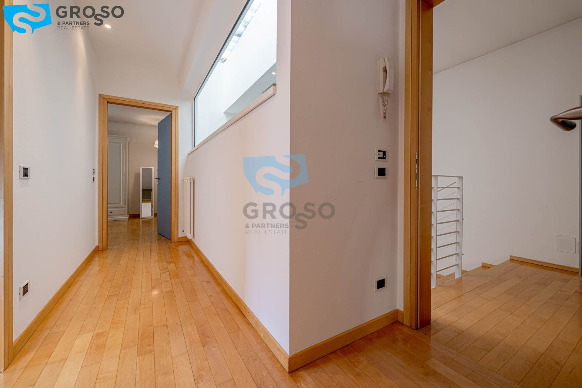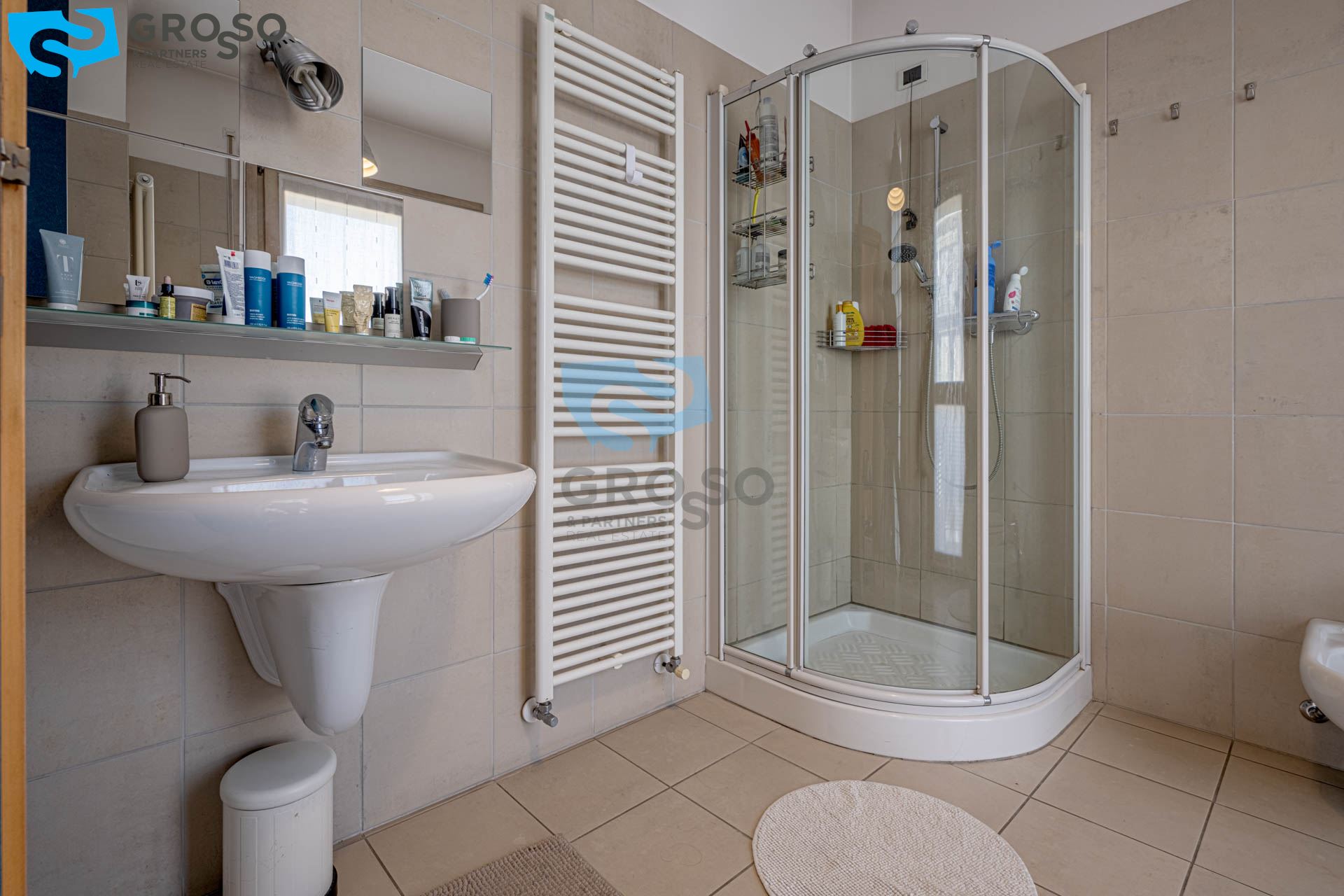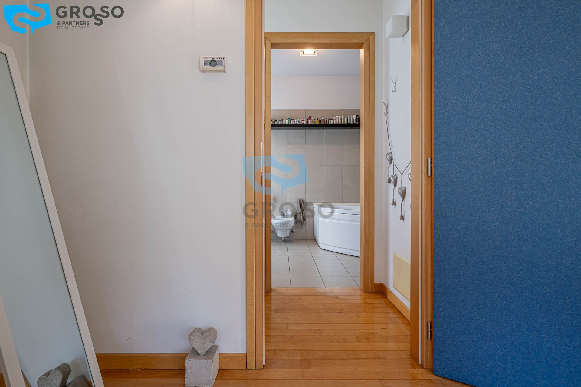 Il piano superiore ospita tre camere da letto, di cui una matrimoniale con bagno padronale, due camere doppie offrono spazio sufficiente per ospiti o membri della famiglia, mentre un ulteriore bagno e un ripostiglio completano questo livello con praticità e stile.