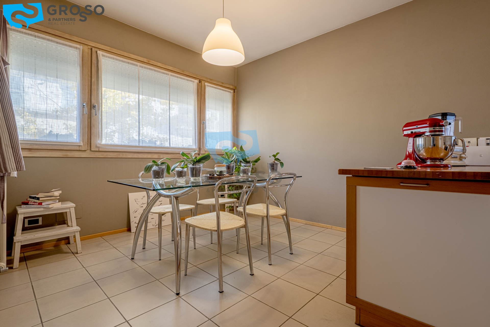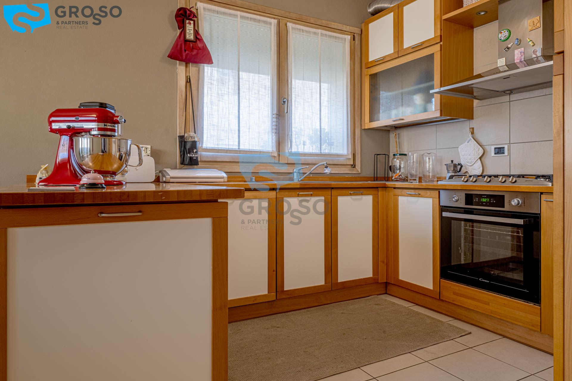 Al piano terra, un accogliente ingresso introduce a uno spazioso soggiorno con zona pranzo, illuminato da ampie finestre che conducono alla terrazza ideale per le cene estive, comunicante con il giardino di proprietà. La cucina separata, completamente attrezzata e abitabile, aggiunge funzionalità allo spazio abitativo. Completano questo livello una centrale termica, un disimpegno e un bagno per gli ospiti, contribuendo a creare un ambiente confortevole e accogliente.