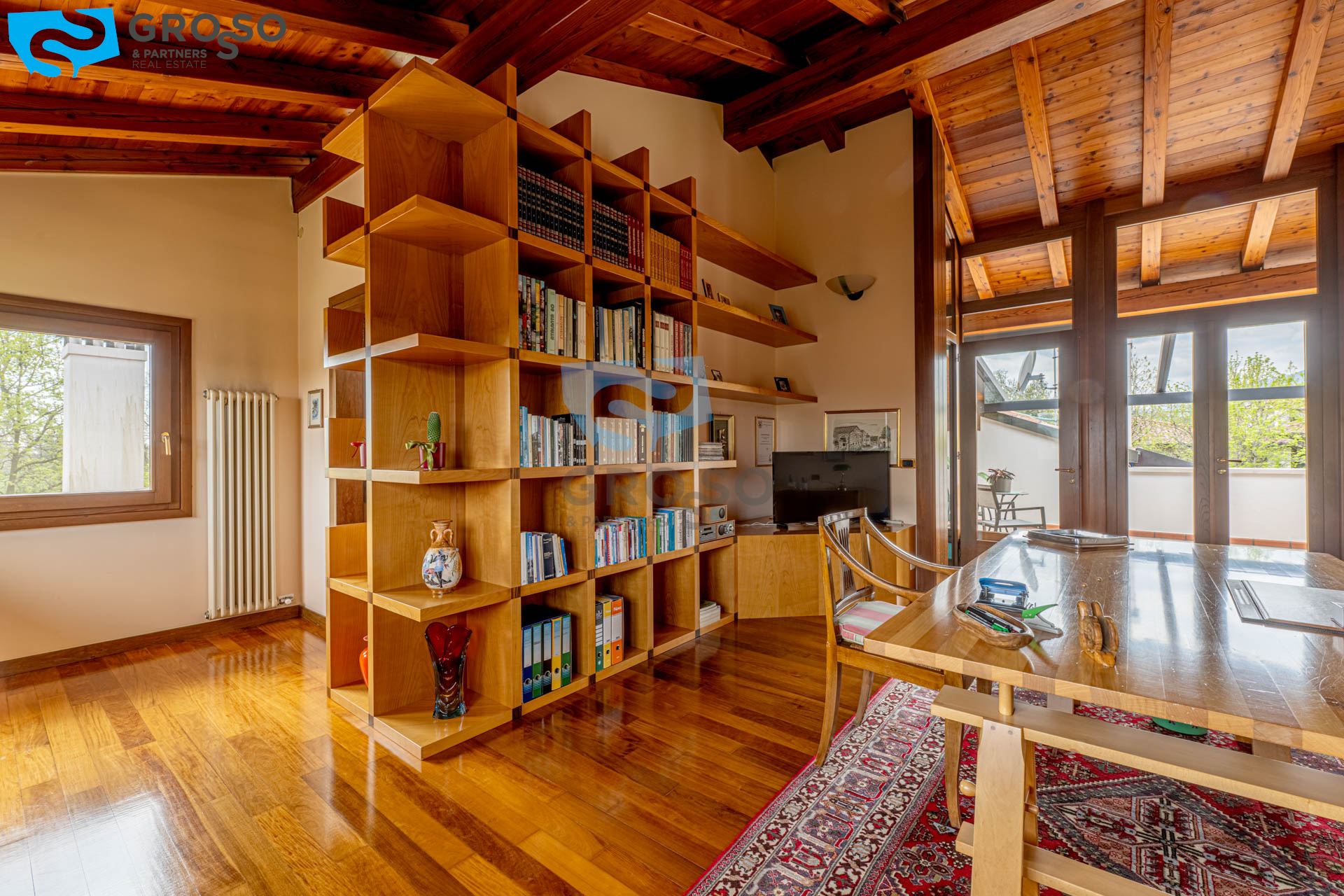 Al piano primo veniamo accolti da un soppalco con vista panoramica, uno studio con bagno e una favolosa terrazza ideale per momenti di relax.