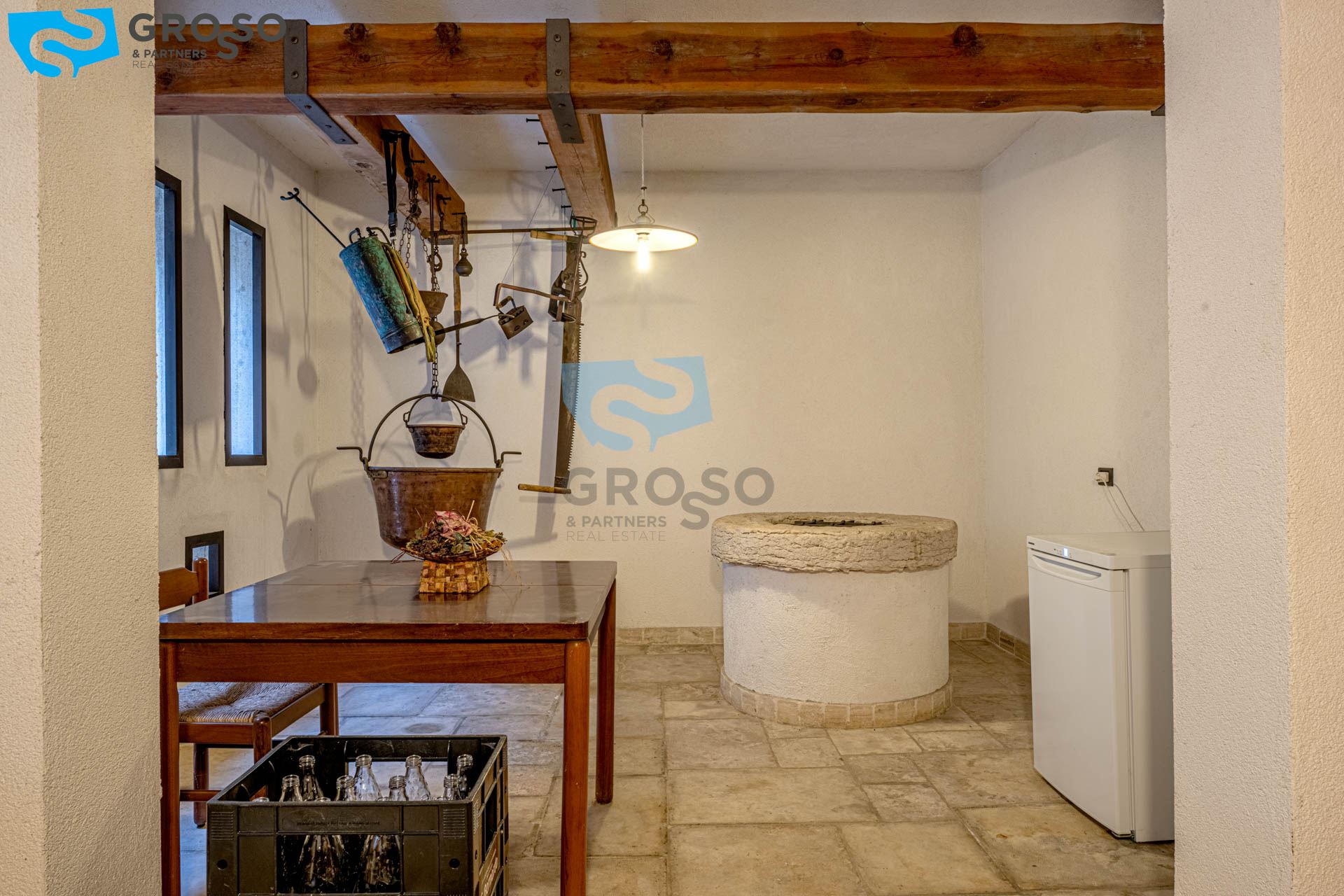 Al piano interrato una taverna molto grande con cucina dove potrai organizzare feste con amici e parenti, una preziosa lavanderia, un'altra stanza pluriuso e un'affascinante cantina con pozzo artesiano profondo oltre venti metri.