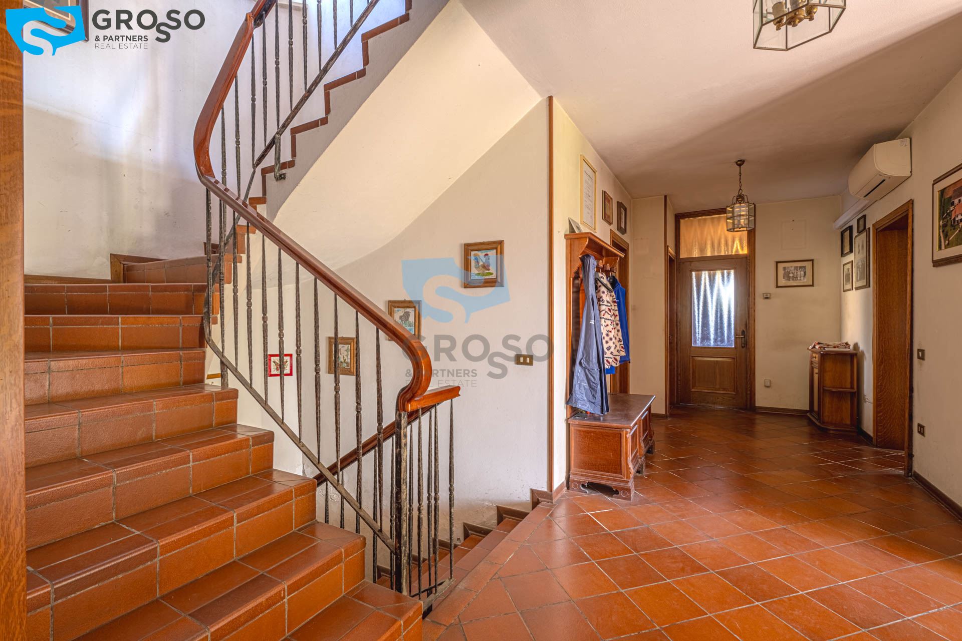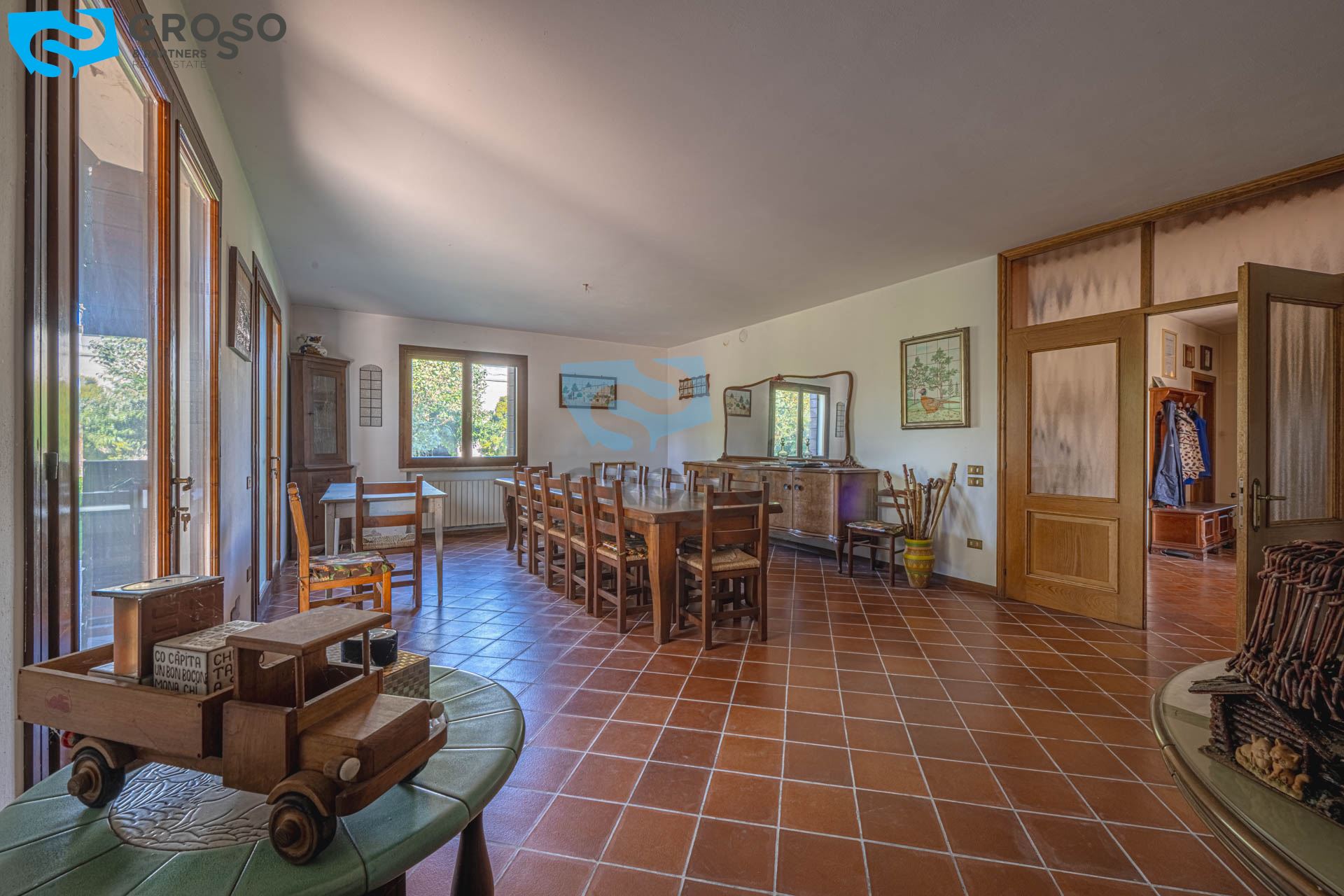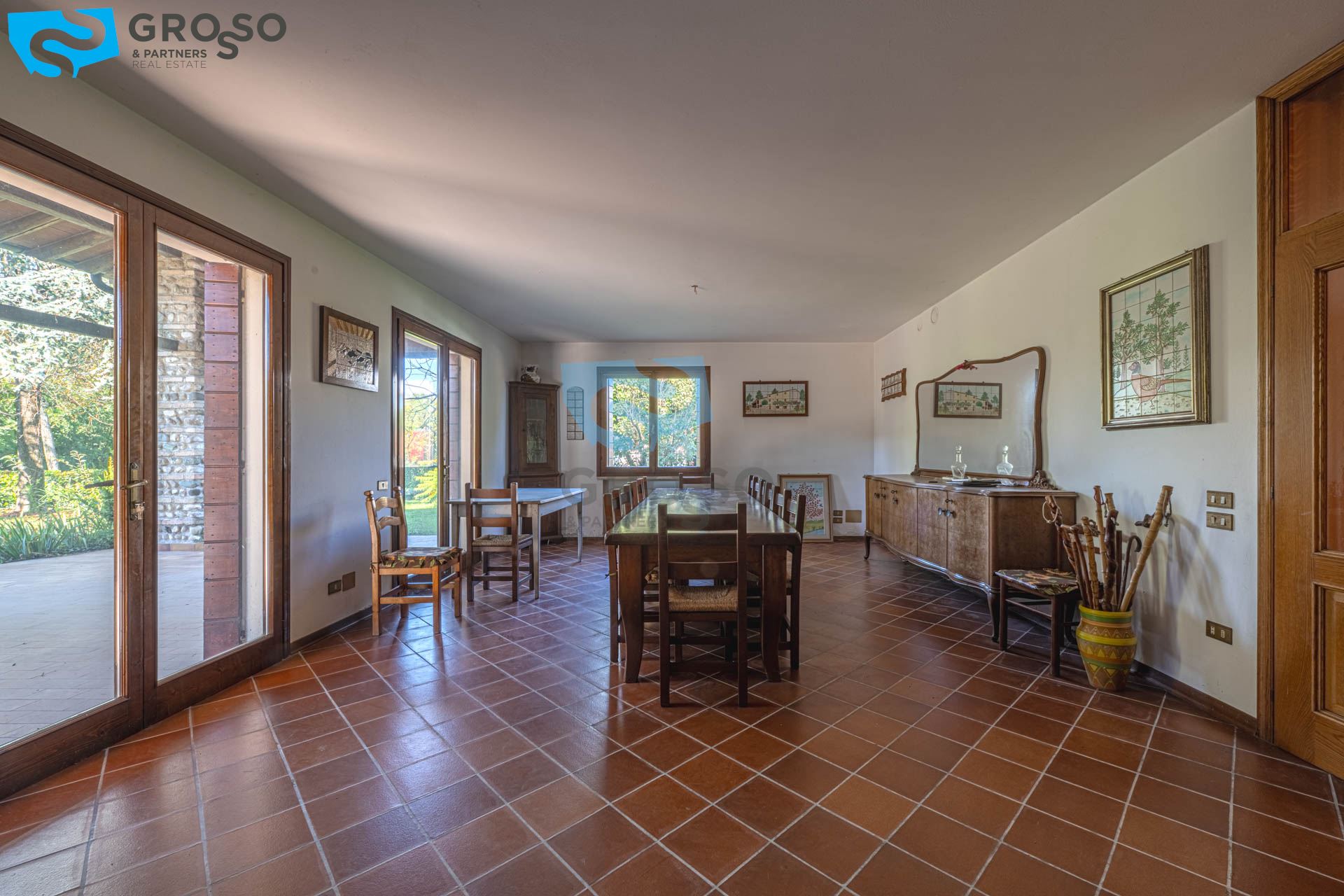 A Carbonera, ad un passo dai principali servizi, Grosso&Partners ha il piacere di proporvi questa villa singola in stile rustico, immersa in un bellissimo parco di 2700 mq e con spazi interni introvabili. L'immobile si sviluppa praticamente su due soli piani. Al piano terra, vi accoglie l'ampio ingresso che porta al soggiorno di 47 mq ideale per cene e feste e arricchito dall'uscita sullo scenografico porticato, ideale per godere della convivialità e del relax dalla primavera all'autunno. Il bellissimo portico si presta ad essere trasformato anche in un suggestivo giardino d'inverno. Una generosa cucina con zona pranzo offre il perfetto spazio per creare momenti culinari memorabili ed è collegata ad una stanza di servizio di 14 mq. Completano il piano un bagno, la cantina e lo spogliatoio, oltre al garage di 26 mq. La comoda scala conduce al piano superiore, dove si trovano sei camere matrimoniali, un guardaroba, due bagni ed uno spazio utilizzato a soffitta. Al piano interrato troviamo uno spazio per il magazzino.