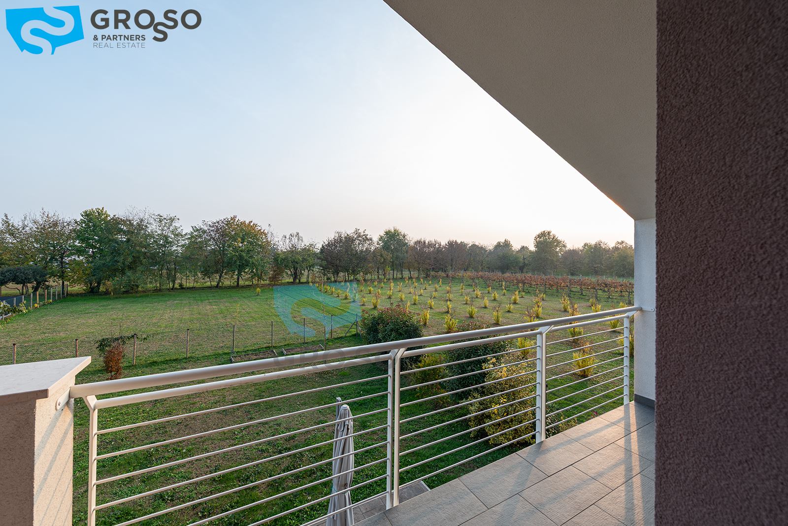 A Ponzano Veneto, in una tranquilla zona residenziale immersa nel verde, proponiamo in vendita una casa indipendente edificata nel 2016, caratterizzata da spazi moderni, ottime finiture e un ampio scoperto privato di 813 mq. L'abitazione si sviluppa su due livelli fuori terra e offre ambienti luminosi e ben distribuiti, ideali per chi desidera comfort, privacy e qualità costruttiva. Al piano terra l'ingresso conduce a un accogliente soggiorno con zona pranzo, collegato alla cucina abitabile separata dalla quale si accede al portico esterno, perfetto per pranzi e cene all'aperto durante la bella stagione. Sullo stesso livello si trovano un bagno per gli ospiti con doccia, la centrale termica e il garage comunicante, oltre a due posti auto esterni che completano la praticità degli spazi. La zona notte, situata al piano primo, comprende una camera matrimoniale e tre camere singole, tutte servite da una loggia che si sviluppa lungo l'intero perimetro, regalando continuità tra ambienti interni ed esterni e piacevoli affacci sul giardino. Il piano è completato da un bagno con doccia e da un comodo magazzino utilizzabile anche come stanza armadio. L'immobile è dotato di riscaldamento autonomo a pavimento, aria condizionata e impianto fotovoltaico da 2,9 kW, garanzie di efficienza energetica e contenimento dei consumi. Una soluzione recente, indipendente e subito abitabile, ideale per chi cerca una casa moderna circondata da un ampio spazio esterno in un contesto residenziale riservato e ben servito.