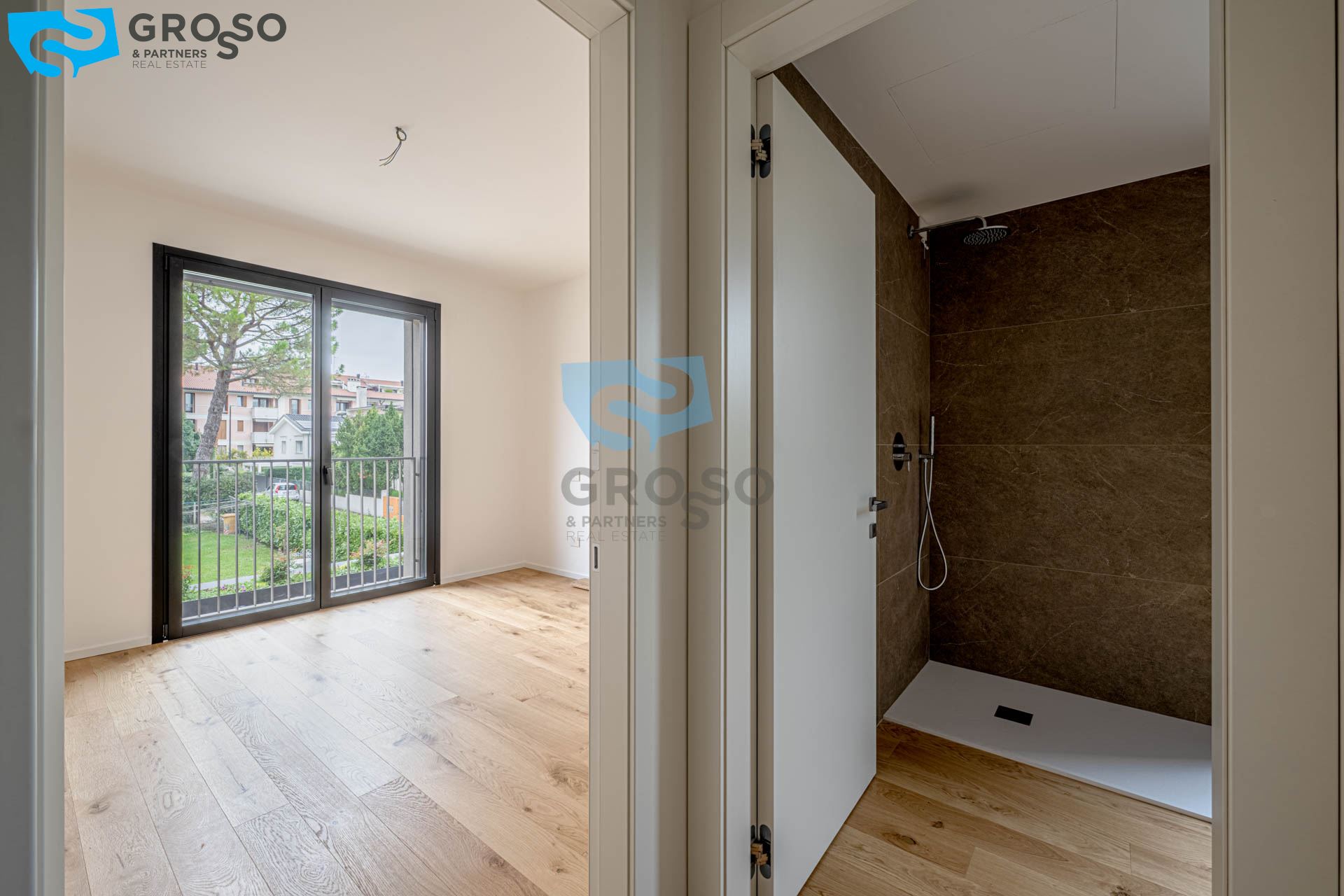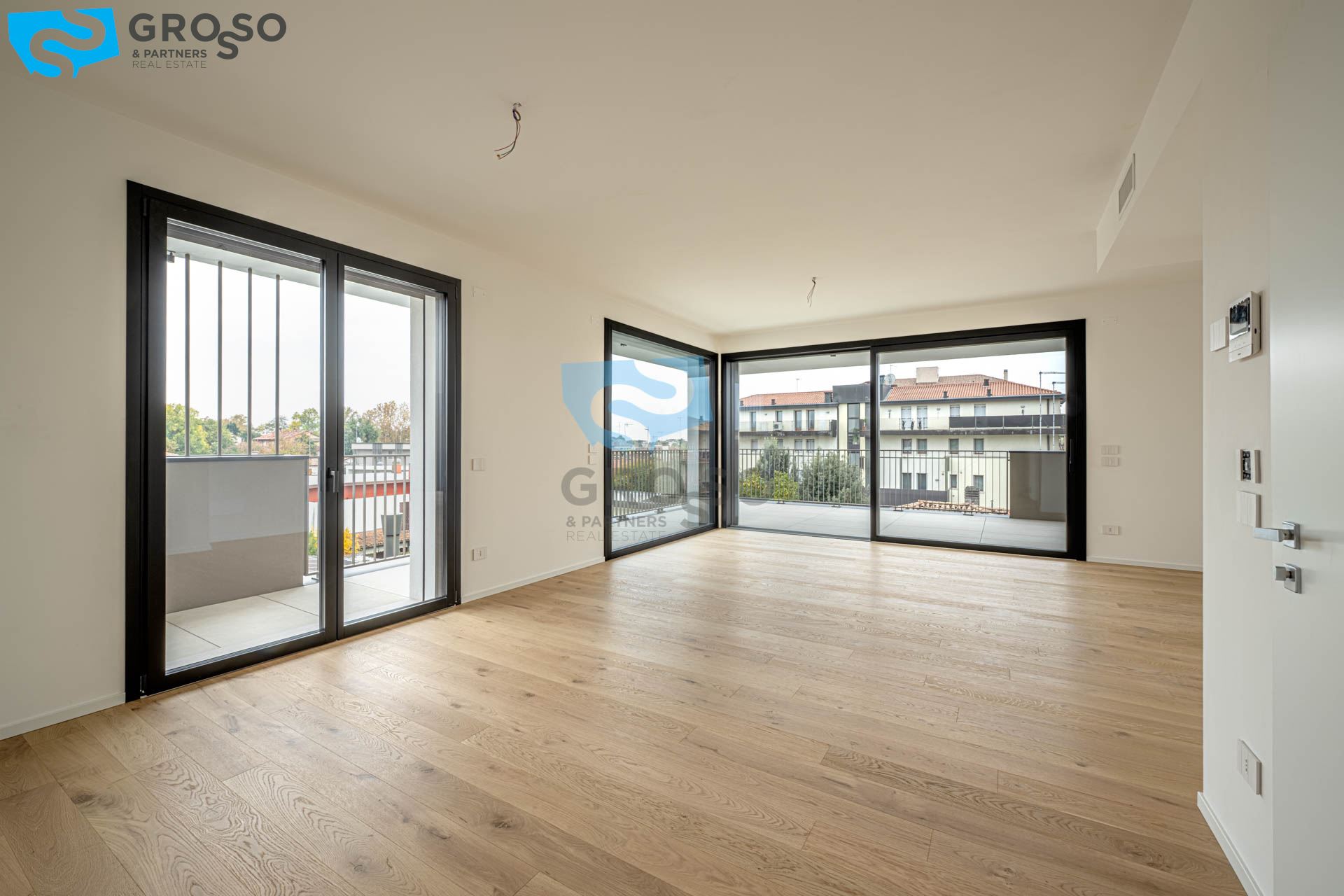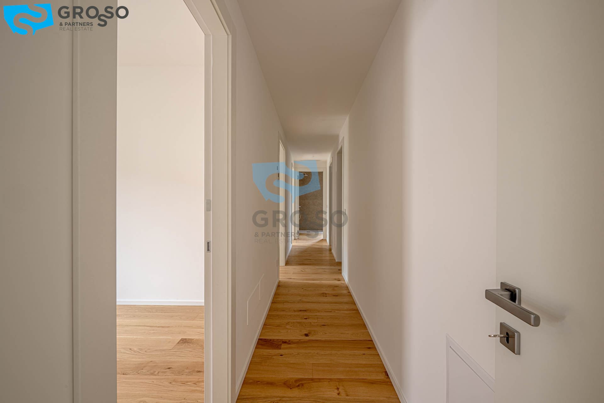L'immobile sito al piano primo è composto da: ampia zona giorno che si caratterizza per la presenza di grandi vetrate esposte a sud, che garantiscono un'ottima luminosità e affaccio su loggia e terrazza generosa di mq. 20, accedendo alla zona notte trovano spazio 3 camere, 2 bagni, lavanderia e spazioso armadio a muro contenitivo nel corridoio notte.