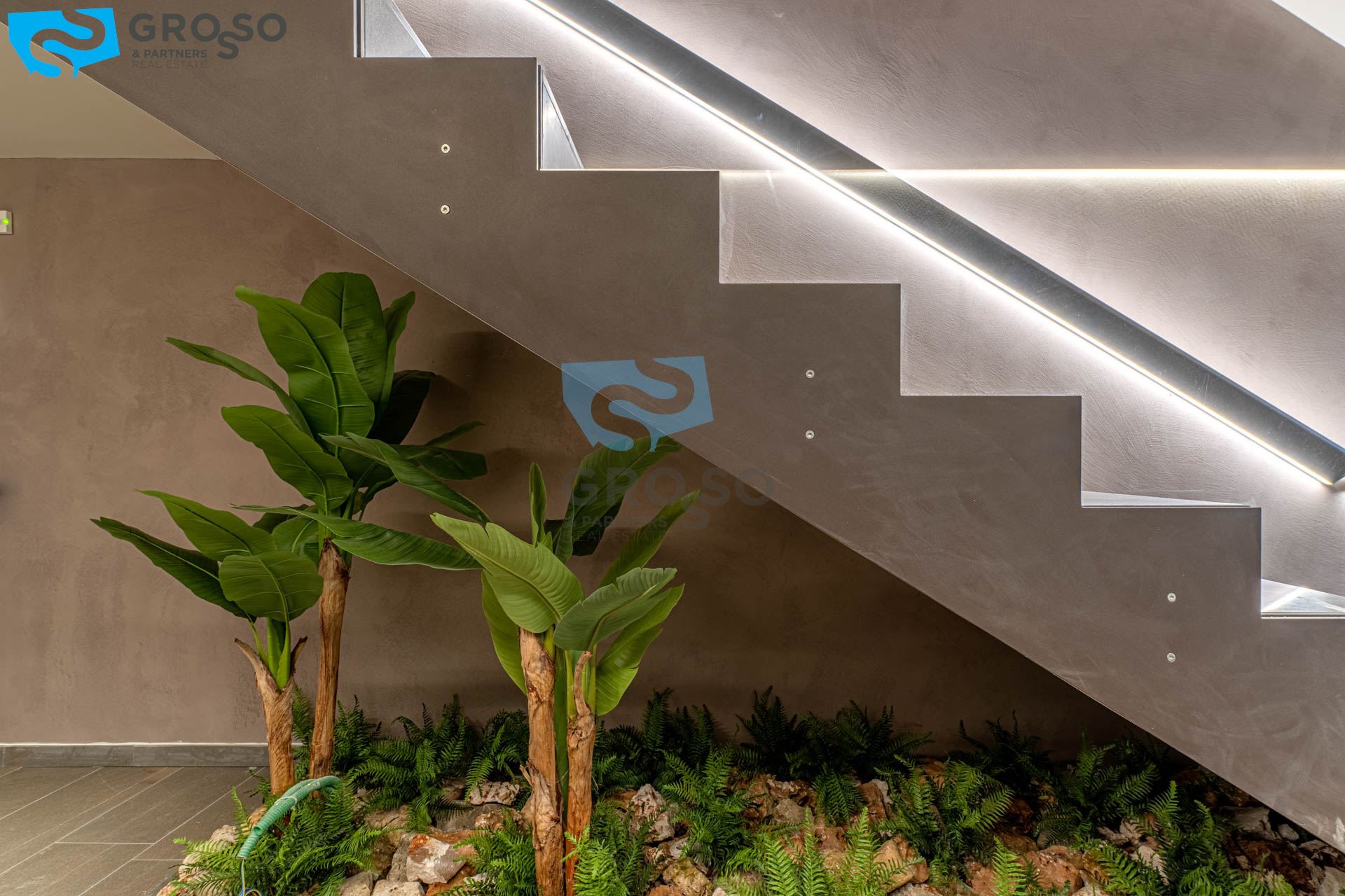 L'appartamento è dotato di riscaldamento a pavimento, impianto aria condizionata canalizzato, VMC (ventilazione meccanica controllata), impianto domotico.