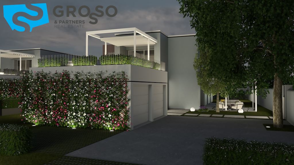Completano la proprietà un garage di 25 mq, un posto auto esterno e un giardino privato di 299 mq.