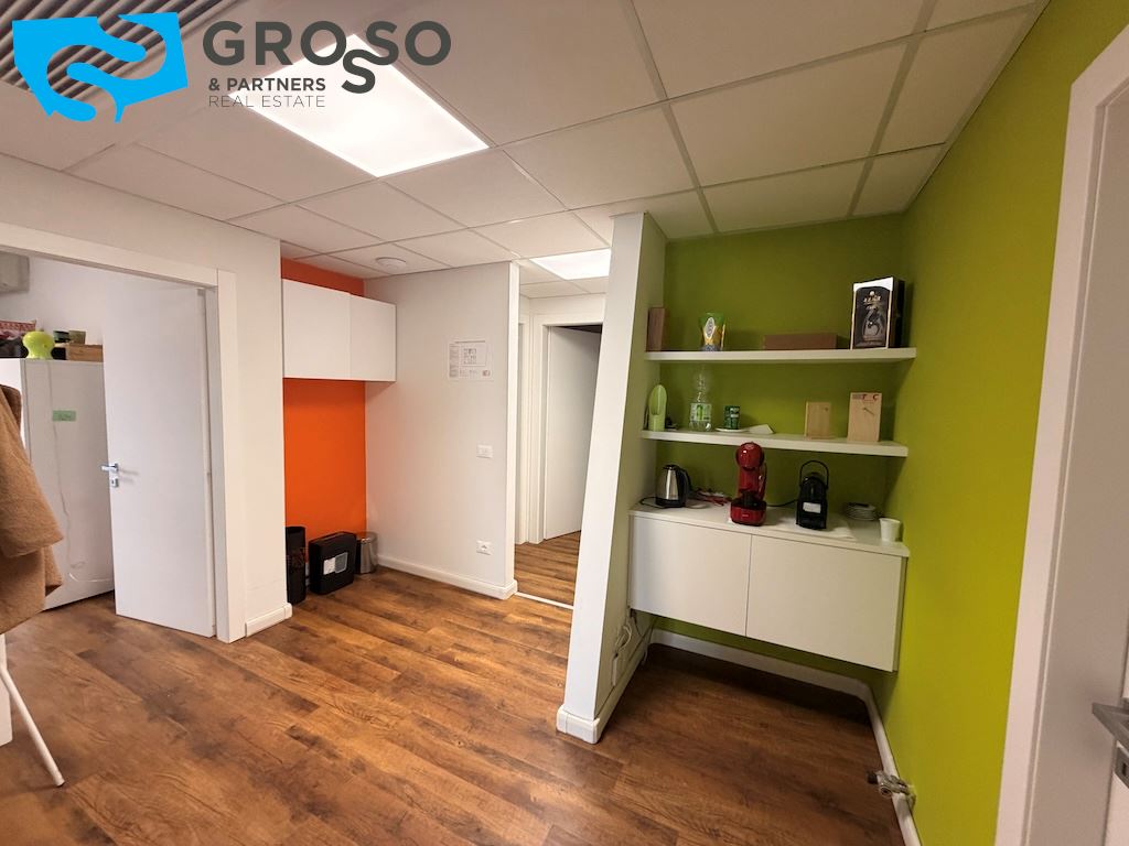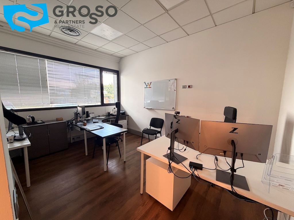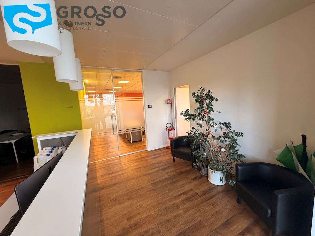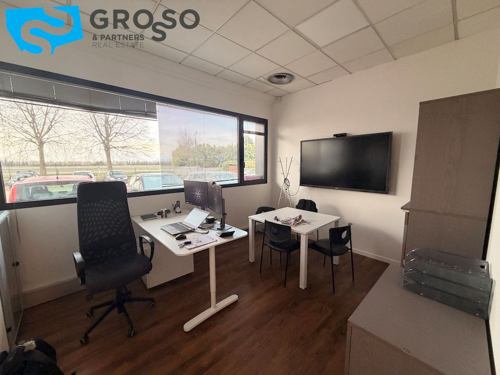 Al piano primo si trovano quattro uffici, antibagno e bagno con ampia terrazza solarium che può accogliere eventi. Completano la proprietà 38 posti auto esterni a servizio dell'immobile in un'area di 2000 mq. Viene garantita una rendita annua del 9% con contratto di locazione in essere con scadenza a fine 2031, rappresentando una soluzione ideale per investitori alla ricerca di un immobile a reddito in zona ben collegata e ad alta visibilità.