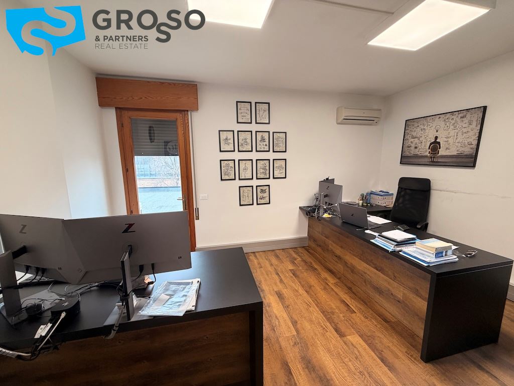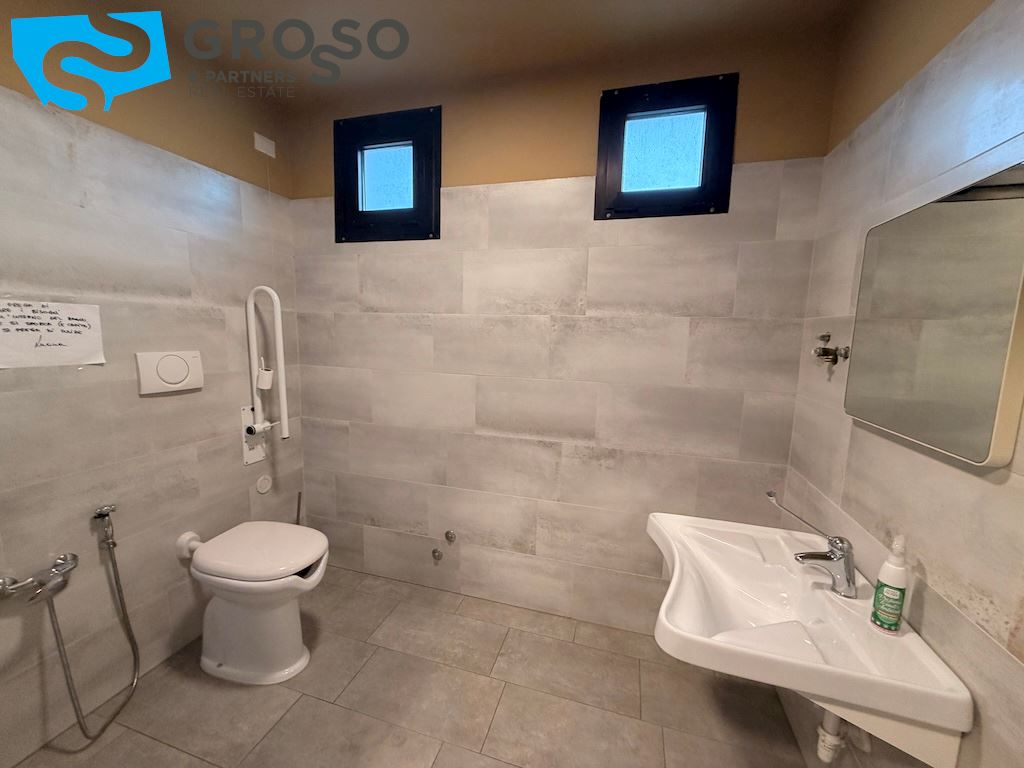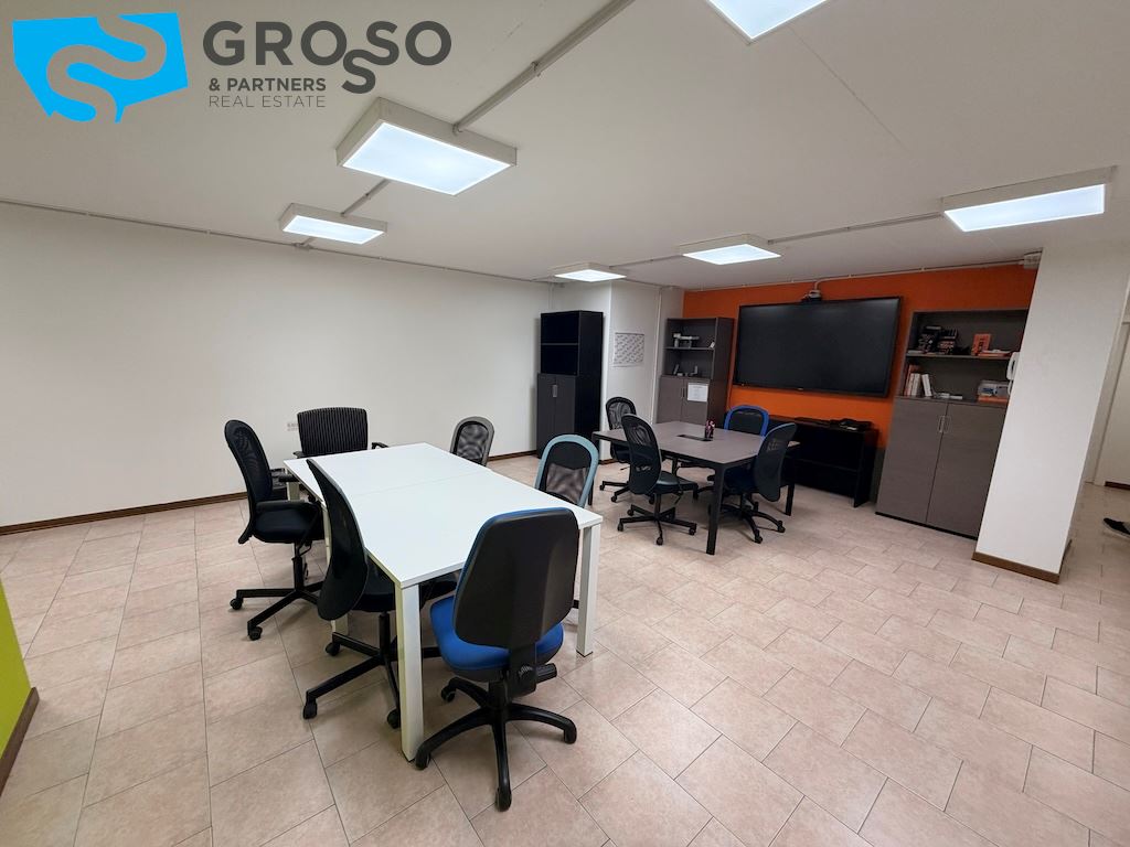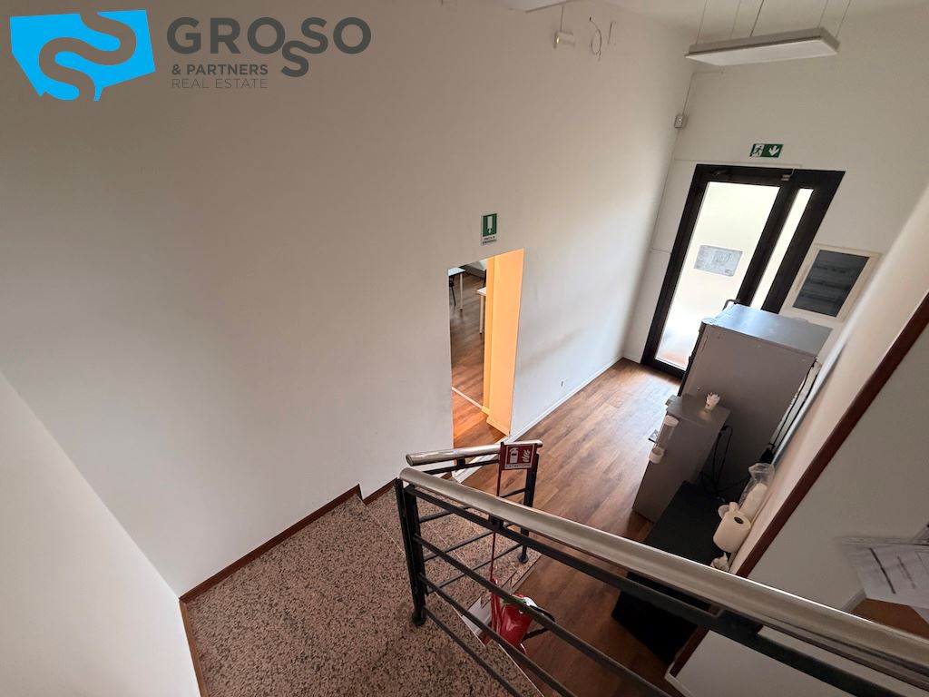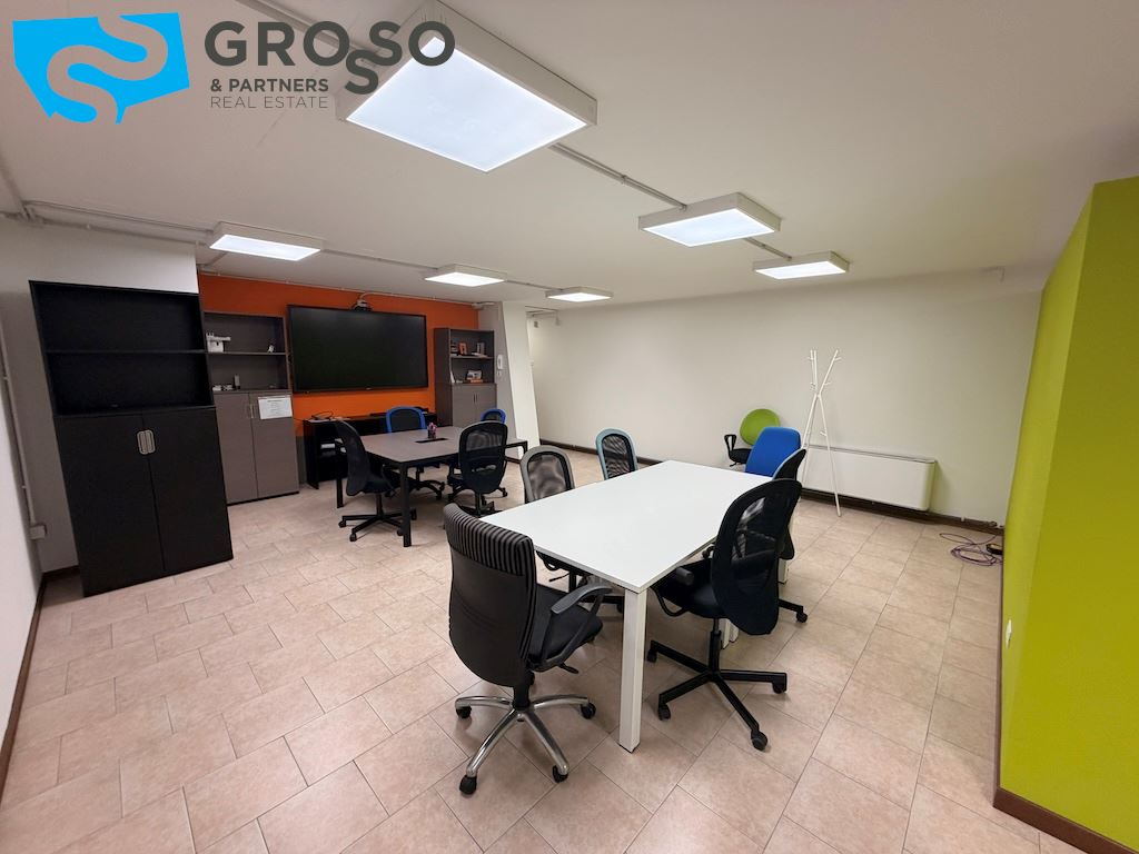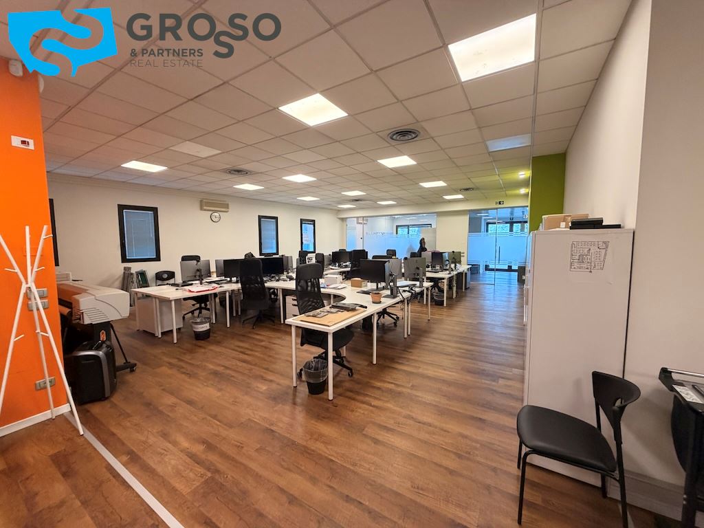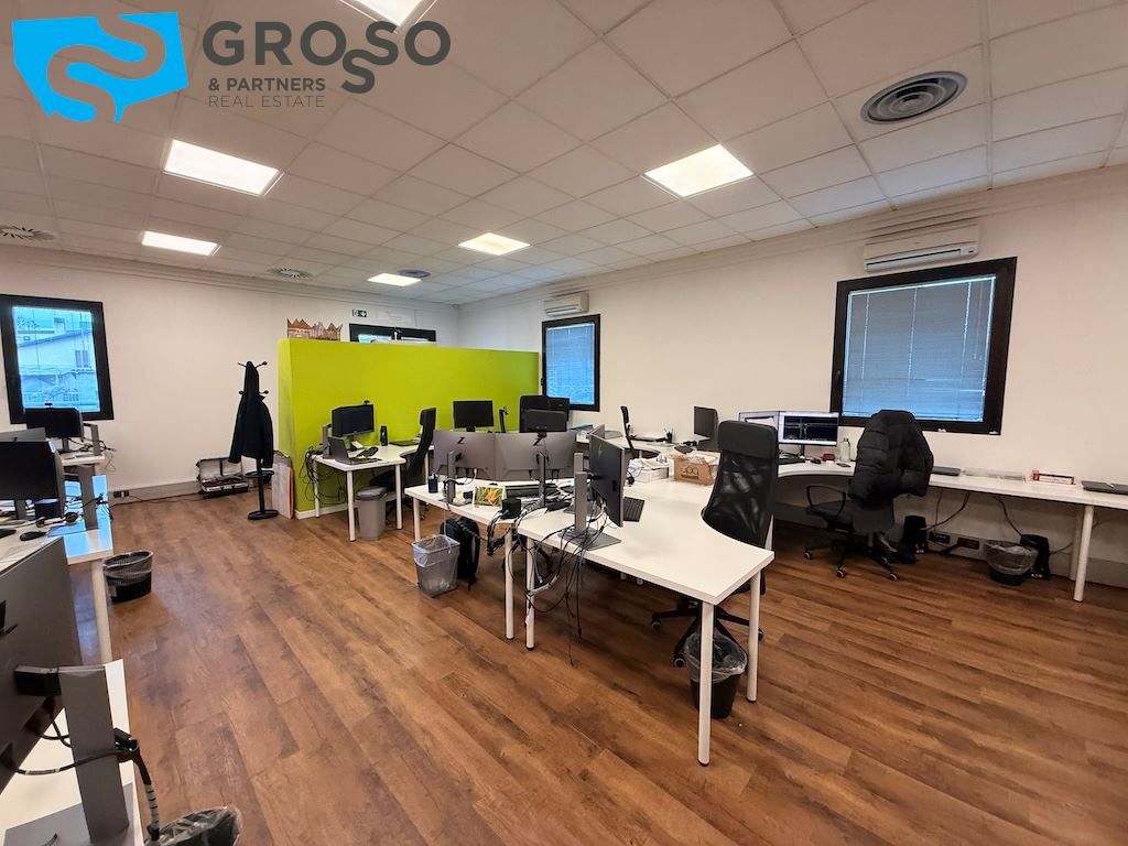 L'immobile si sviluppa su più livelli e il piano terra è composto da un'ampia sala open-space di circa 200 mq, due ampi uffici di circa 60 mq, una sala riunioni di 20 mq, bagno uomini, bagno donne e ulteriore bagno accessibile per persone con disabilità, area caffè, disimpegno, spogliatoi.