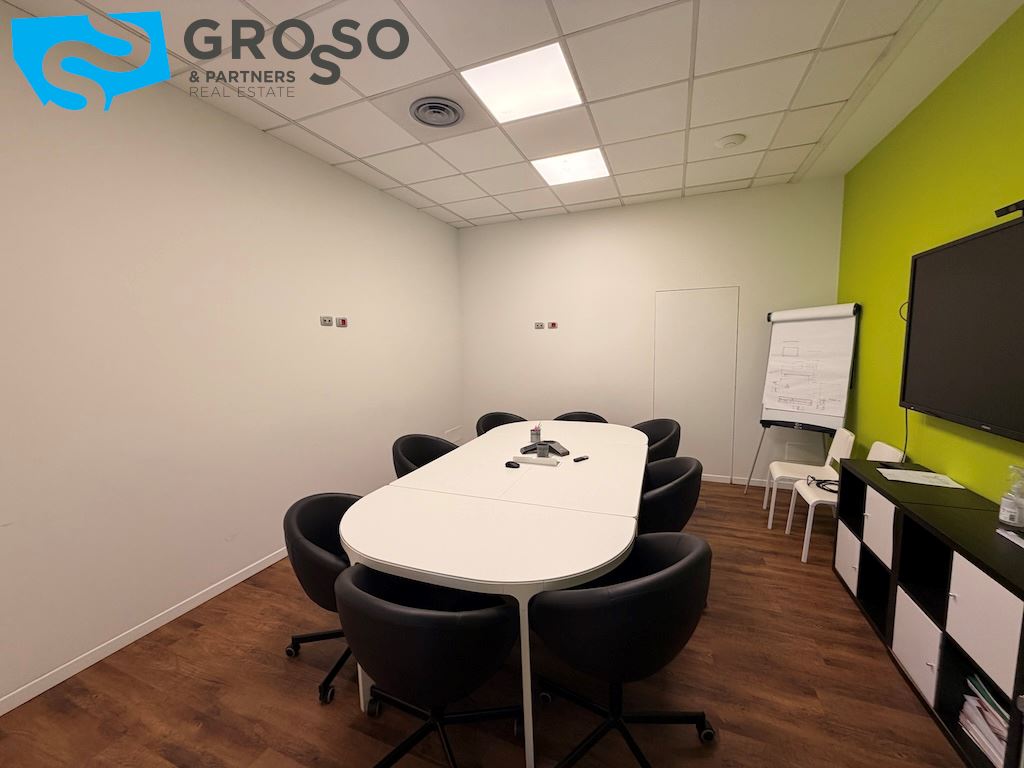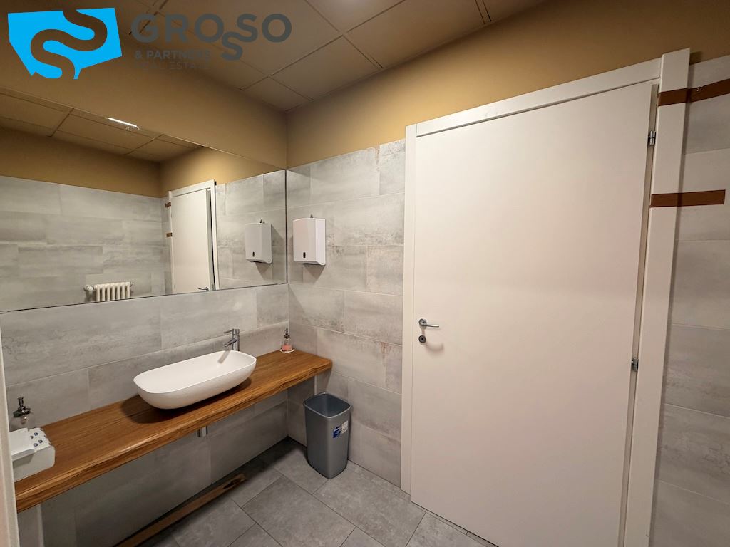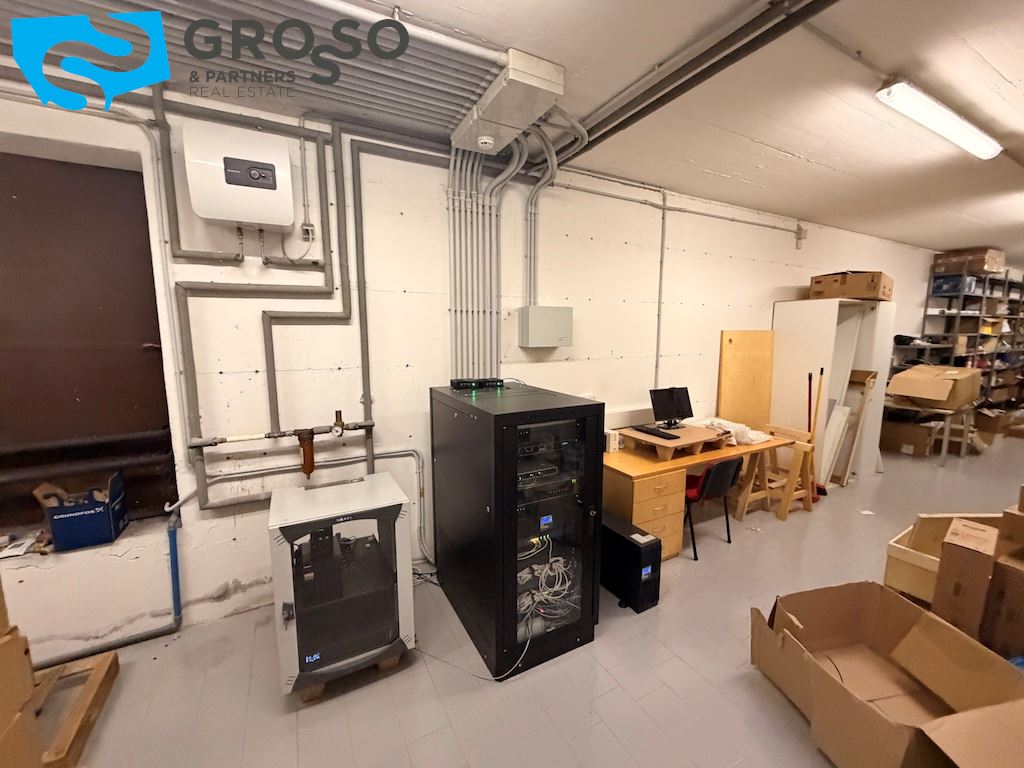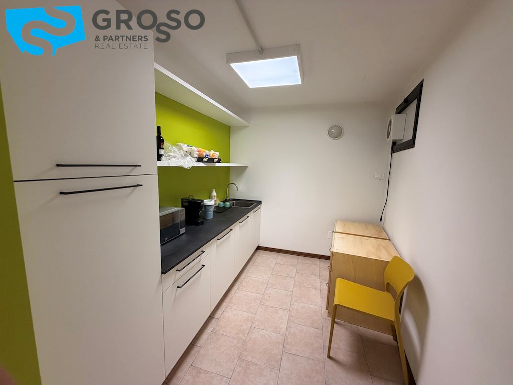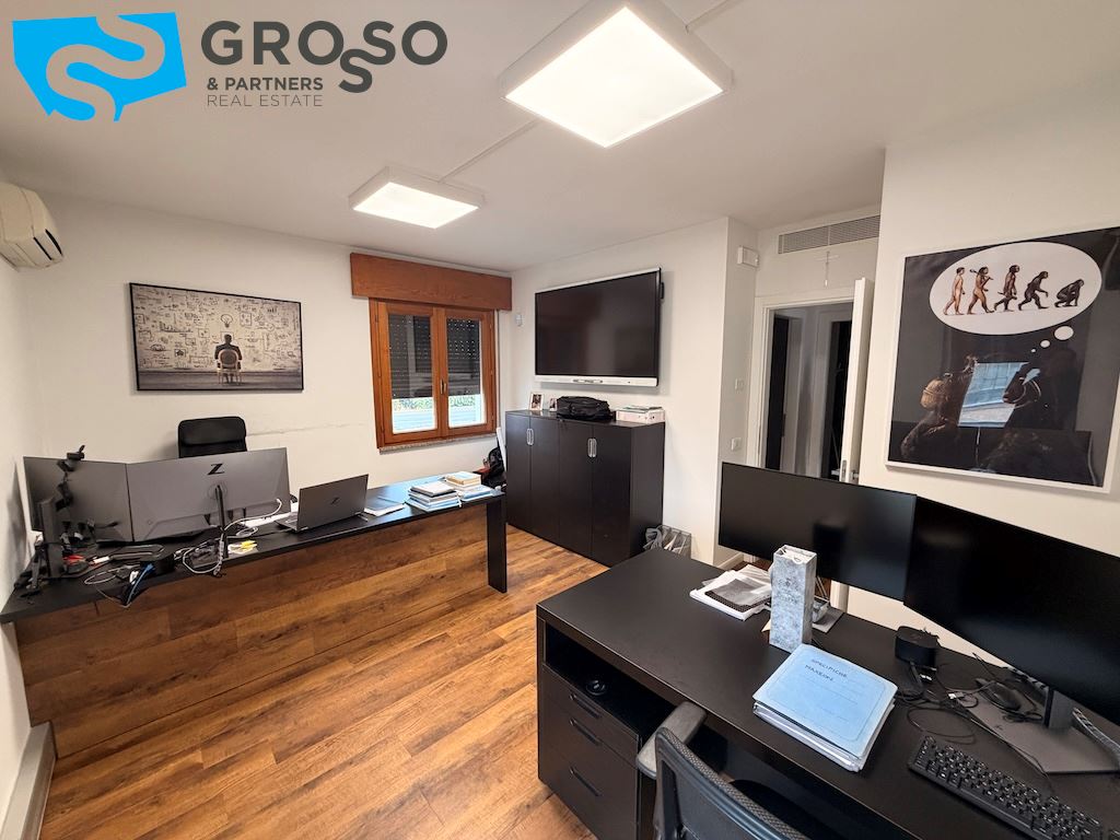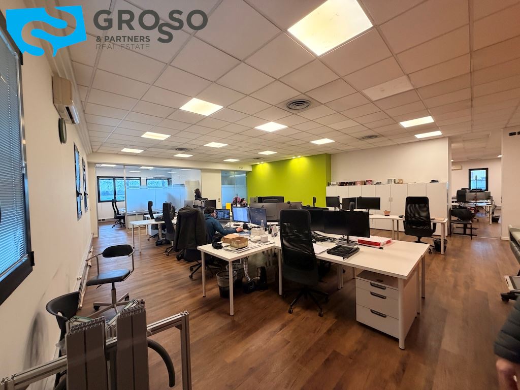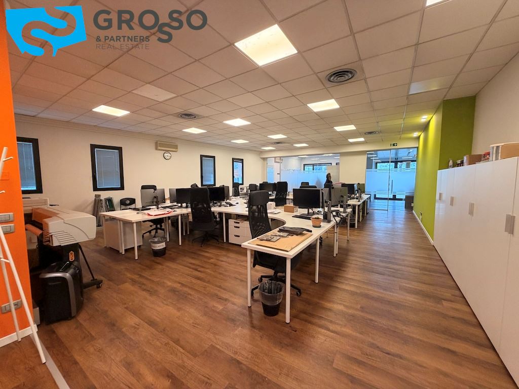 L'immobile si sviluppa su più livelli e il piano terra è composto da un'ampia sala open-space di circa 200 mq, due ampi uffici di circa 60 mq, una sala riunioni di 20 mq, bagno uomini, bagno donne e ulteriore bagno accessibile per persone con disabilità, area caffè, disimpegno, spogliatoi.